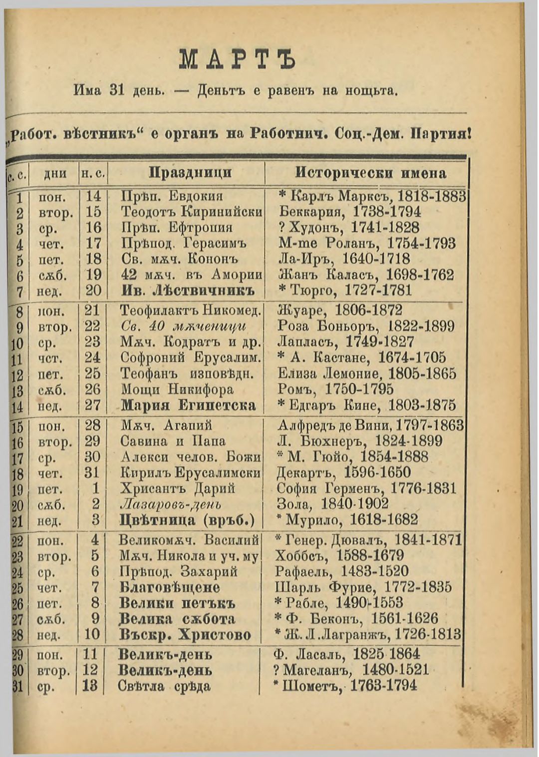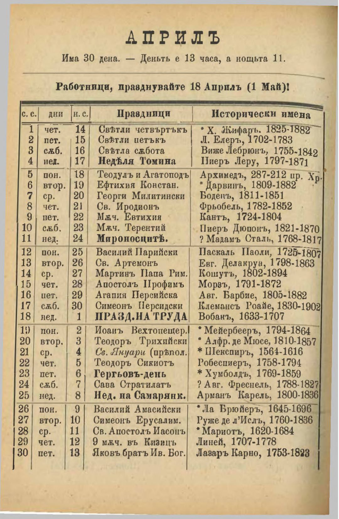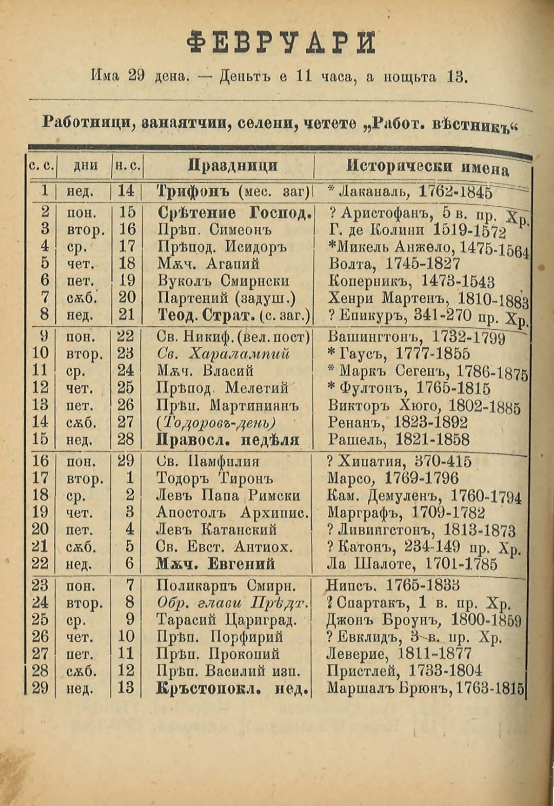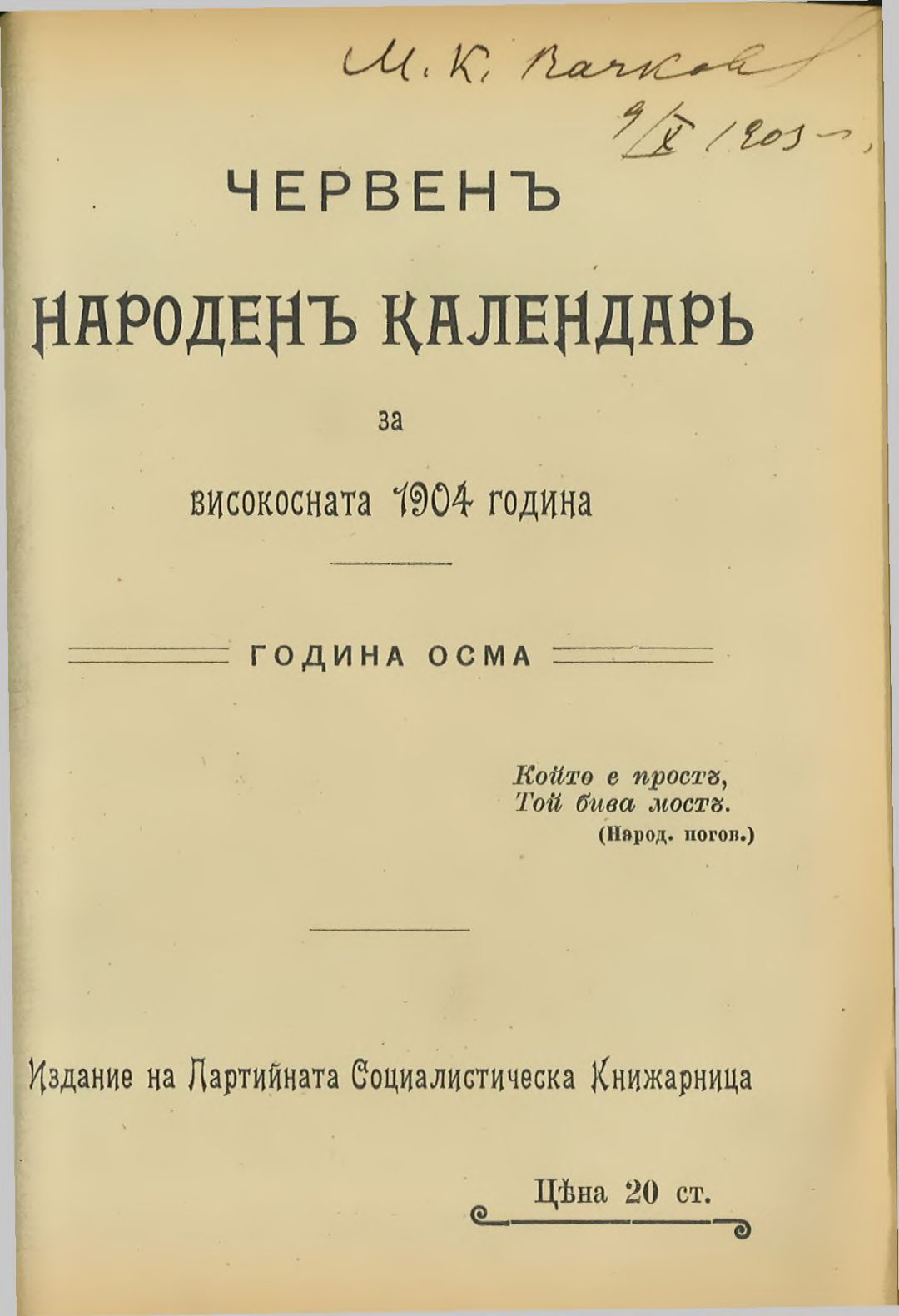 Червен народен календар за високосната 1904 година