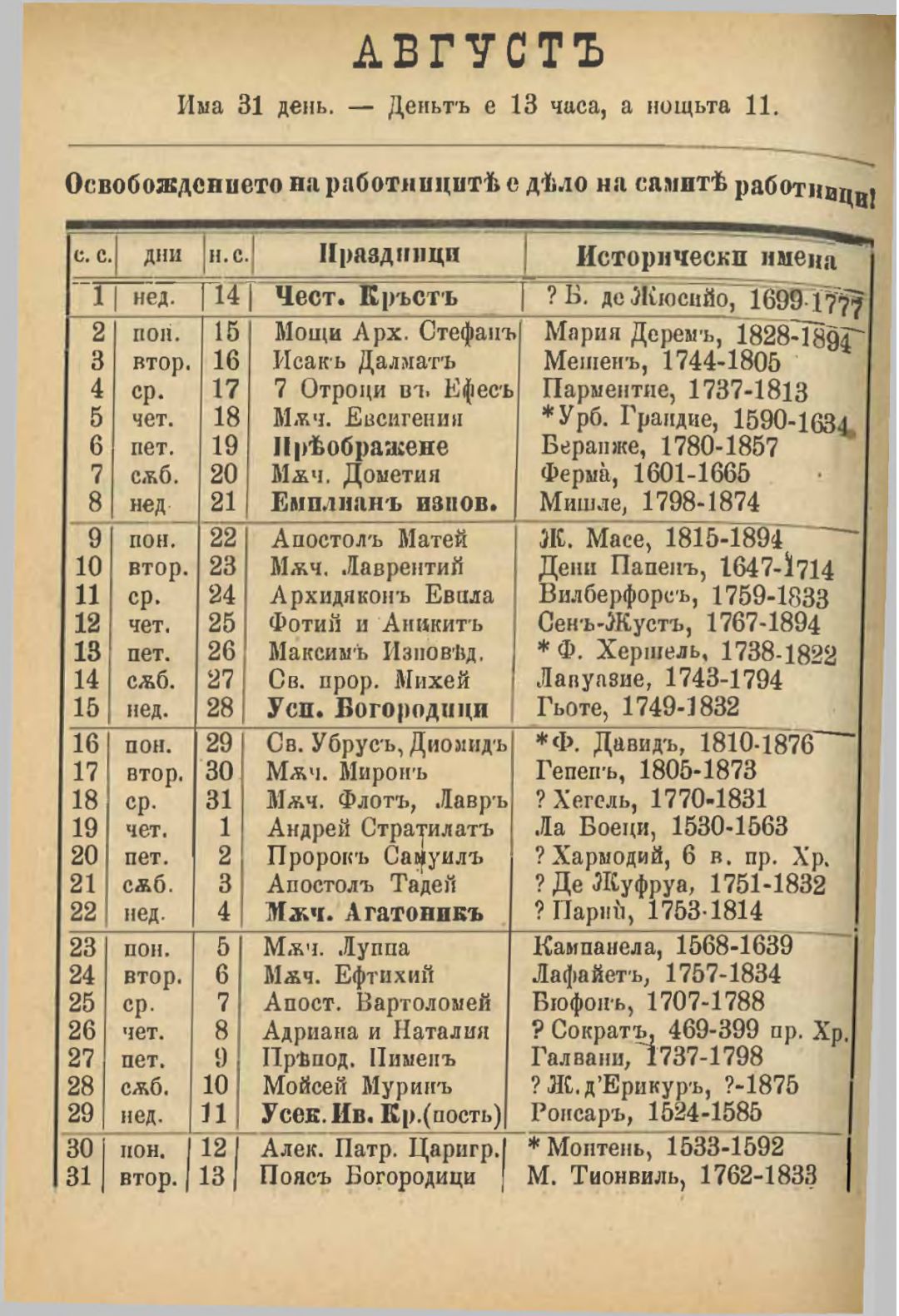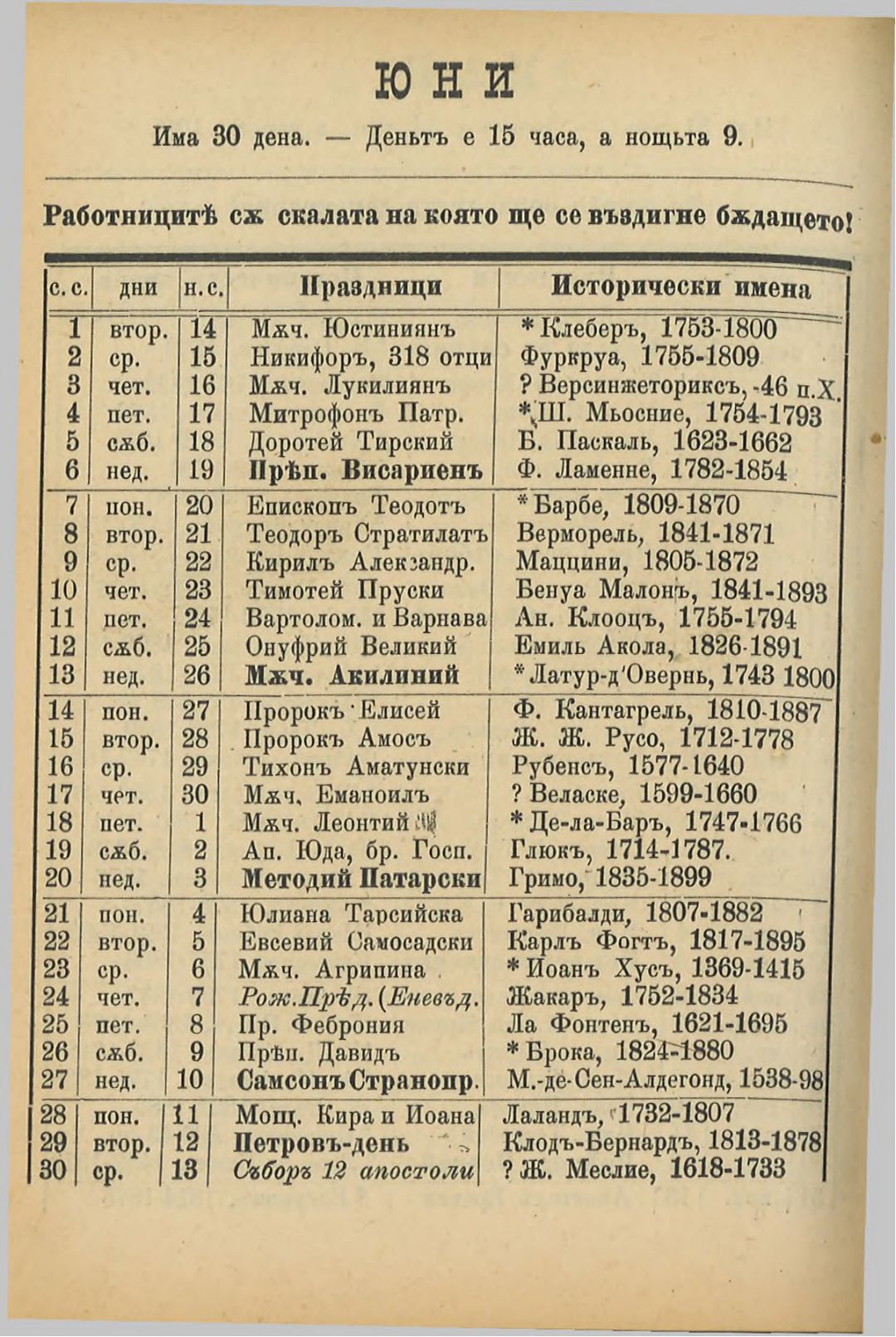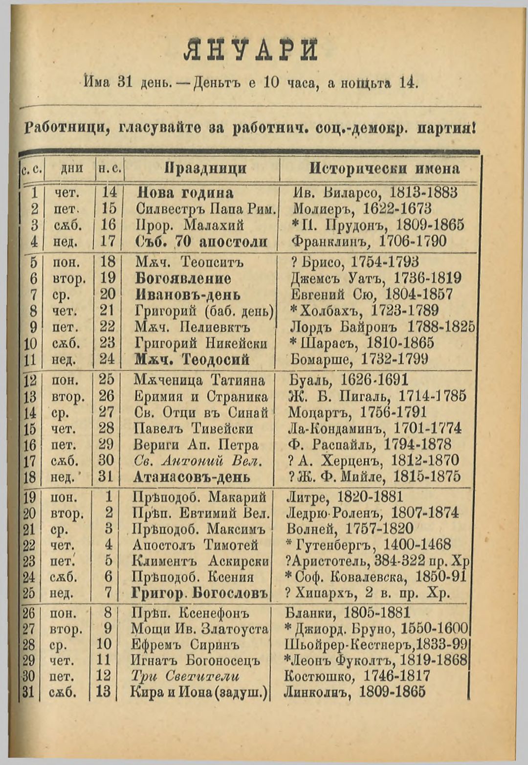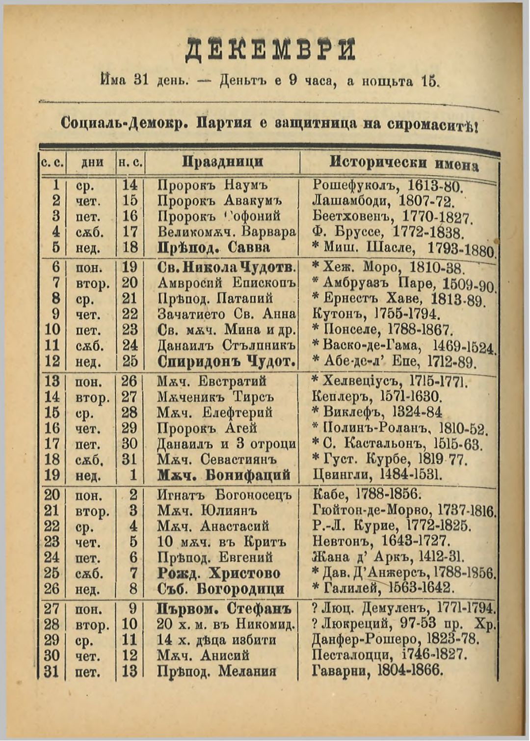 Червен народен календар за високосната 1904 година