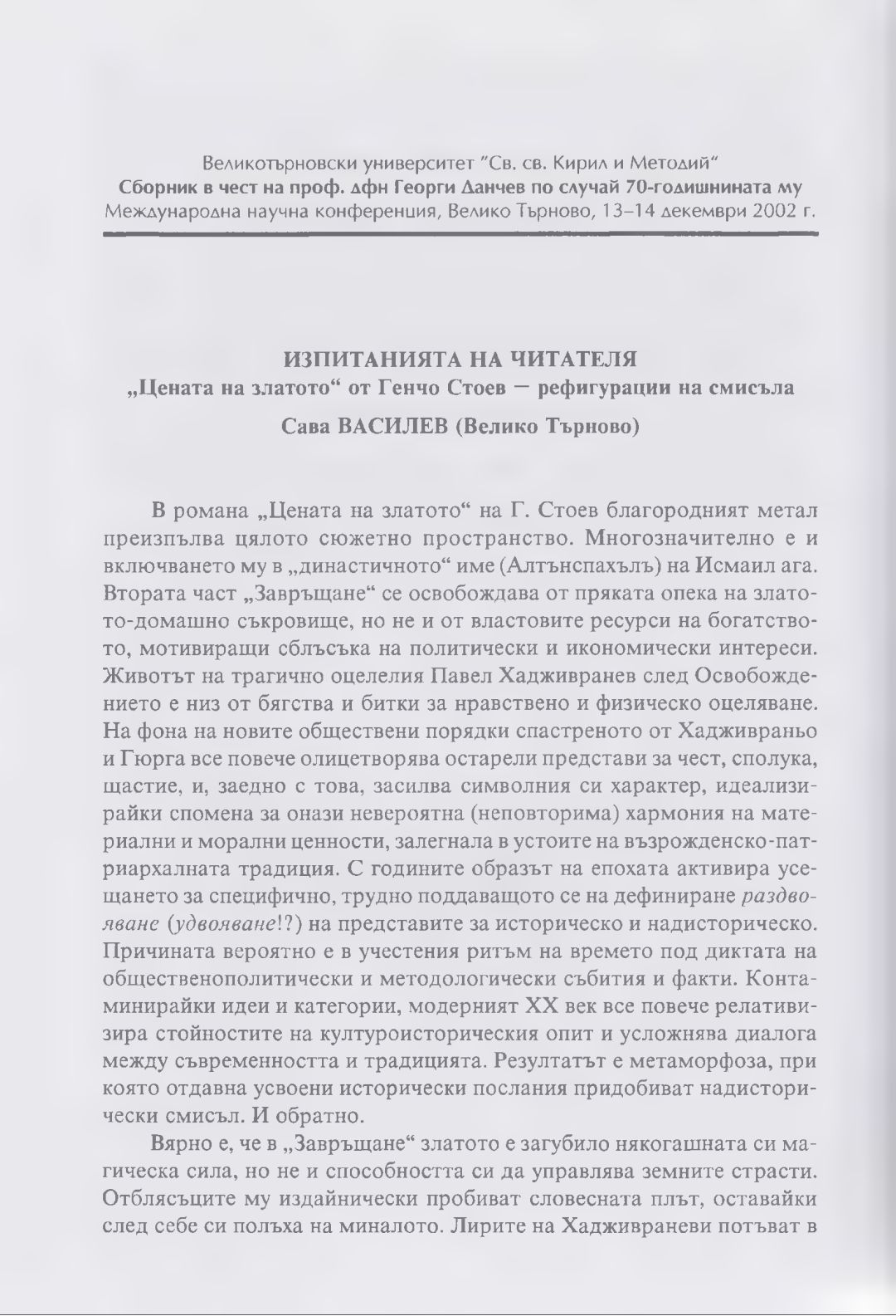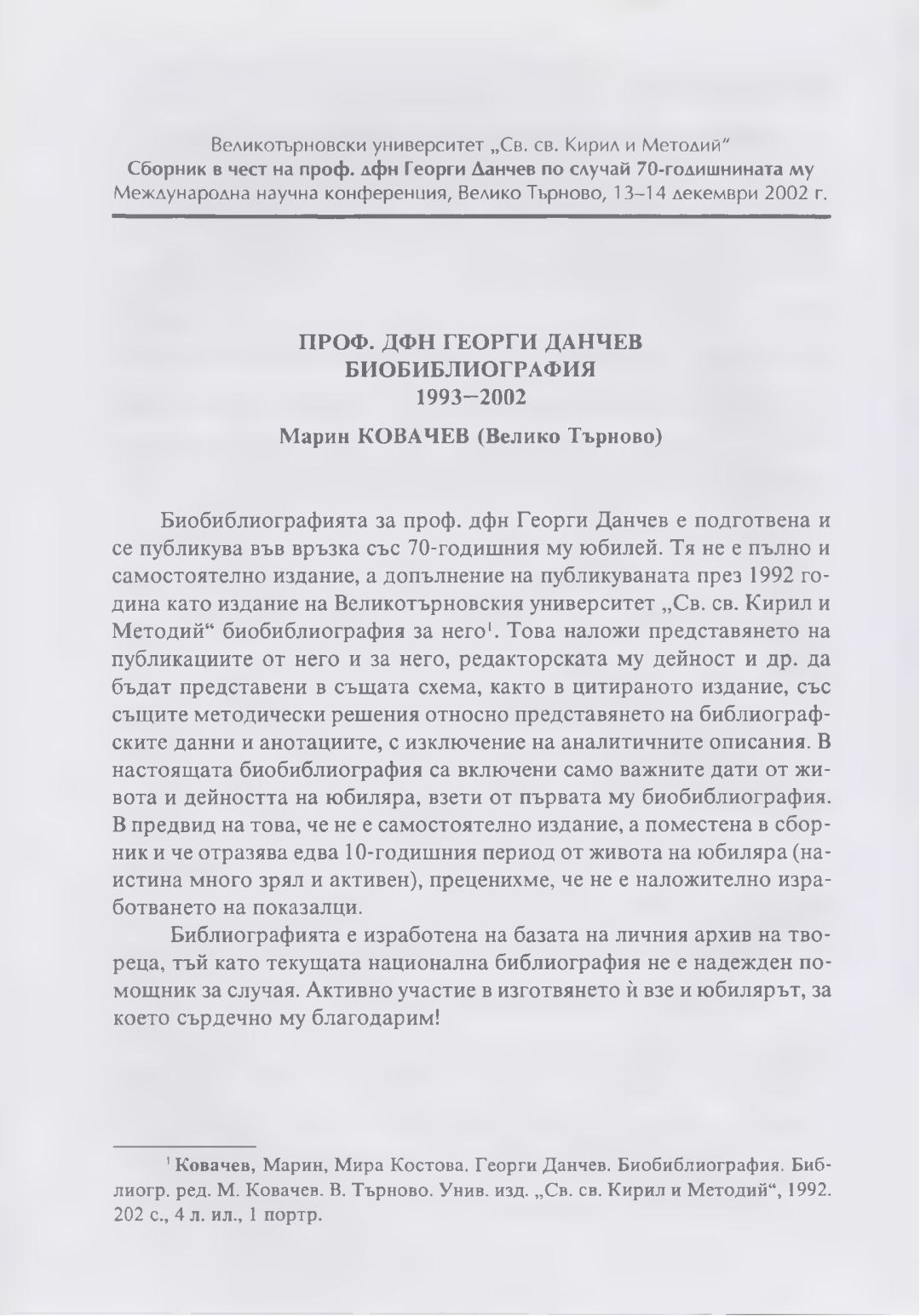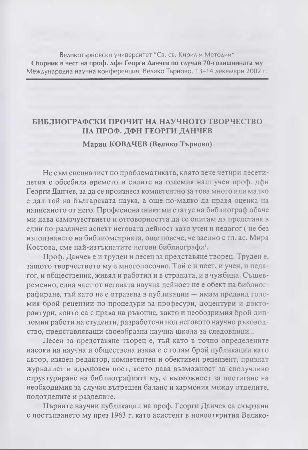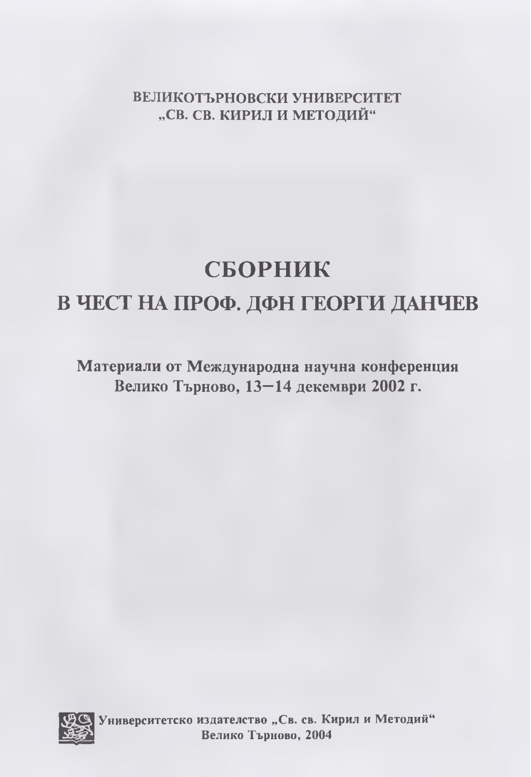 Сборник в чест на проф. дфн Георги Данчев : Материали от Междунар. науч. конф., В. Търново, 13-14 дек. 2002 г.