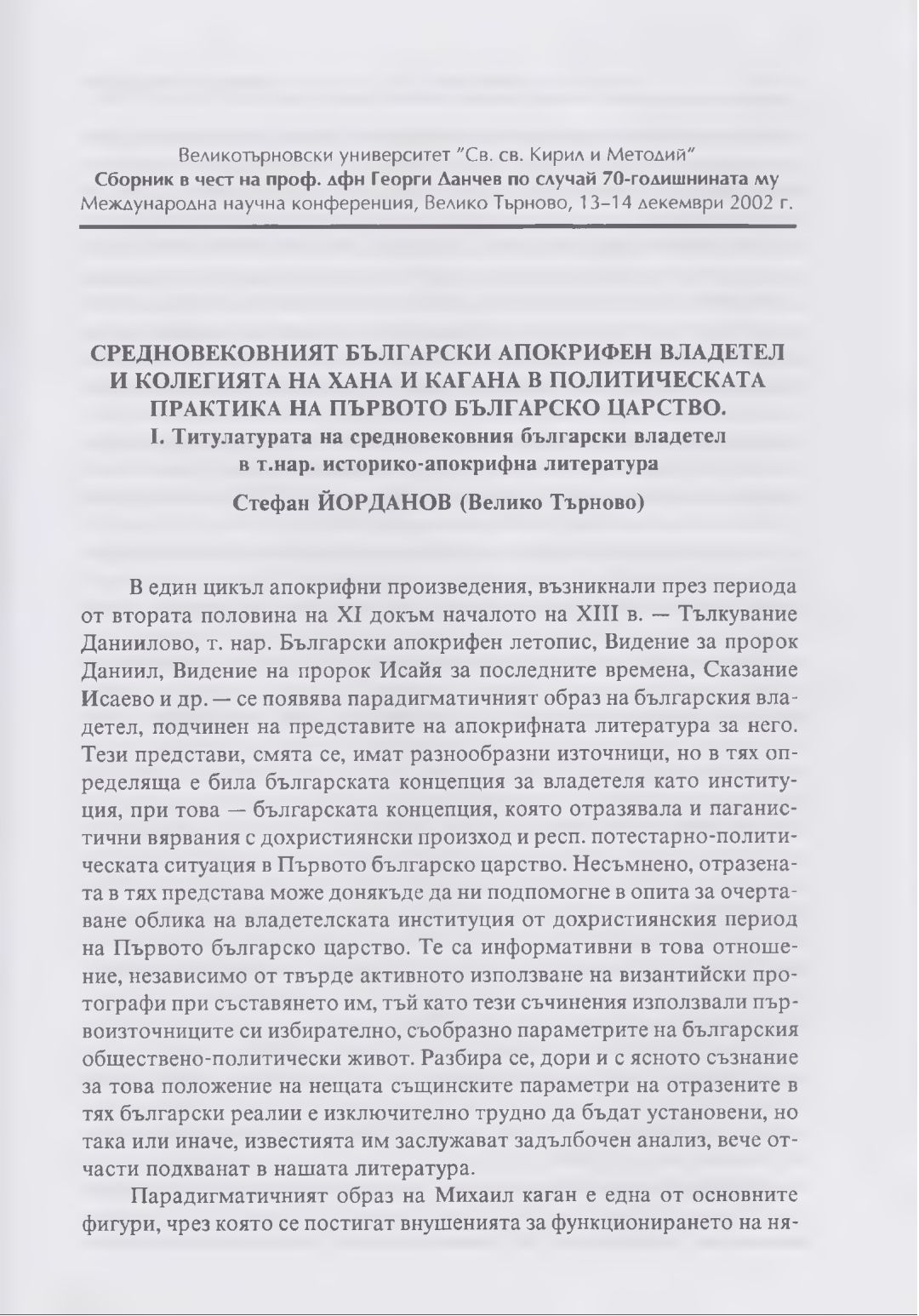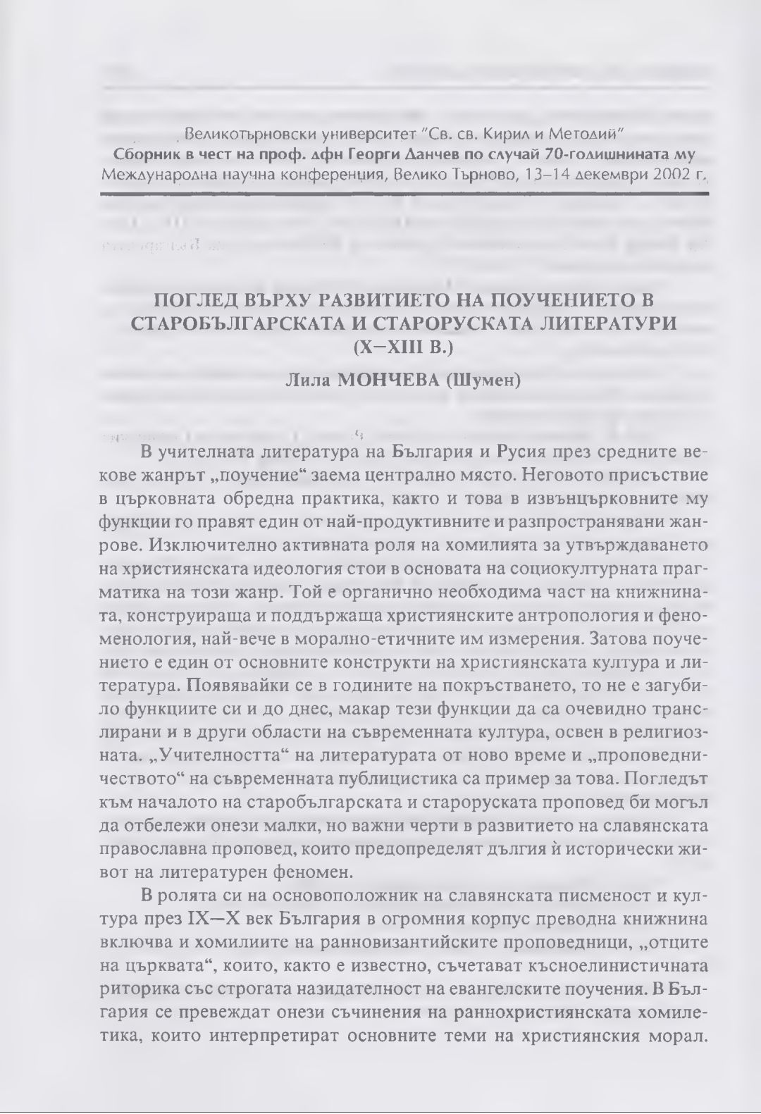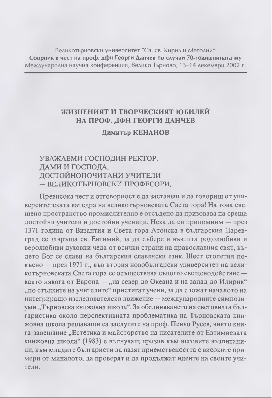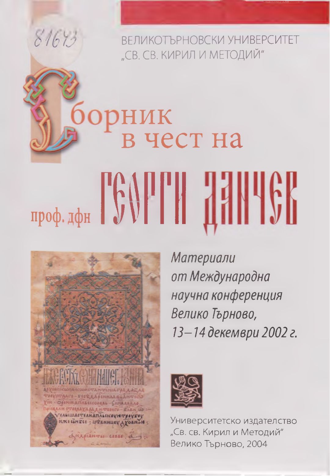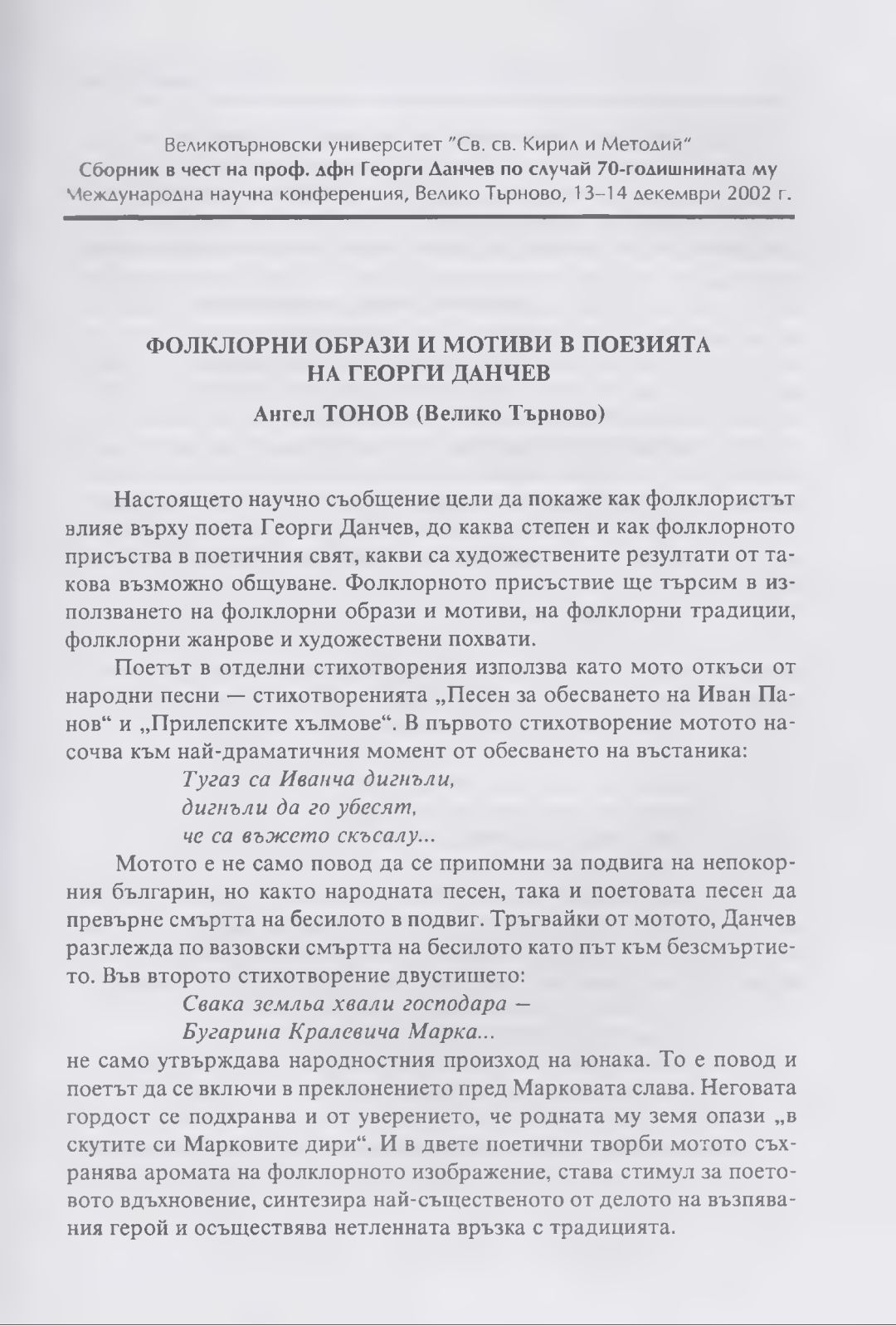 Сборник в чест на проф. дфн Георги Данчев : Материали от Междунар. науч. конф., В. Търново, 13-14 дек. 2002 г.