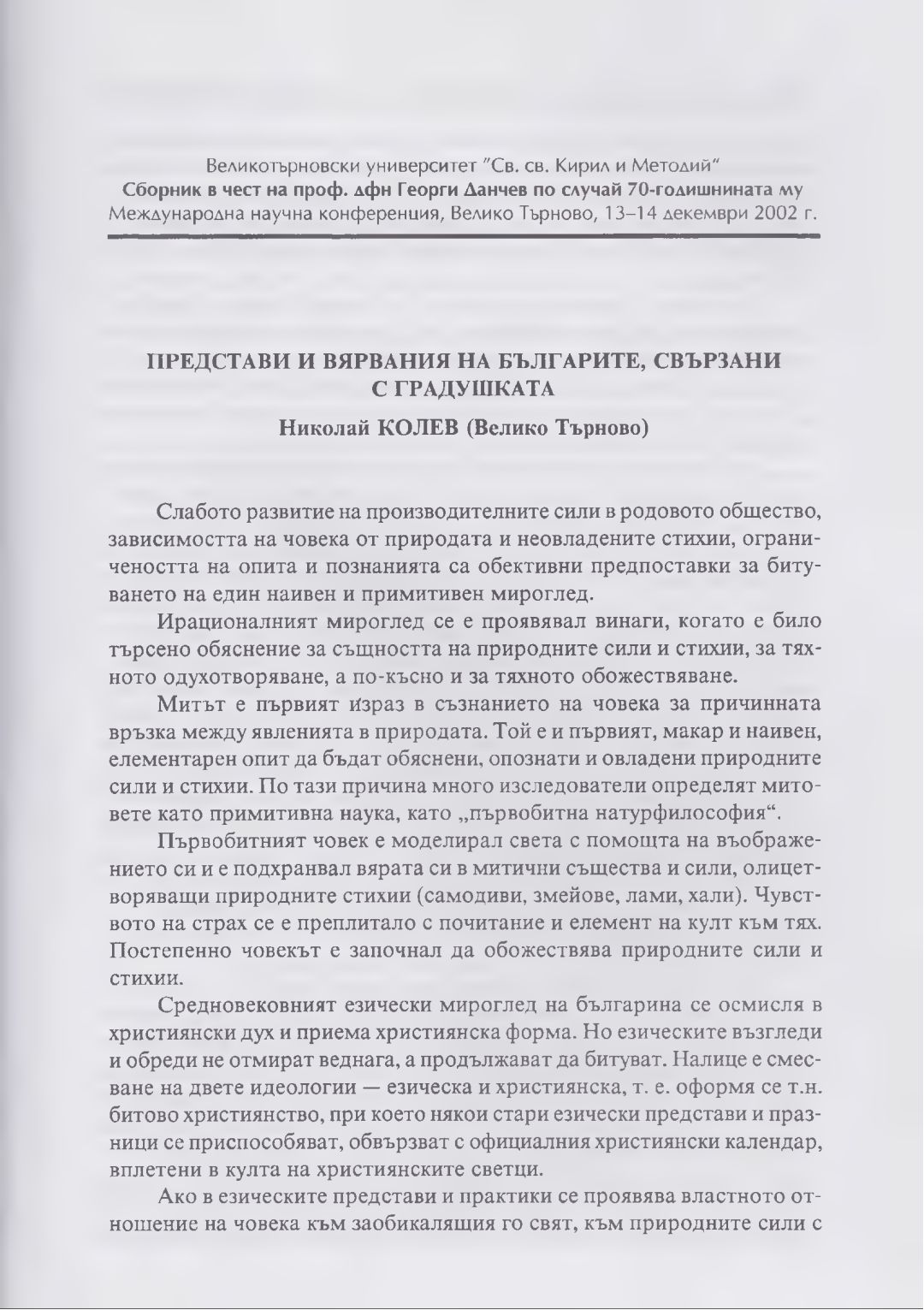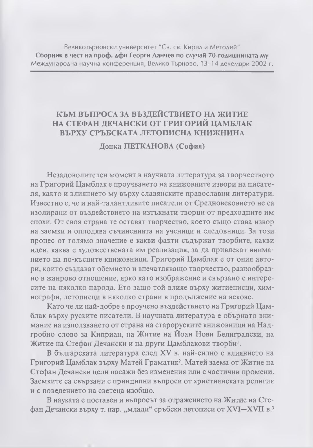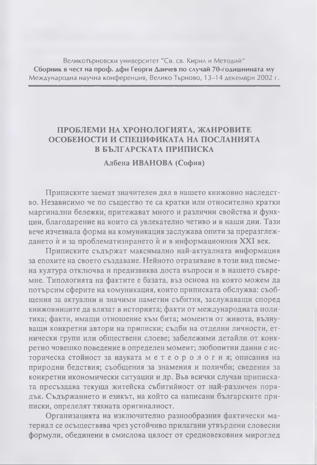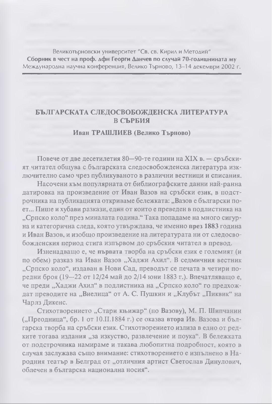 Сборник в чест на проф. дфн Георги Данчев : Материали от Междунар. науч. конф., В. Търново, 13-14 дек. 2002 г.