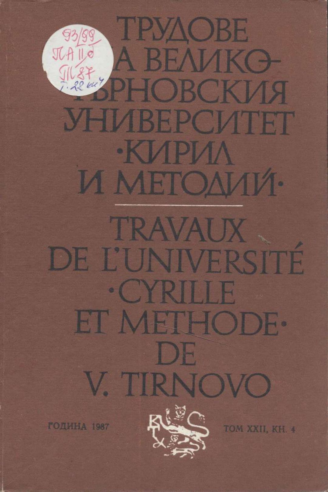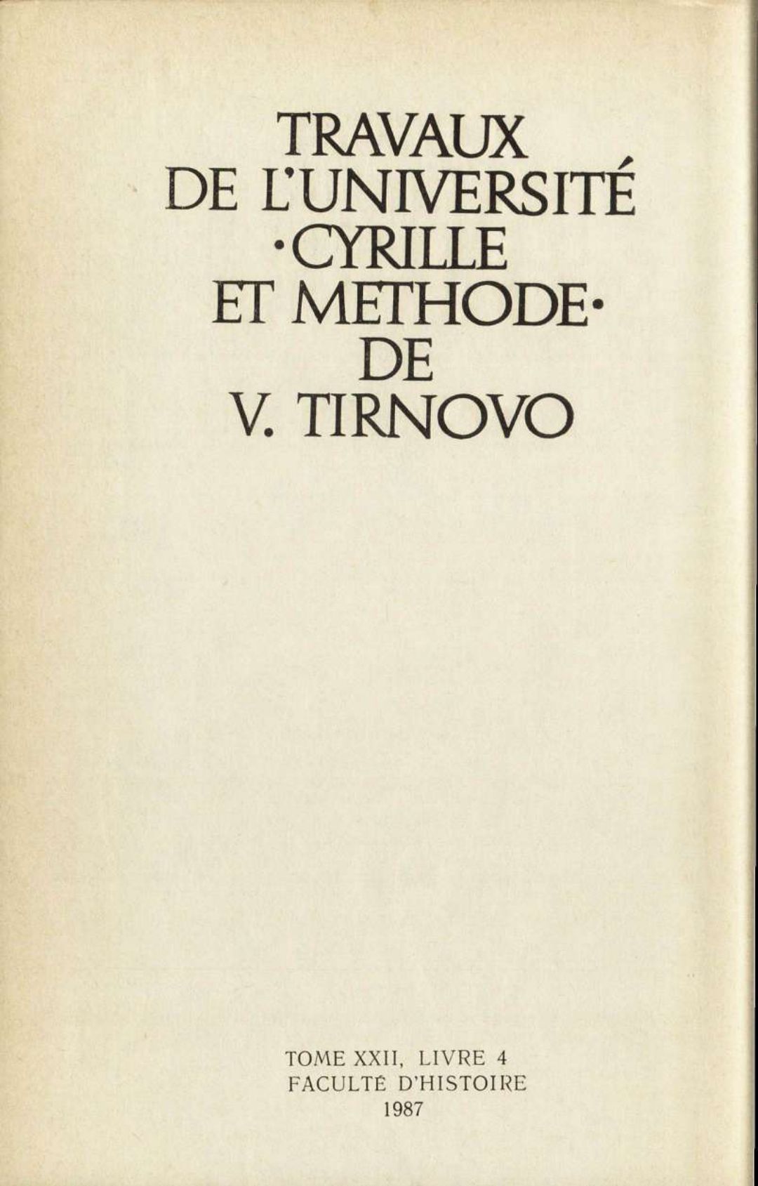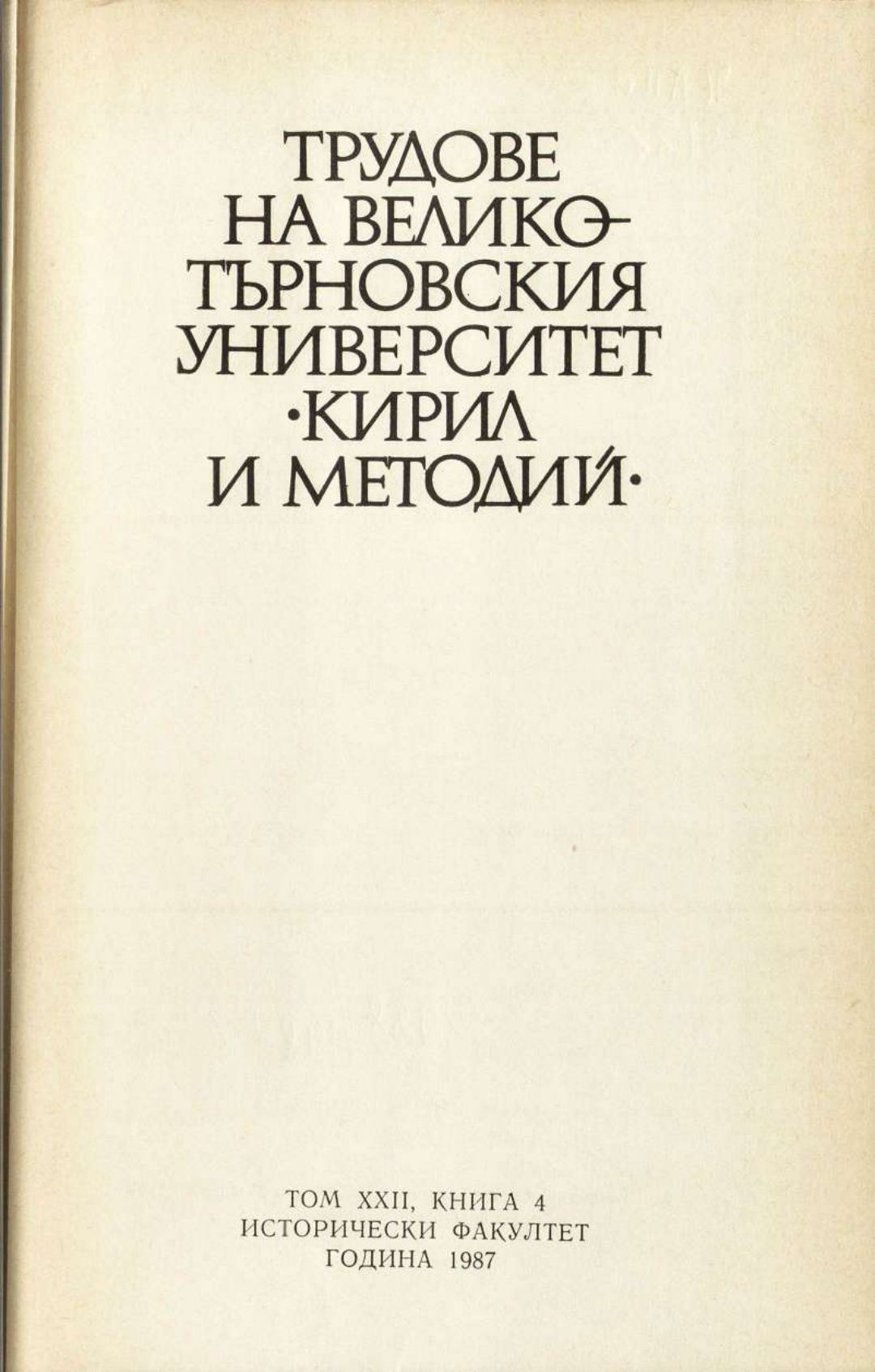 Том 22. Кн. 4. Трудове на Великотърновския университет "Св. св. Кирил и Методий". Исторически факултет = Travaux de L'universite St. St. Cyrille et Methode de V. Tirnovo. Faculte histoire