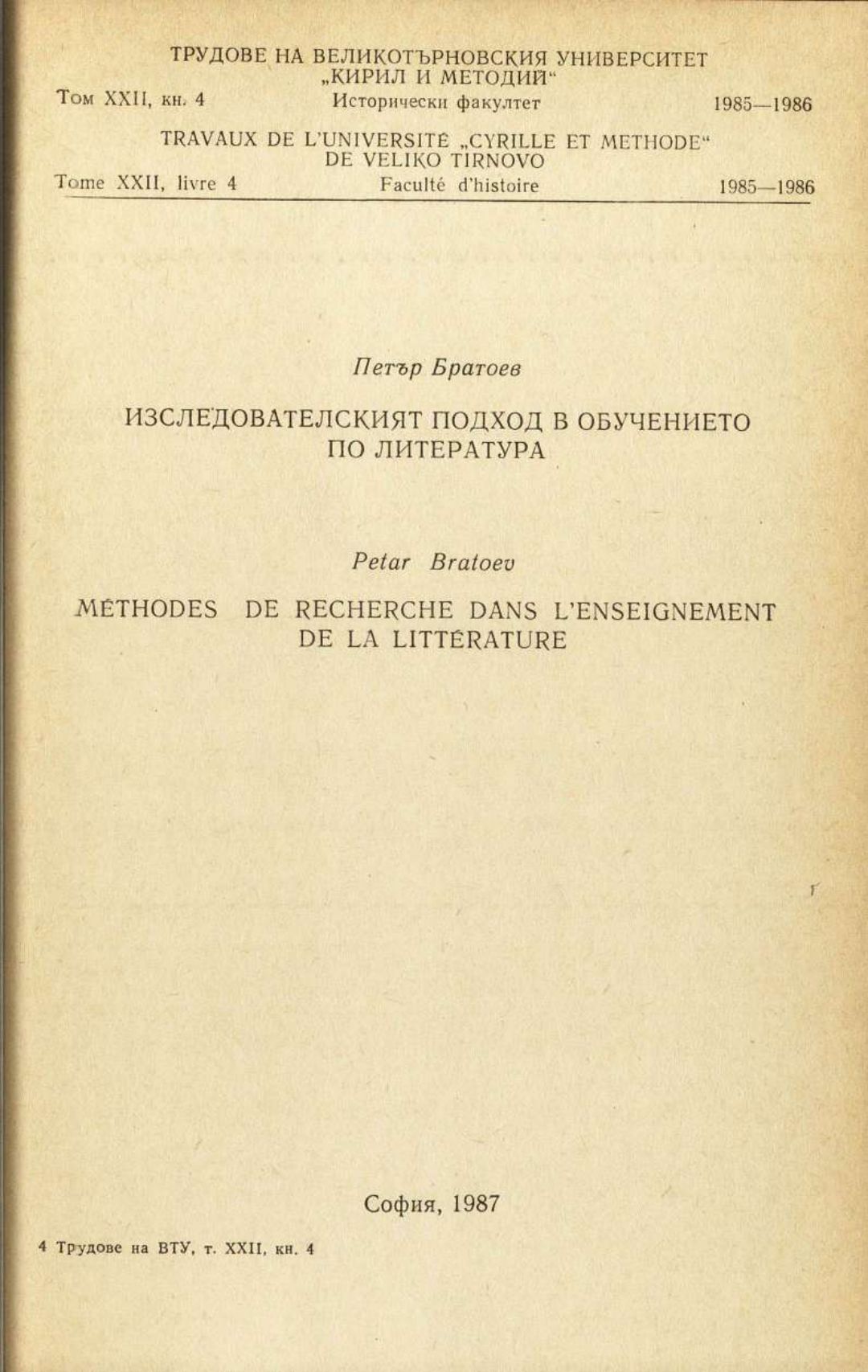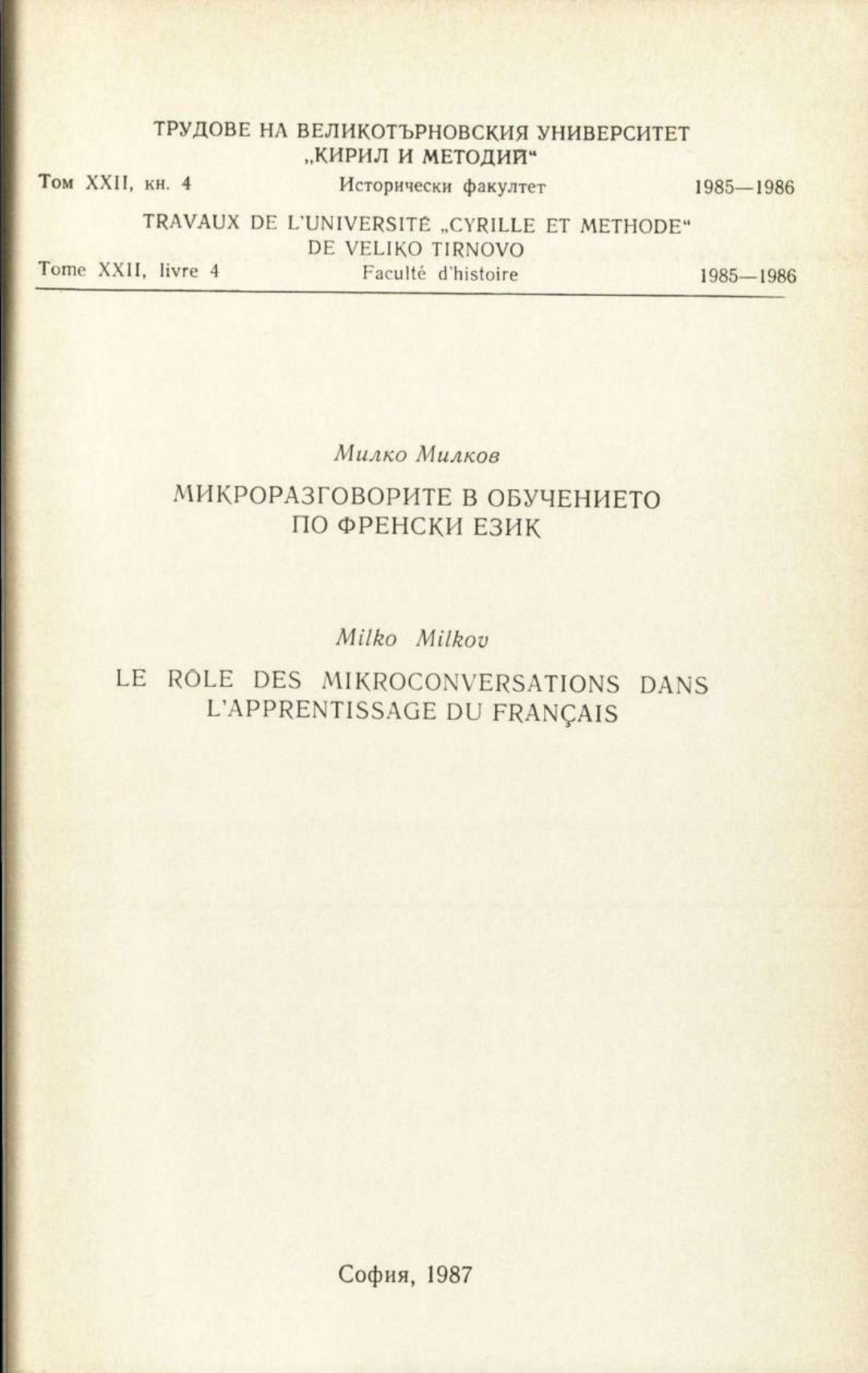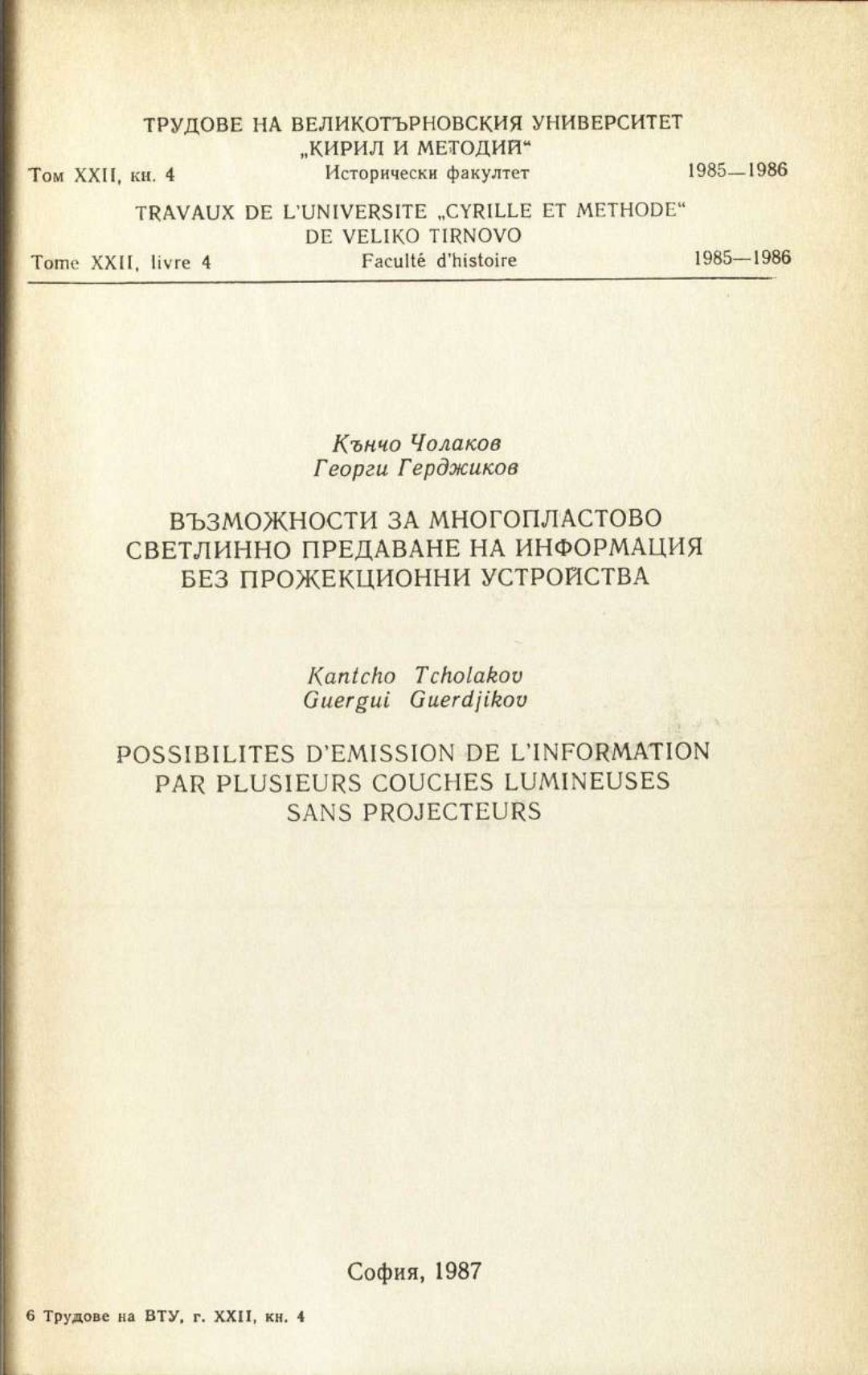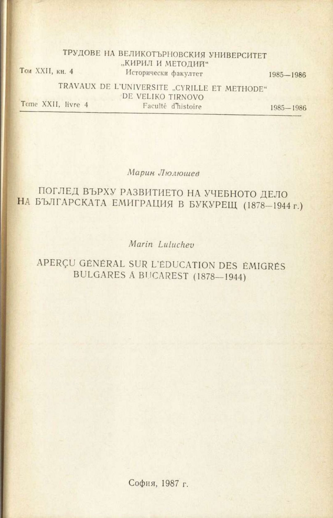 Том 22. Кн. 4. Трудове на Великотърновския университет "Св. св. Кирил и Методий". Исторически факултет = Travaux de L'universite St. St. Cyrille et Methode de V. Tirnovo. Faculte histoire