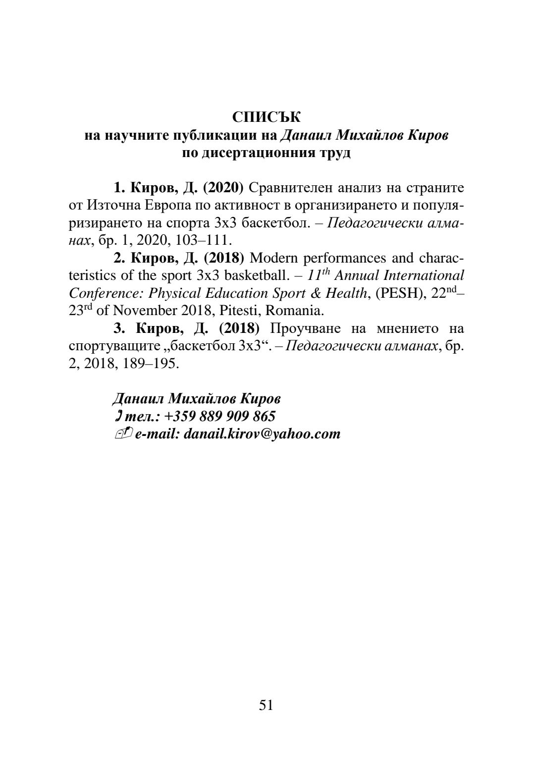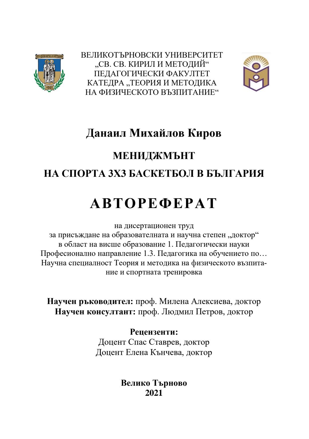 Мениджмънт на спорта 3Х3 баскетбол в България : Автореферат / Данаил Михайлов Киров ; Науч. ръководител Милена Алексиева