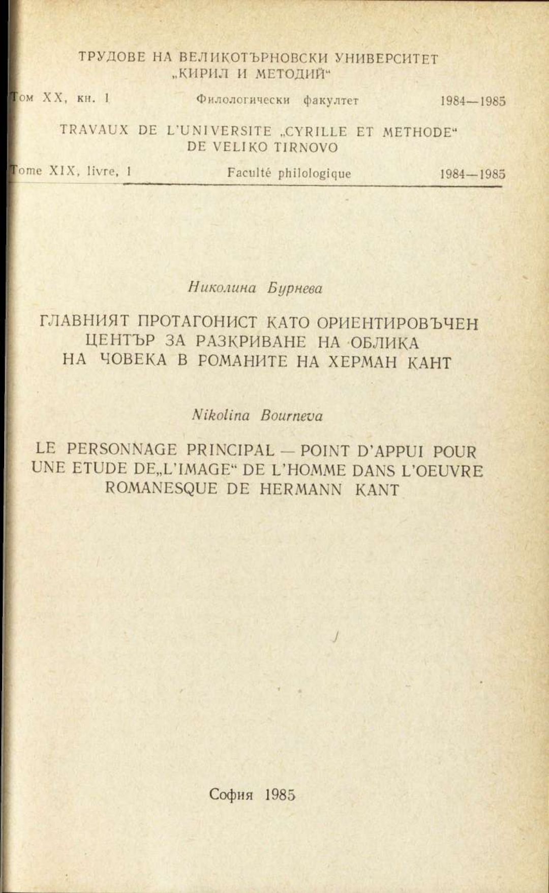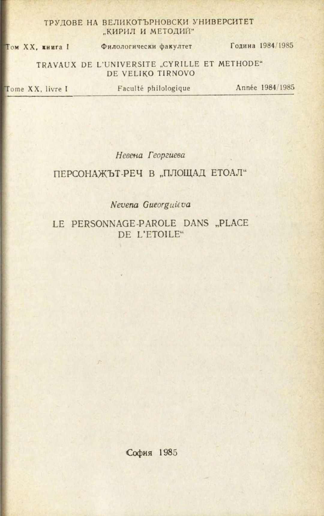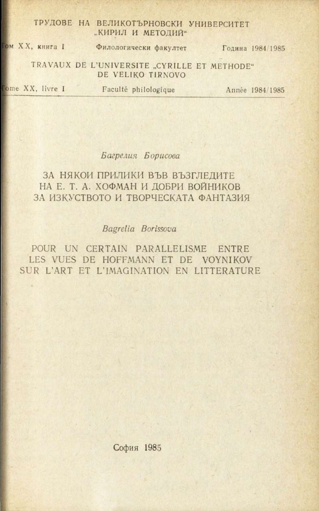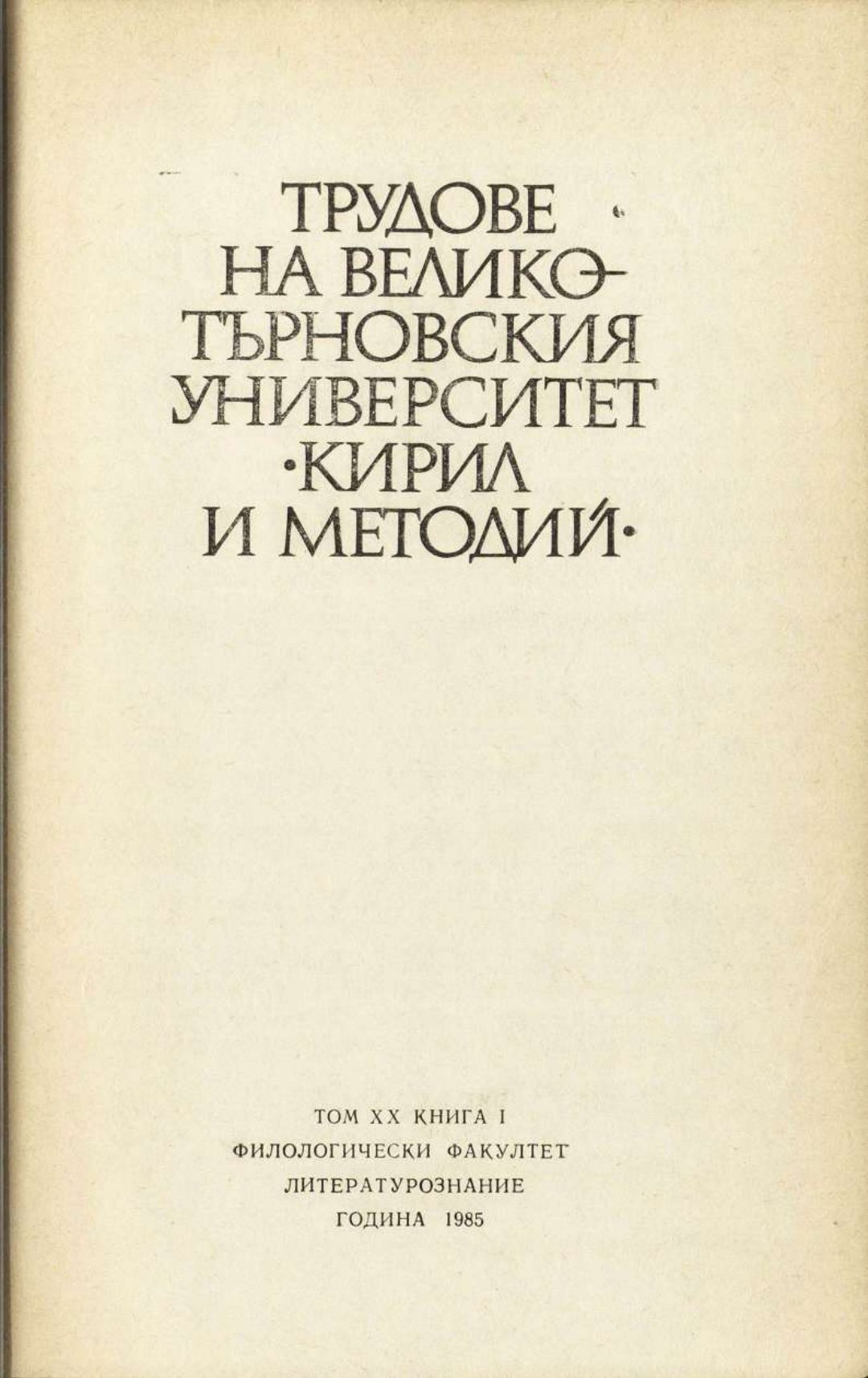 Том 20. Кн.1. Трудове на Великотърновския университет "Св. св. Кирил и Методий". Филологически факултет = Travaux de L'universite St. St. Cyrille et Methode de Veliko Tirnovo. Faculte de philologue Литературознание
