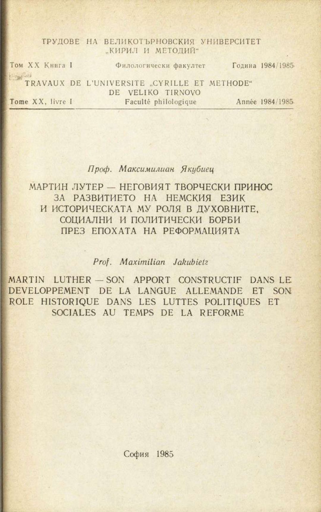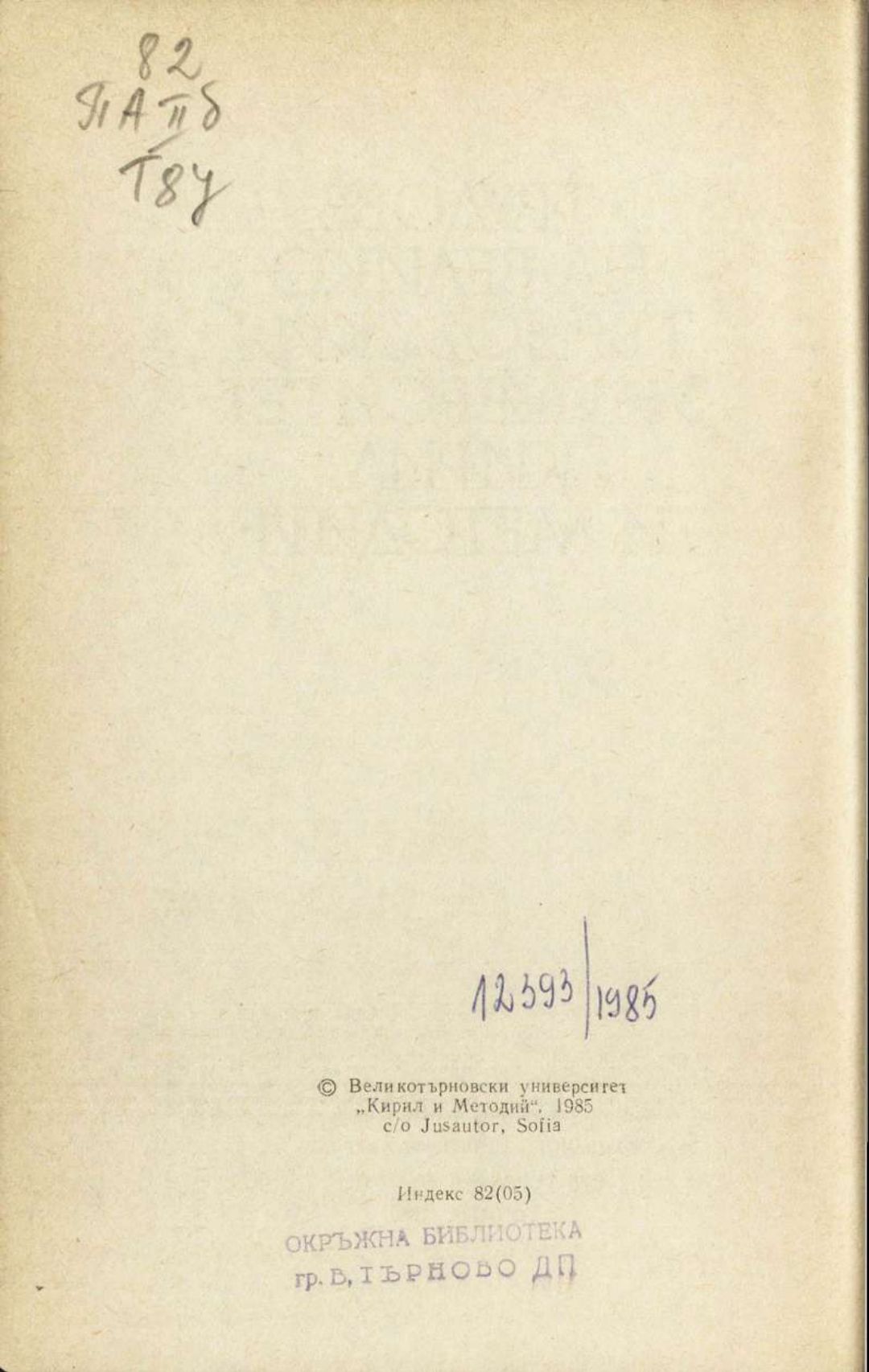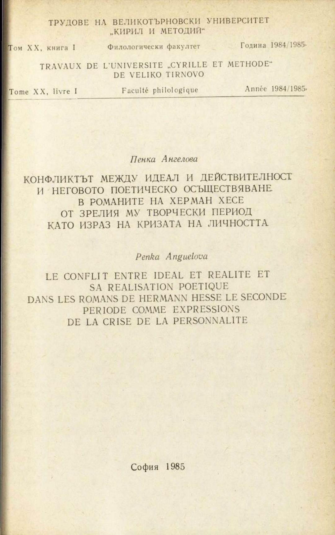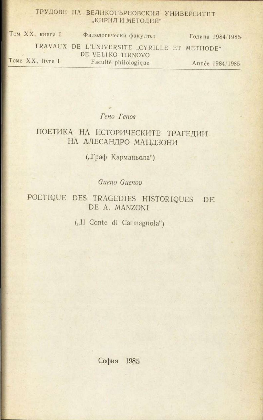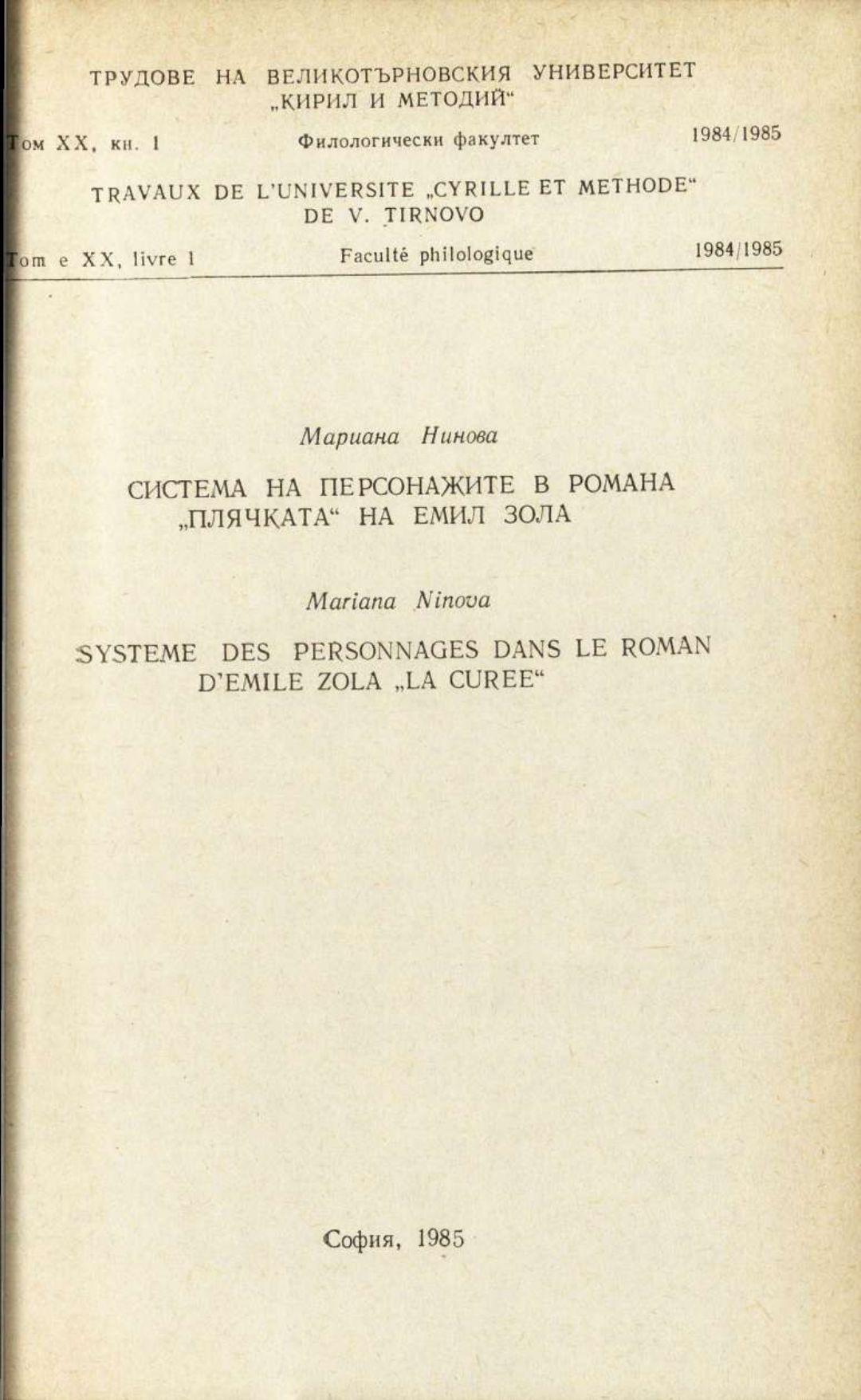 Том 20. Кн.1. Трудове на Великотърновския университет "Св. св. Кирил и Методий". Филологически факултет = Travaux de L'universite St. St. Cyrille et Methode de Veliko Tirnovo. Faculte de philologue Литературознание