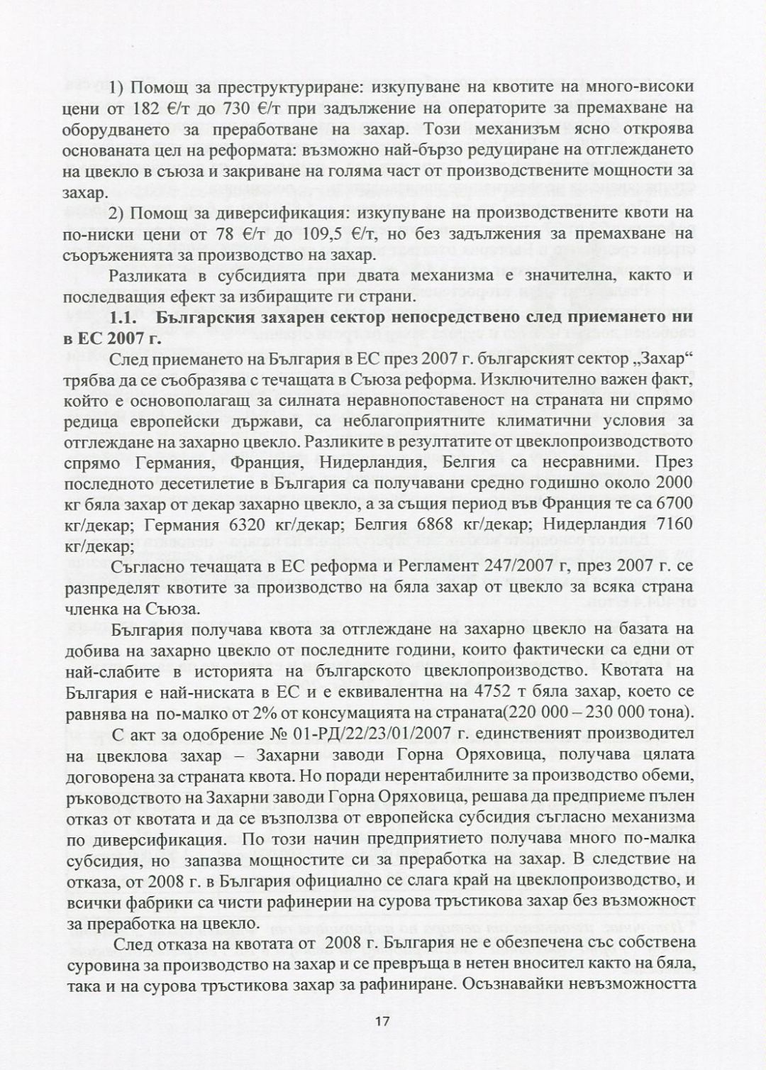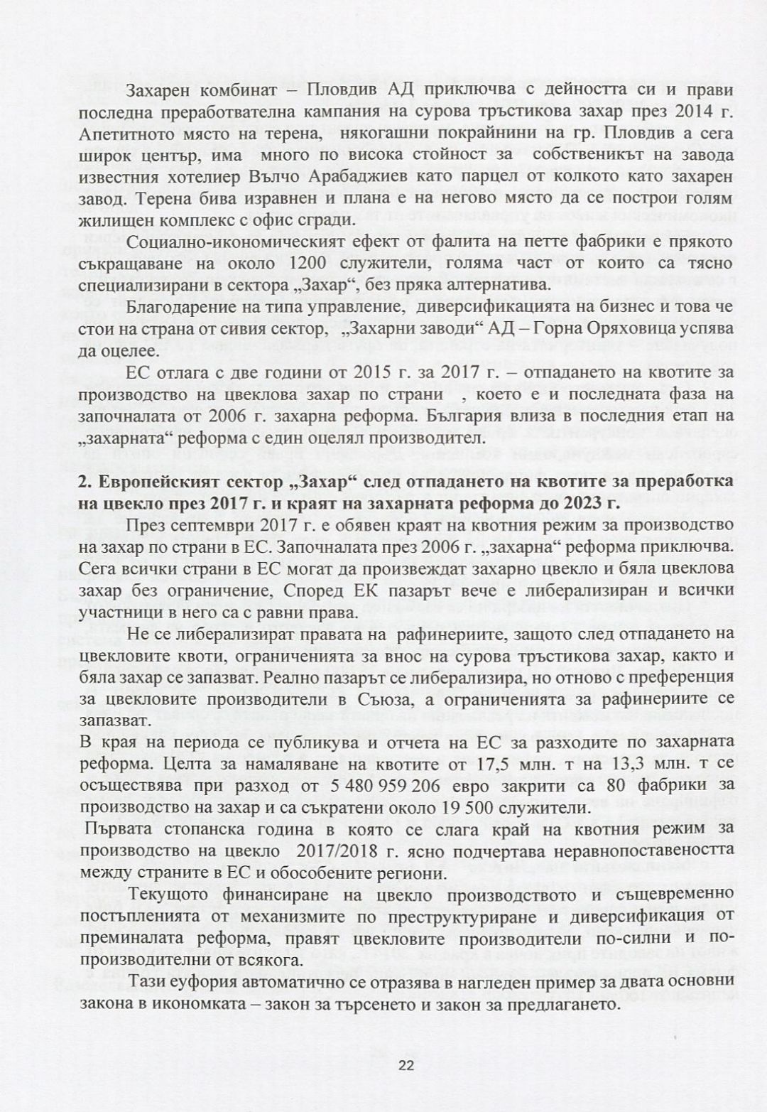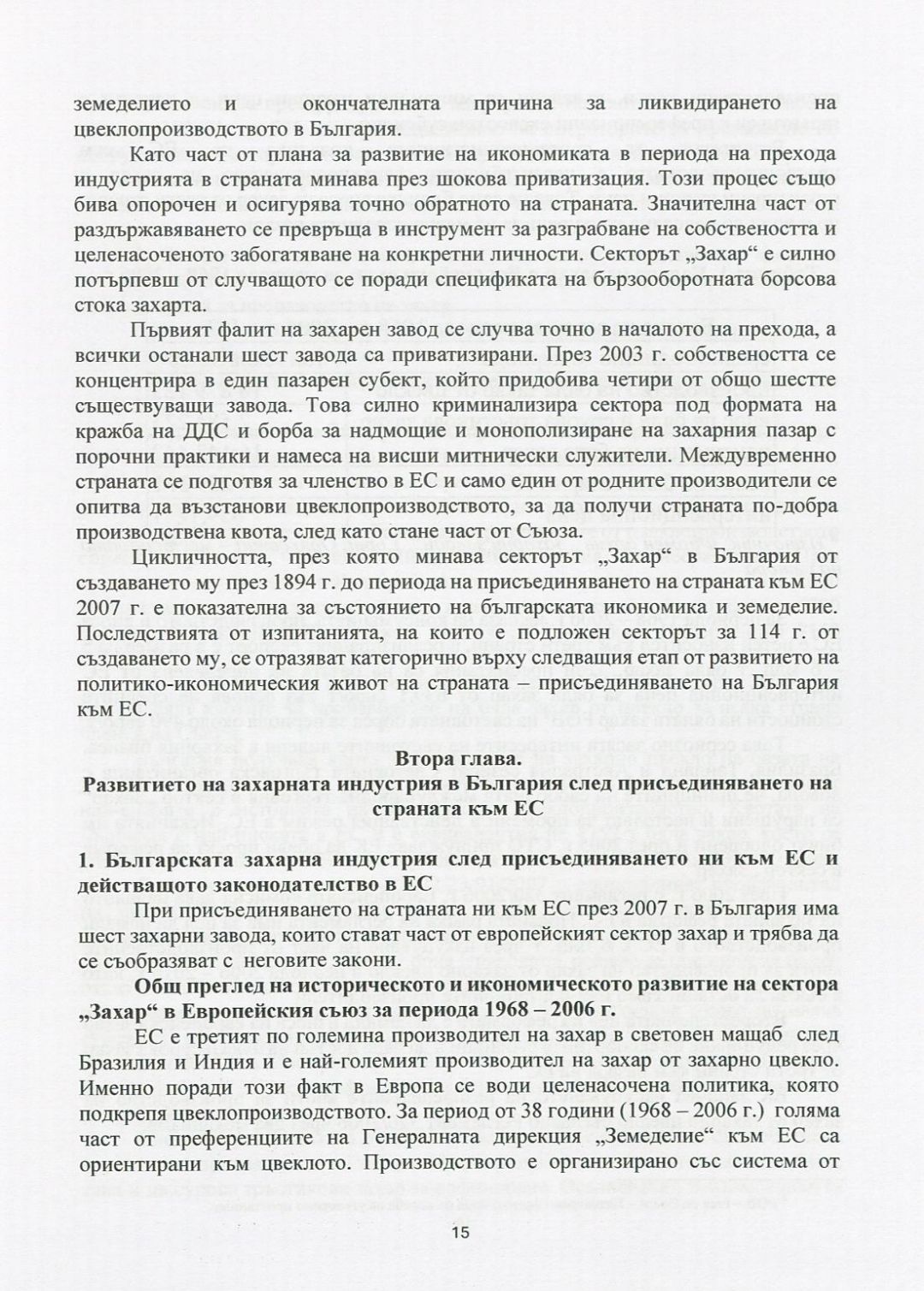 Особености и развитие на сектор "Захар" и мястото му в макроикономическата политика на България през 21 век : Автореферат / Ивайло Генов Мочуков ; Науч. ръководител Иван Руменов Бянов