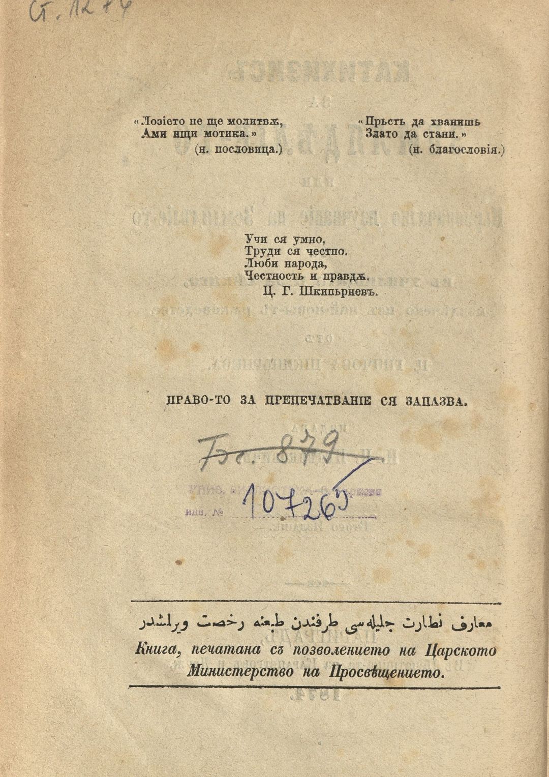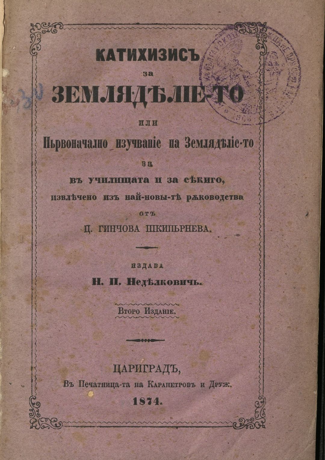 Катихизис за земляделието или първоначално изучаване на земляделието : За в училищата и за секиго, извлечено из най-новите ръководства oт Ц. Гинчова Шкипърнева. – 2. изд.