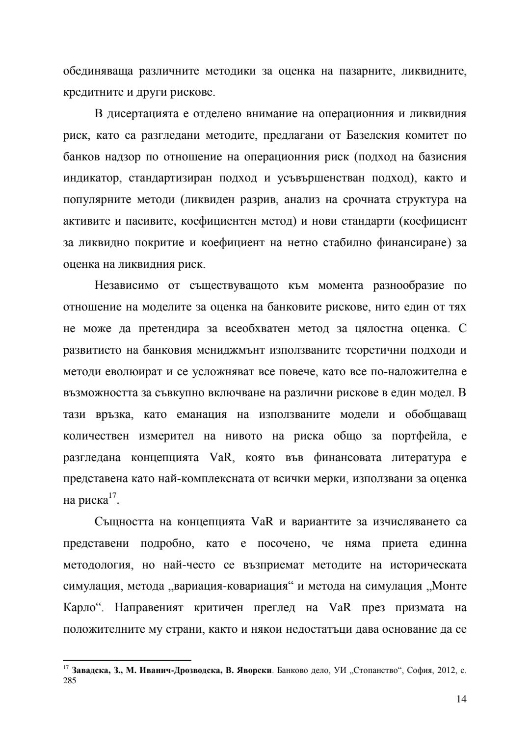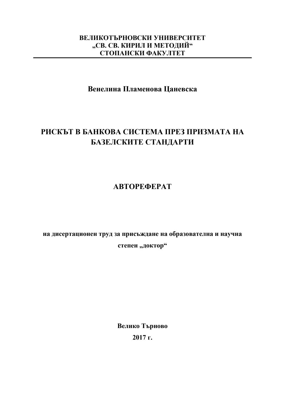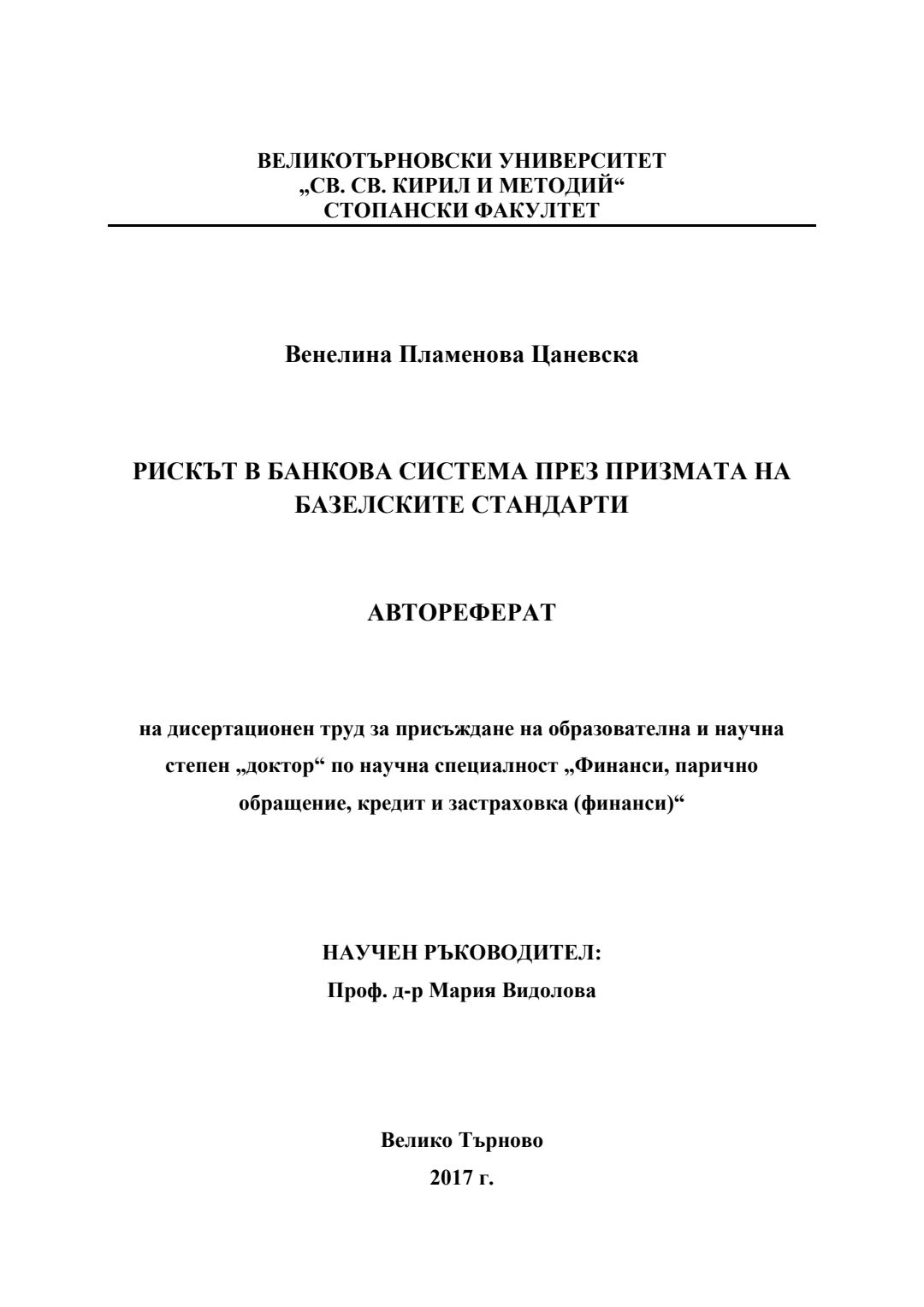 Рискът в банкова система през призмата на Базелските стандарти : Автореферат / Венелина Пламенова Цаневска ; Науч. ръководител Мария Видолова