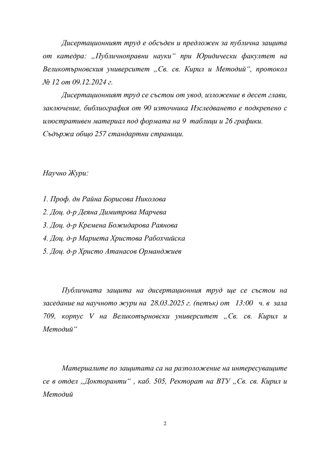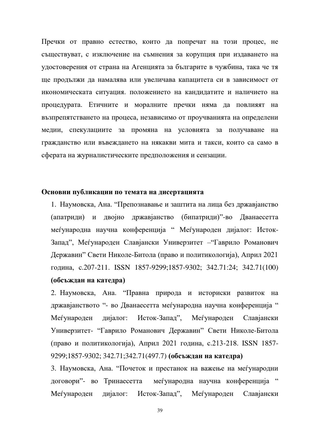 Сравнителен анализ на Закона за гражданството на Република Северна Македония и Република България : Автореферат / Ана Наумовска Кузманоска ; Науч. ръководител Благой Видин