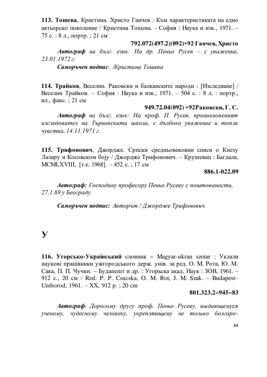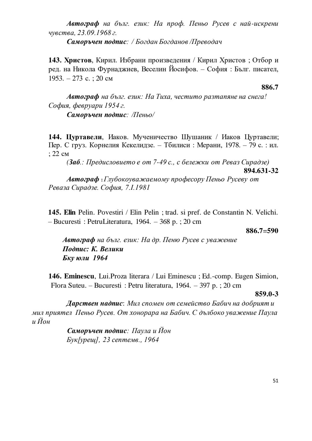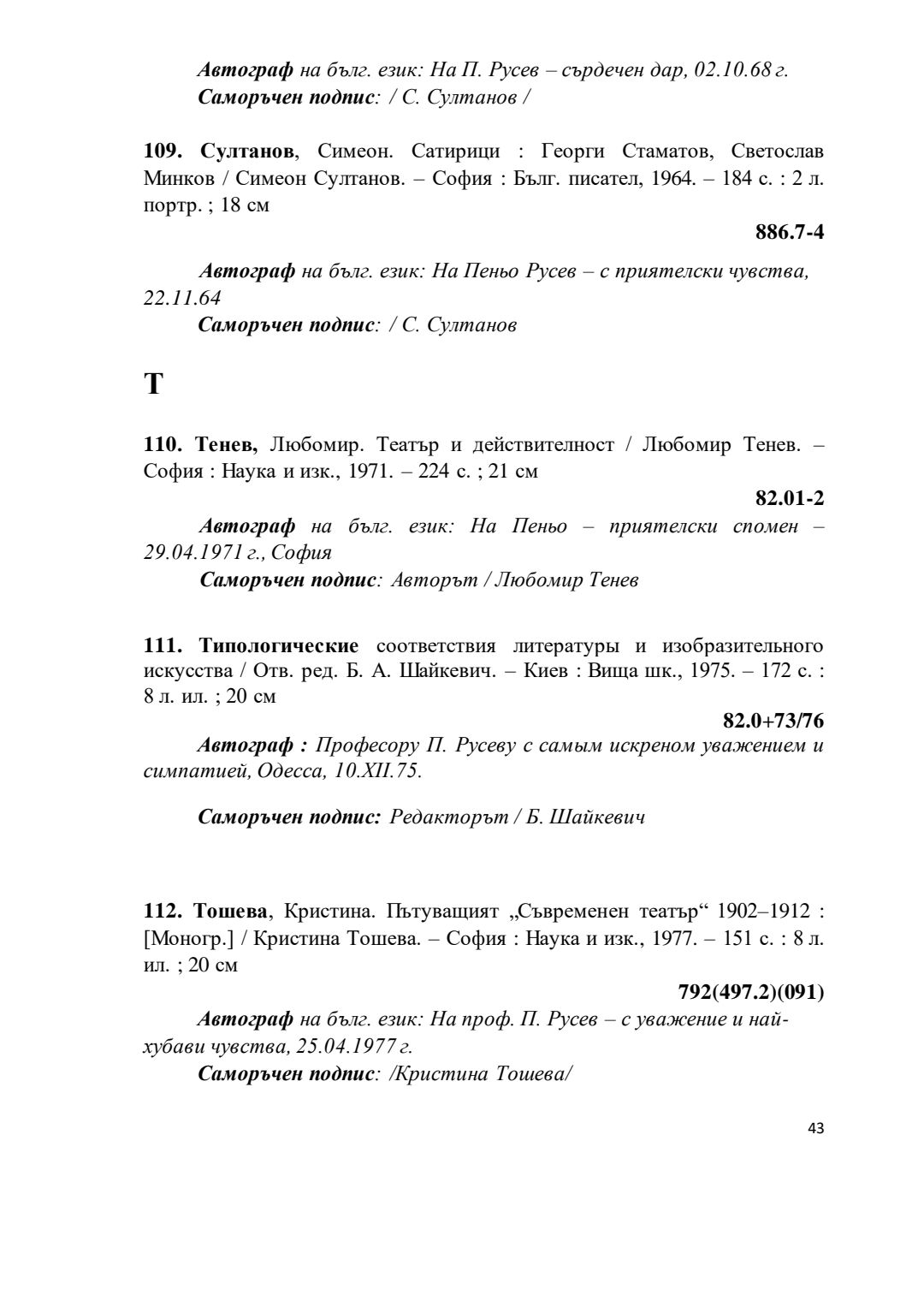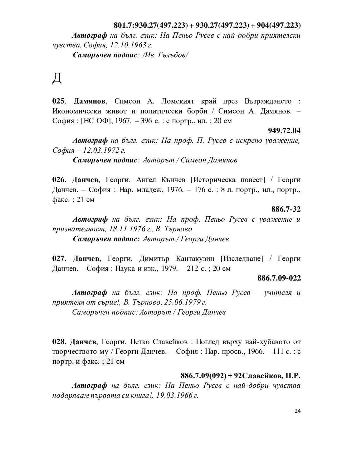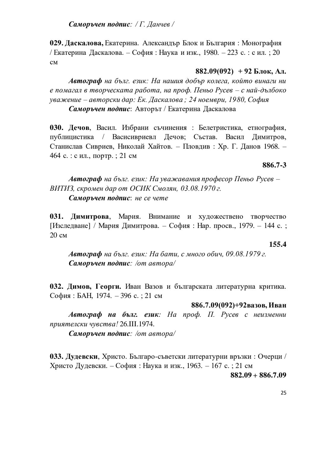 Библиографски указател „Дарствени Надписи“ от колекцията книги на проф. Пеньо Русев