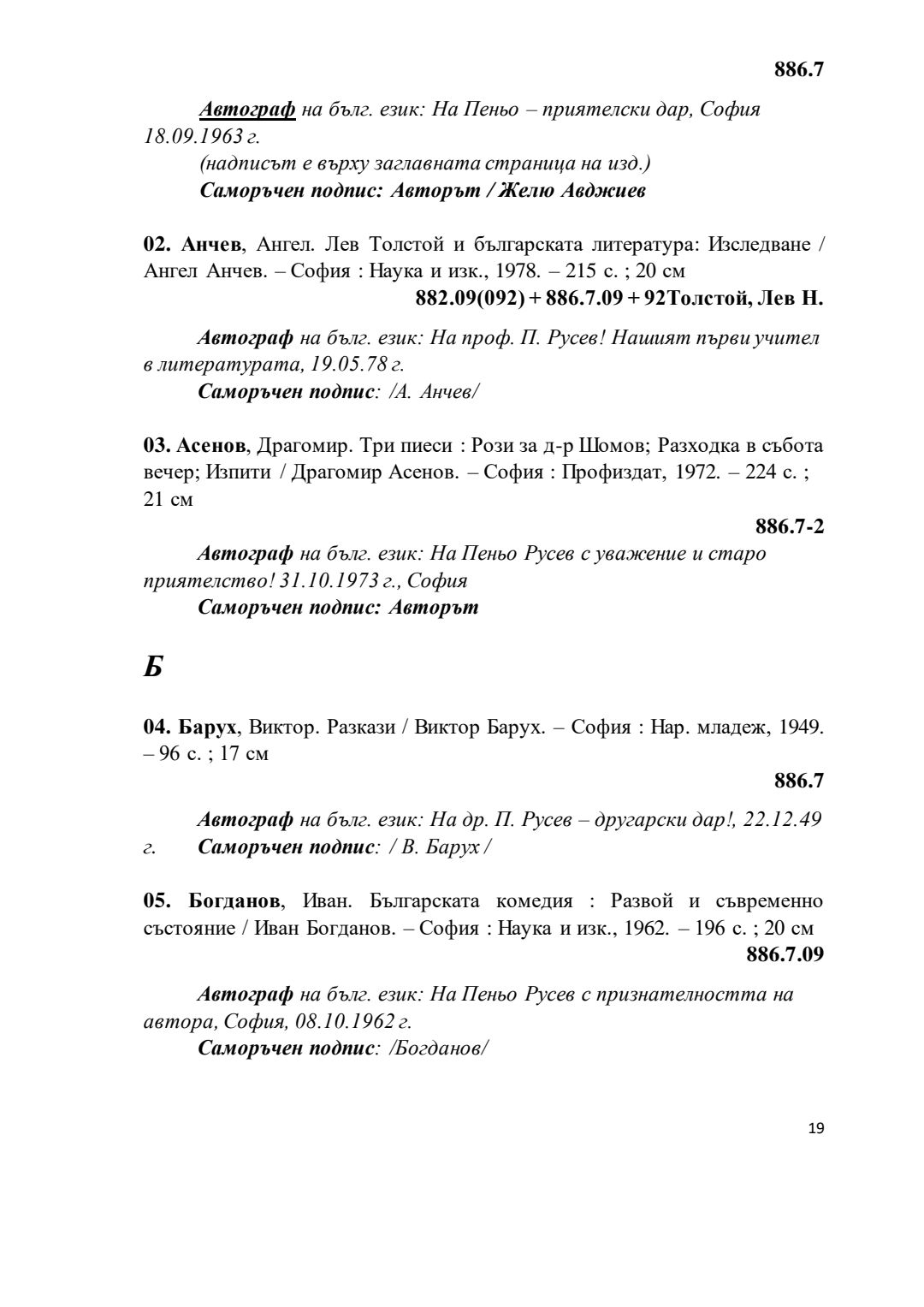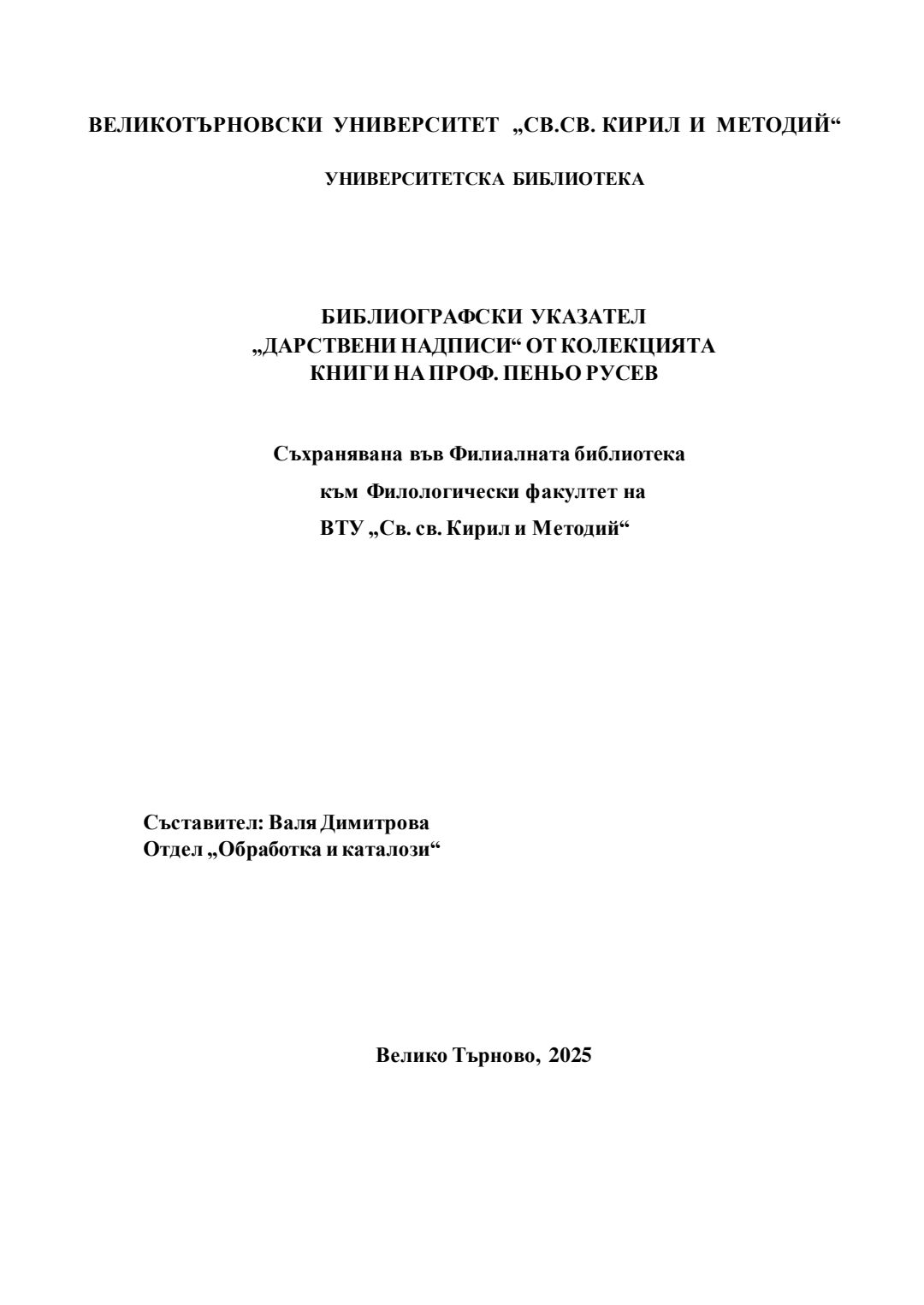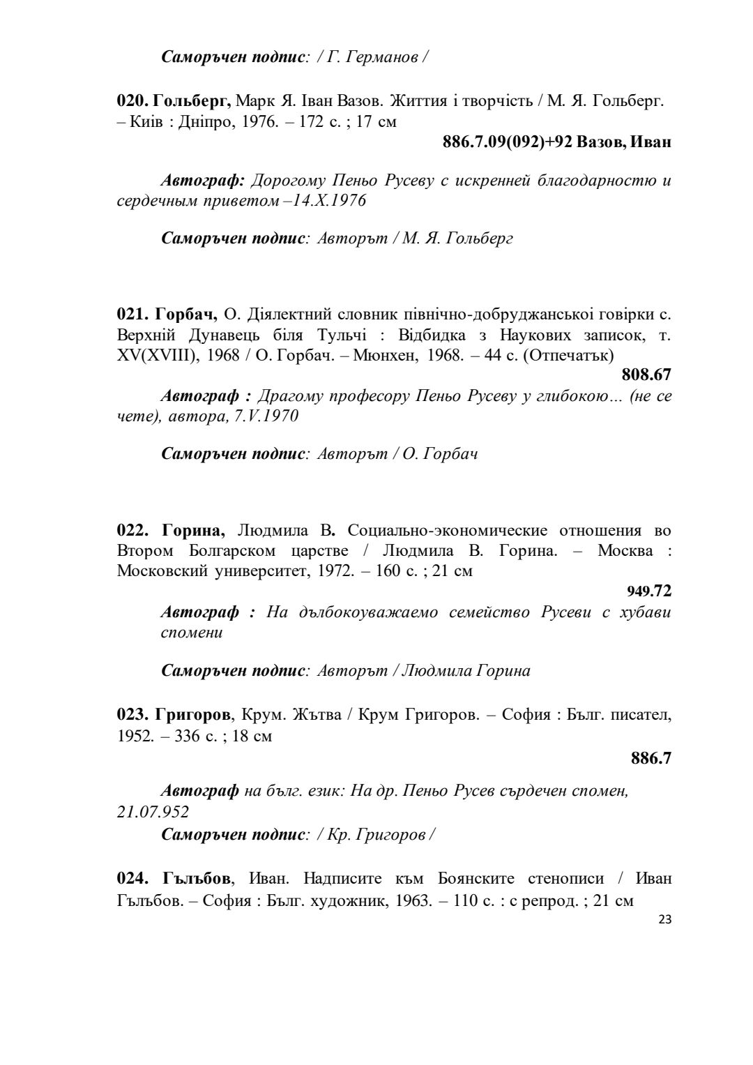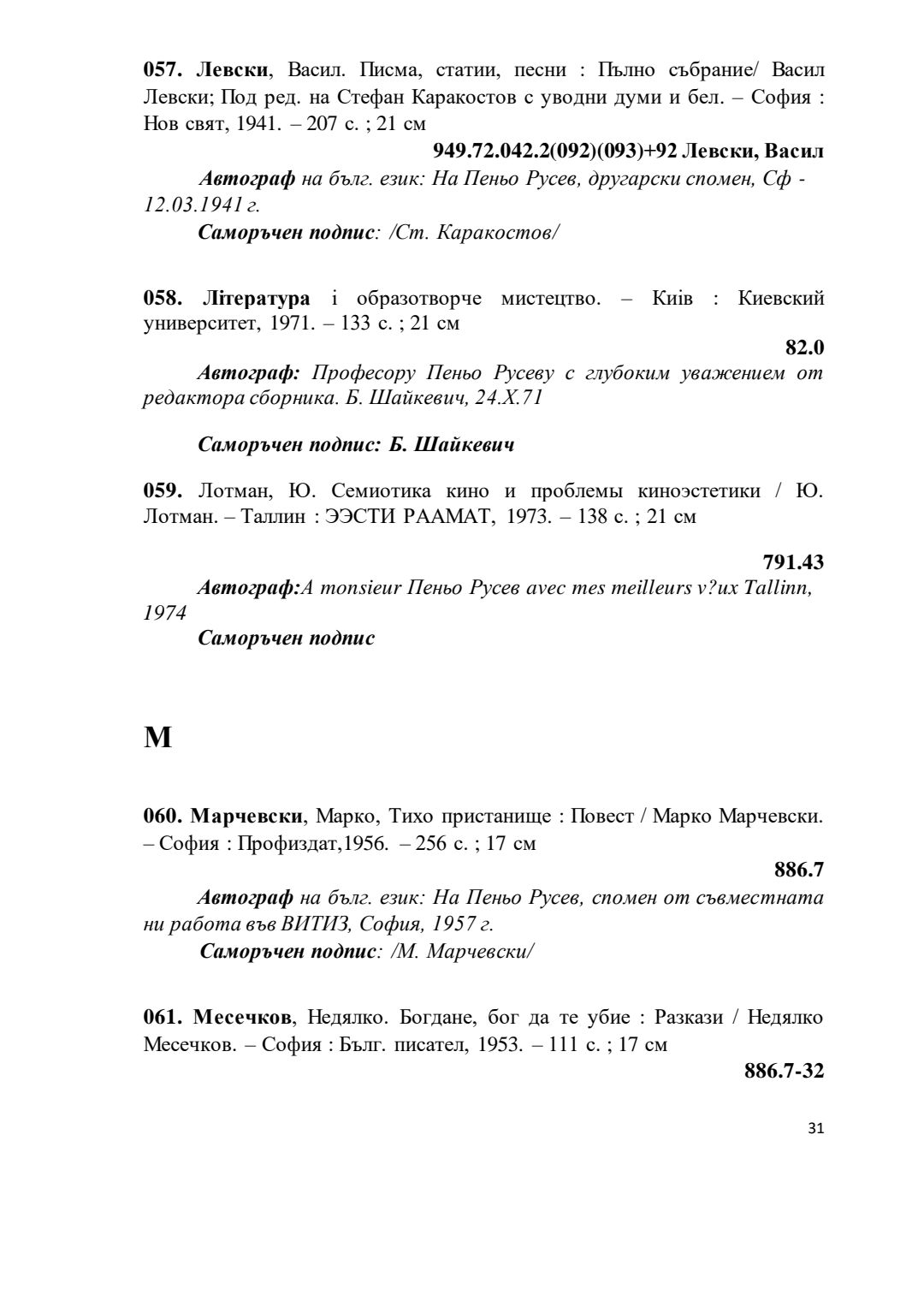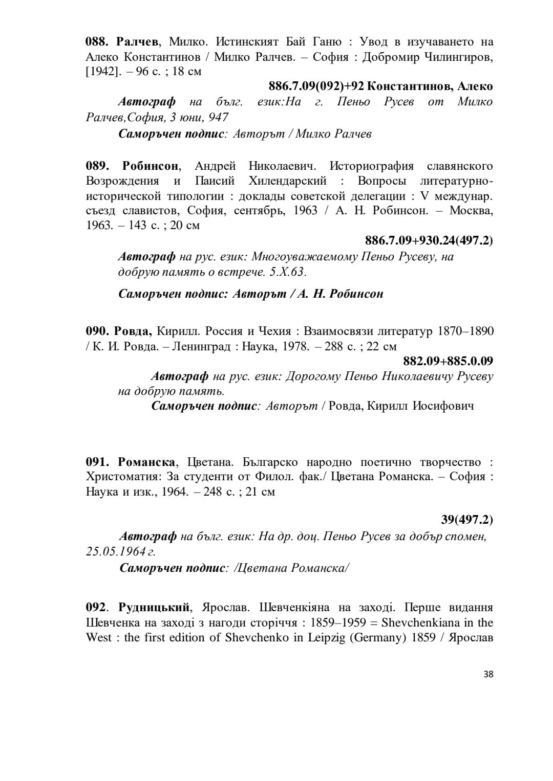 Библиографски указател „Дарствени Надписи“ от колекцията книги на проф. Пеньо Русев