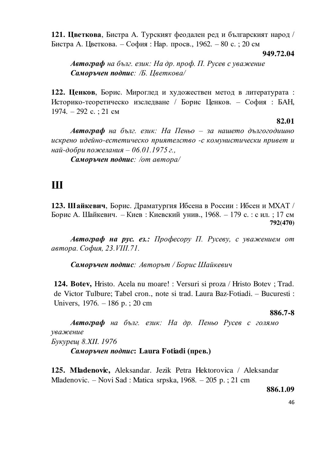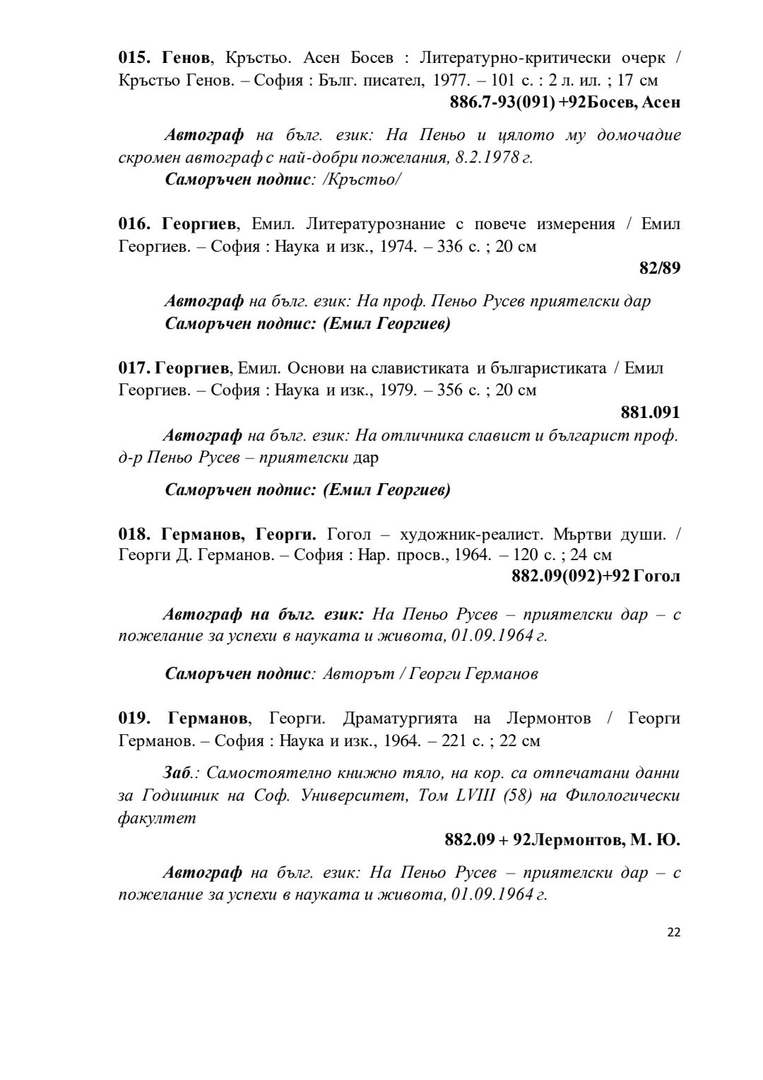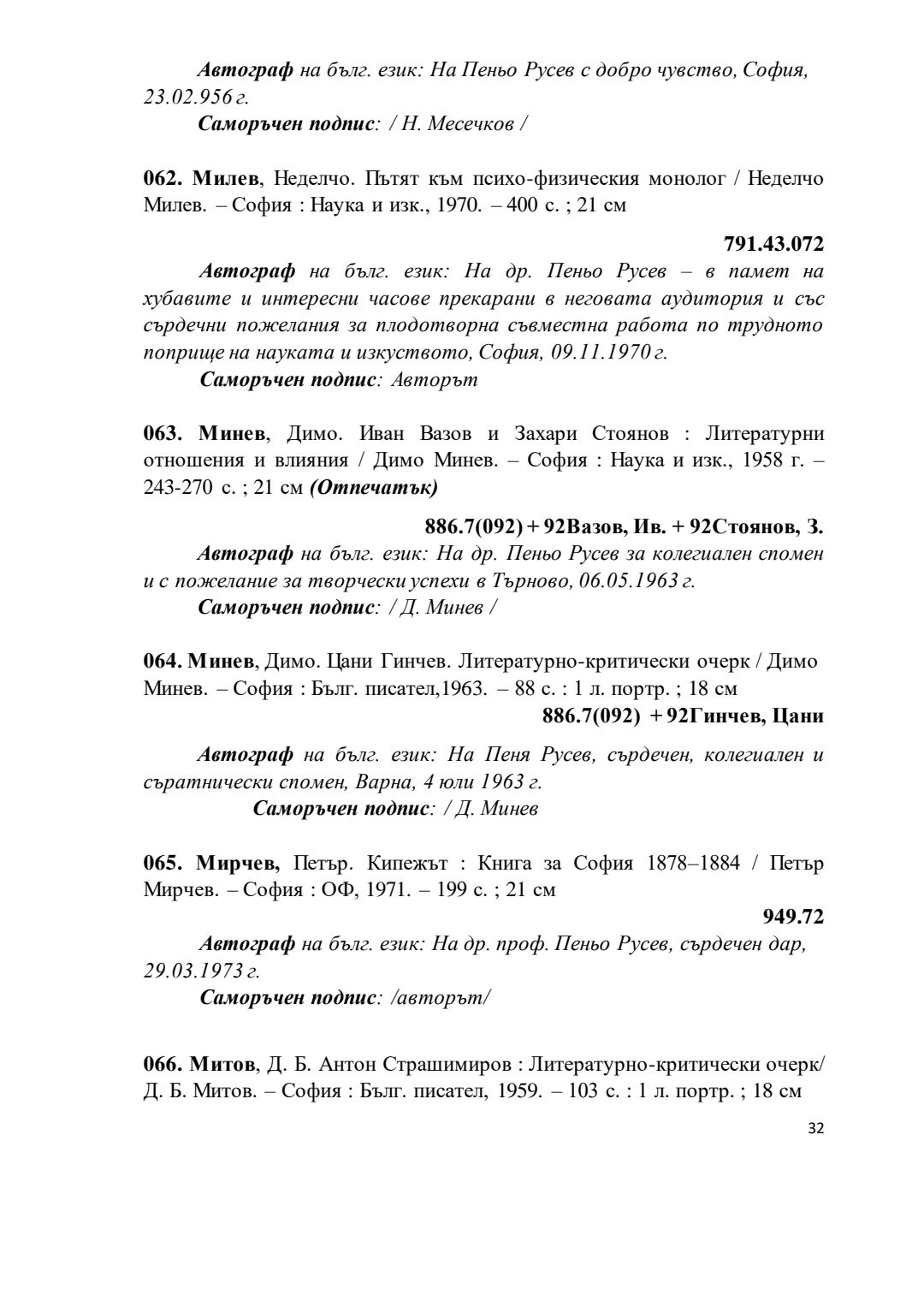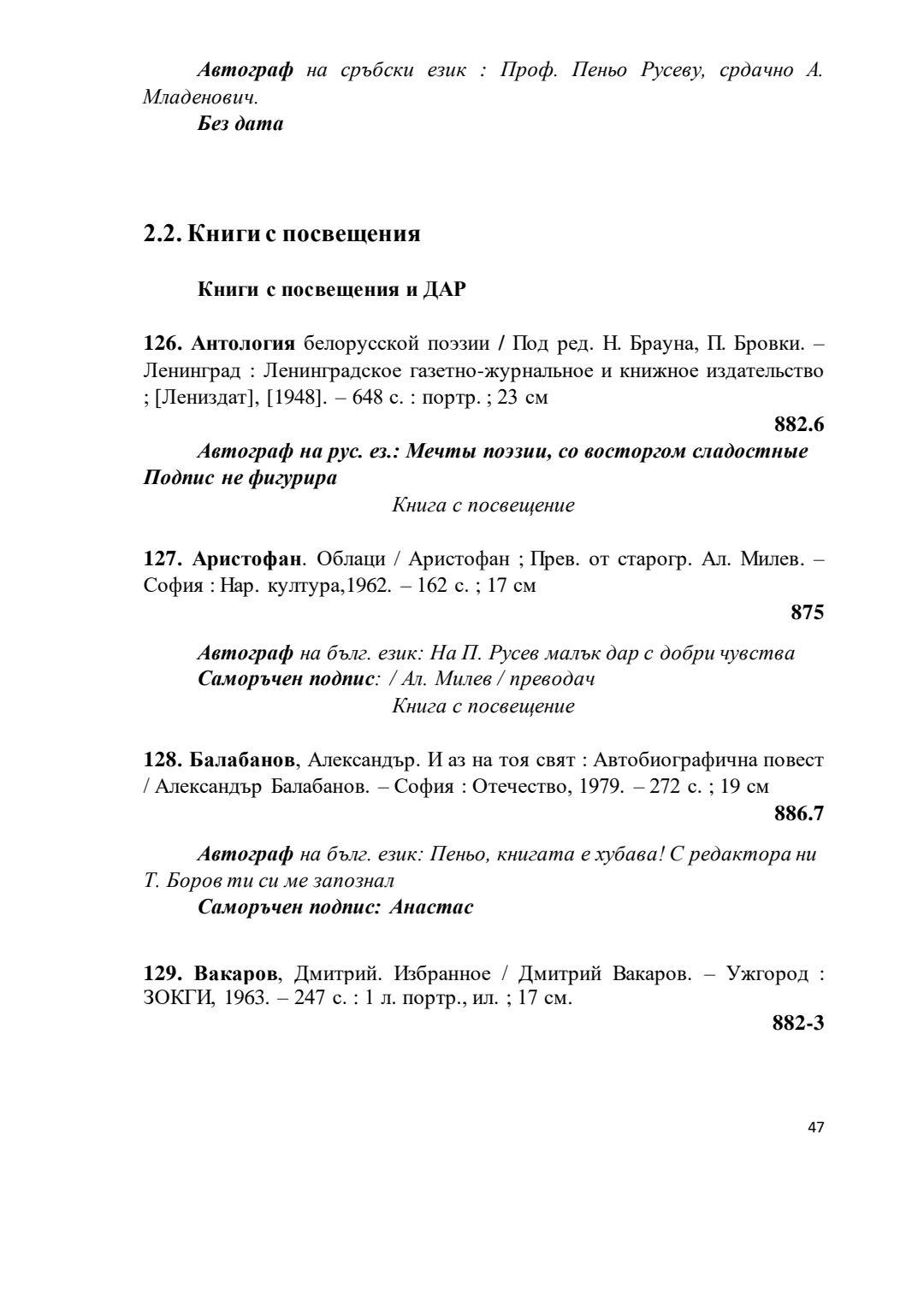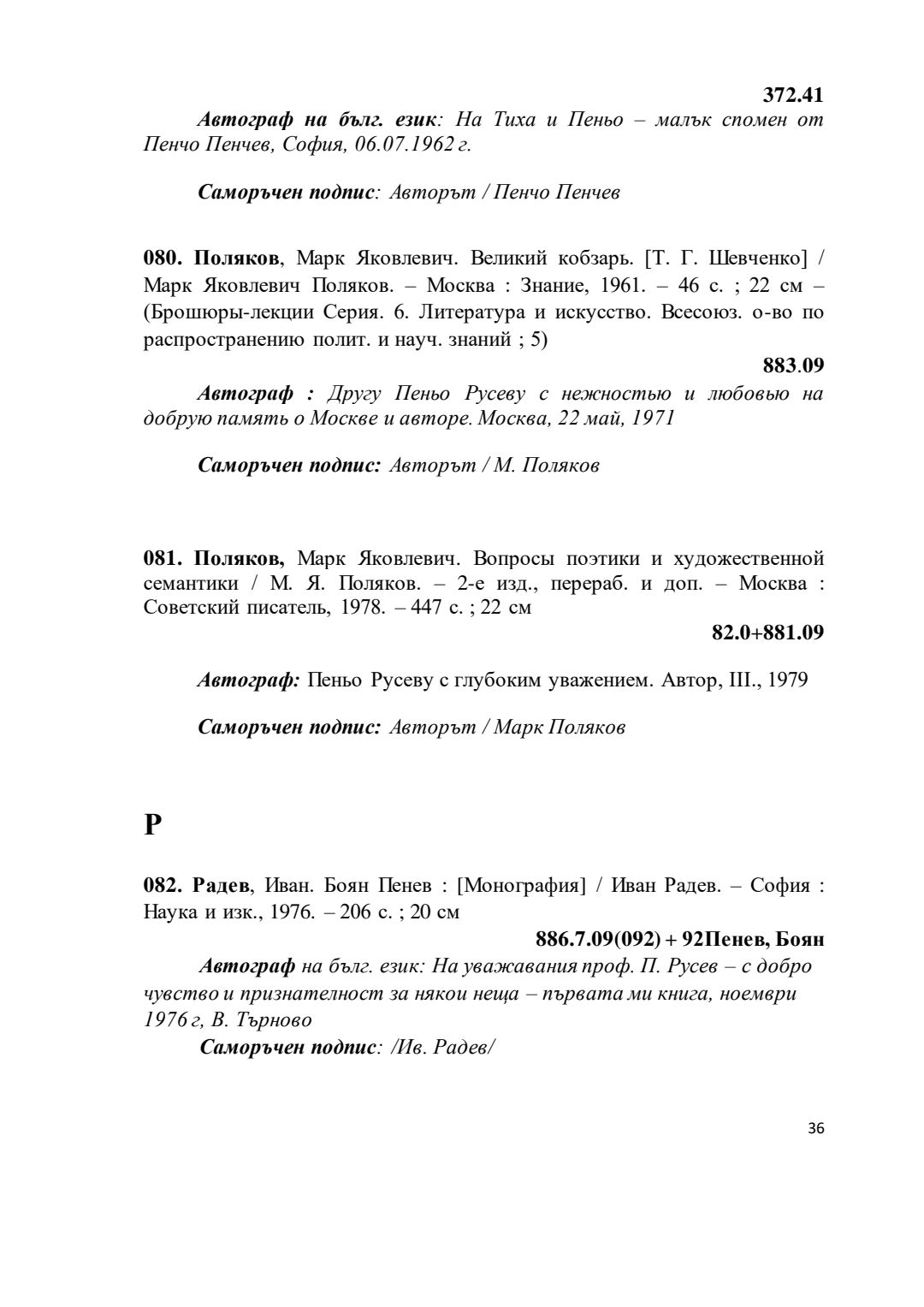 Библиографски указател „Дарствени Надписи“ от колекцията книги на проф. Пеньо Русев