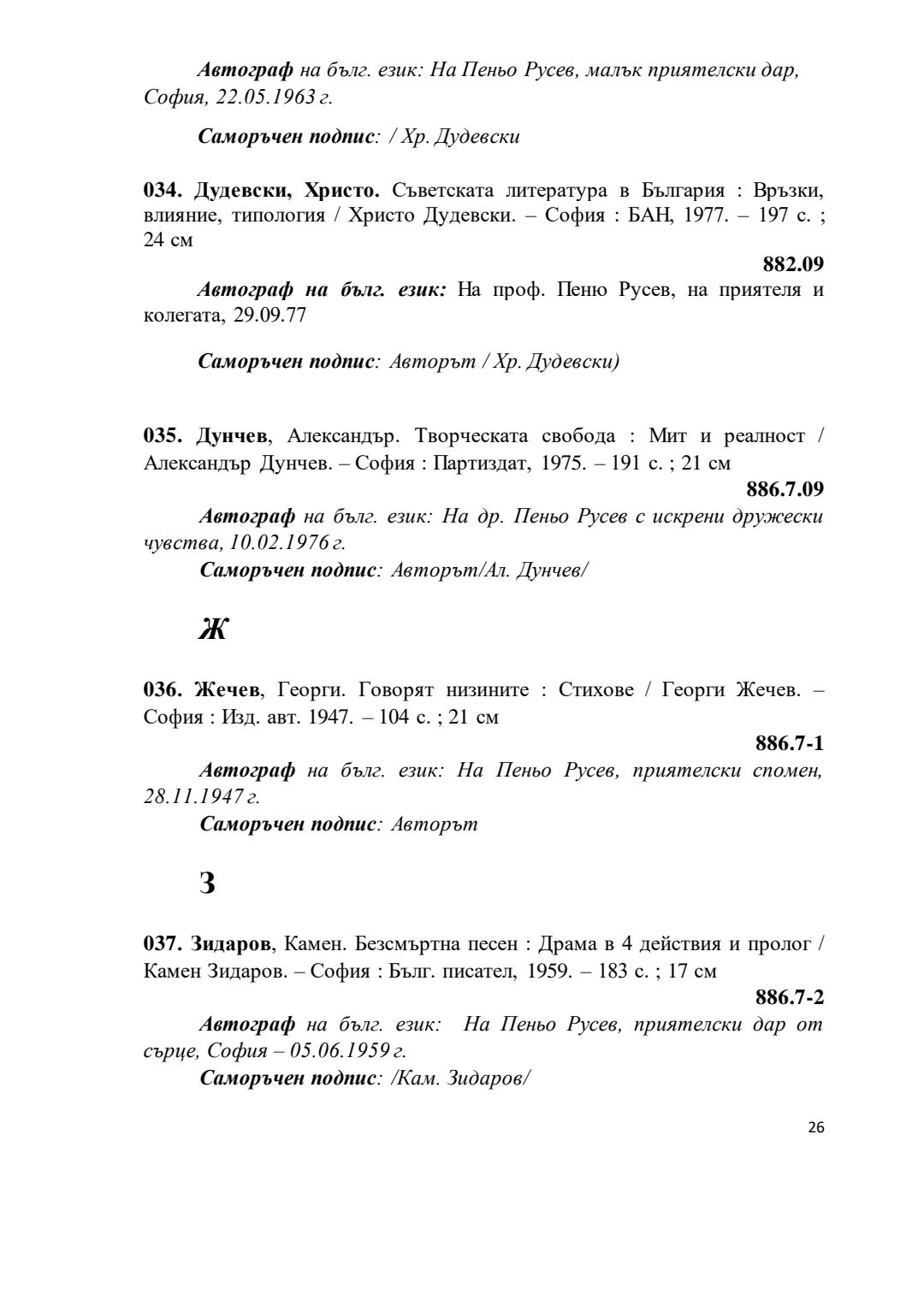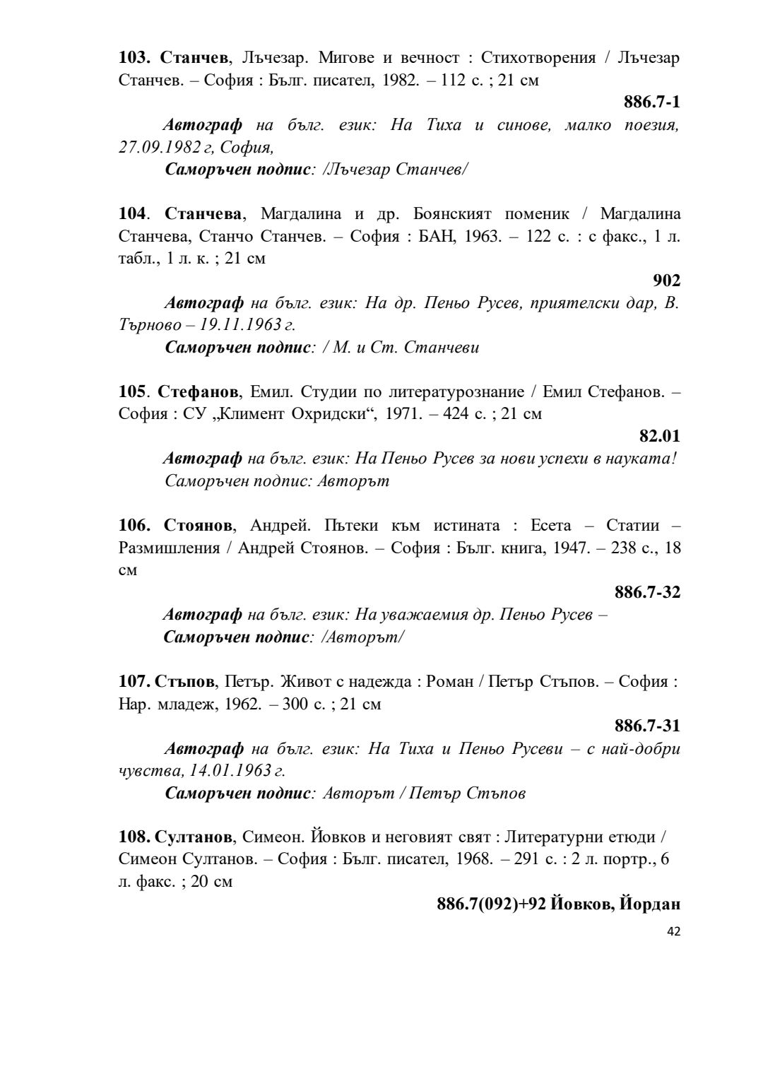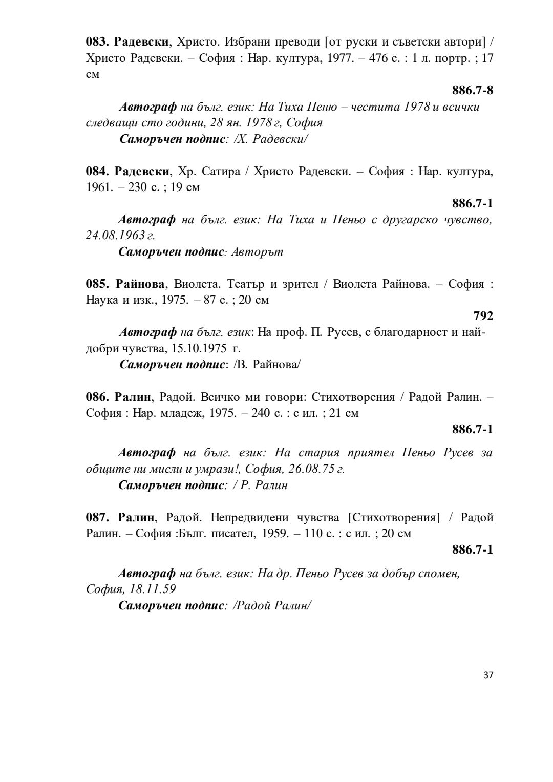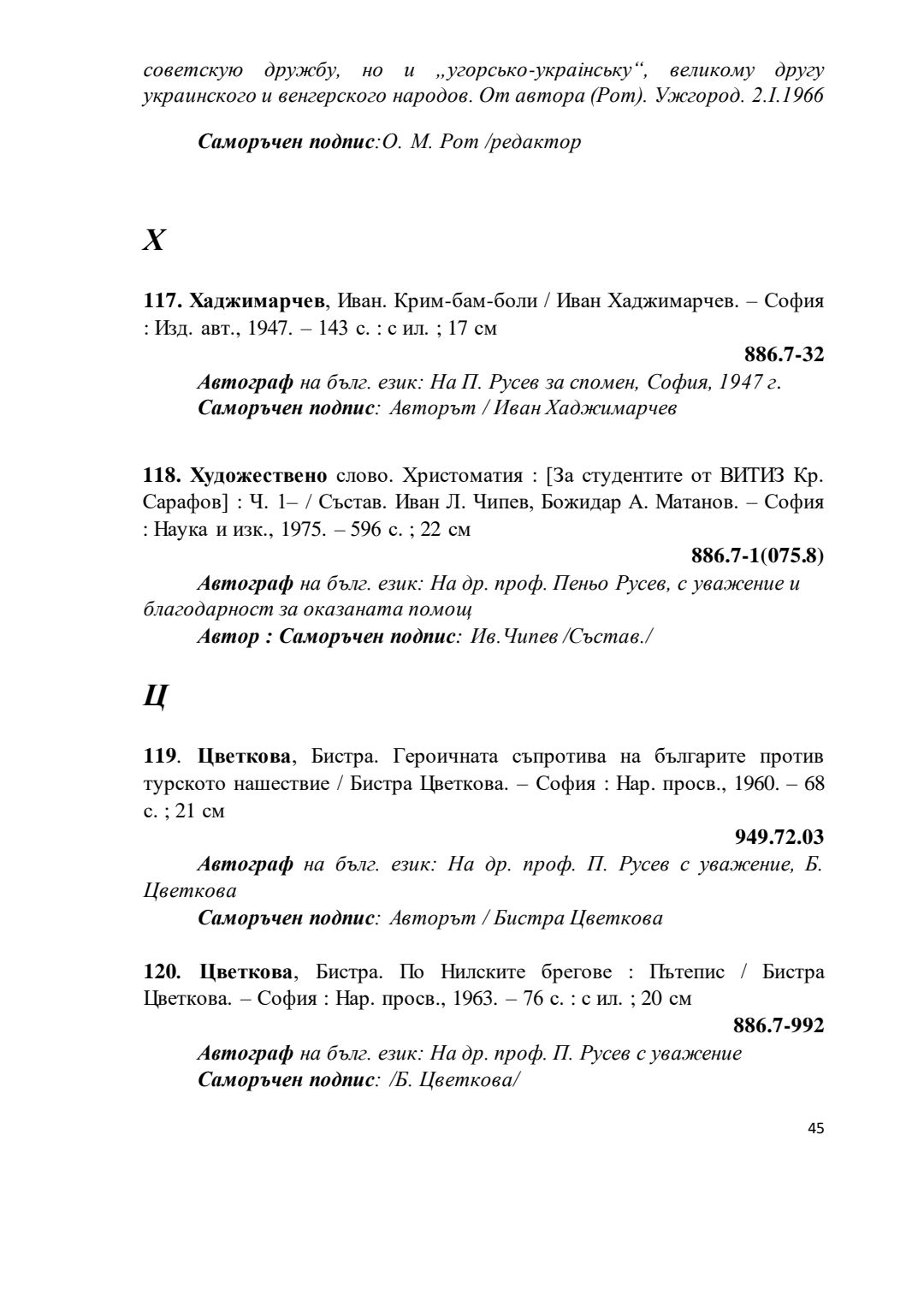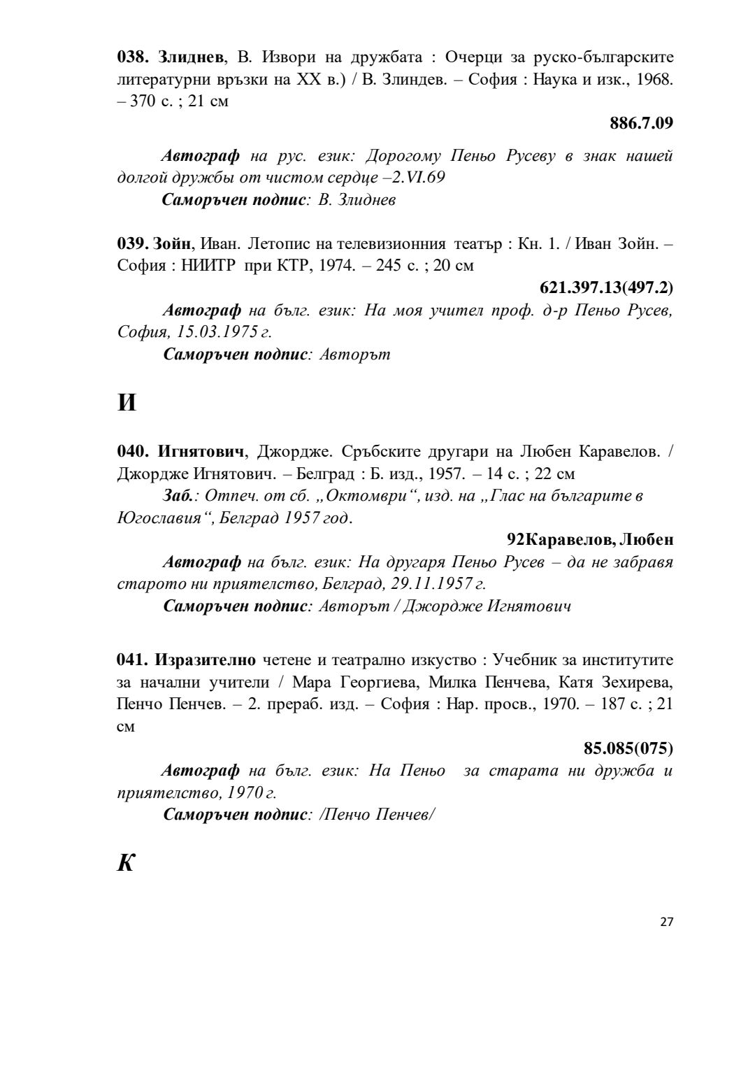 Библиографски указател „Дарствени Надписи“ от колекцията книги на проф. Пеньо Русев