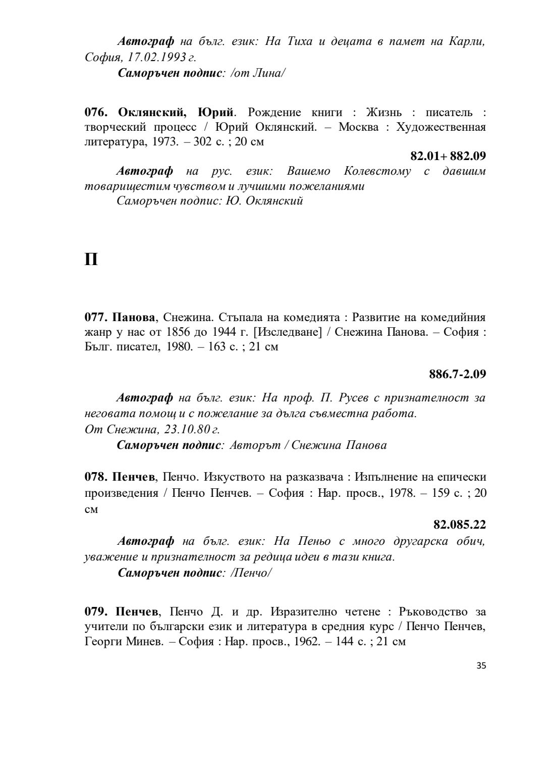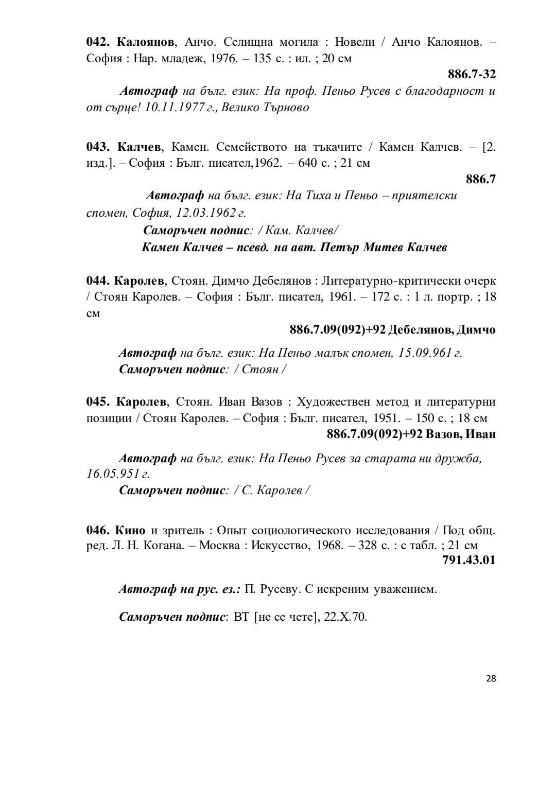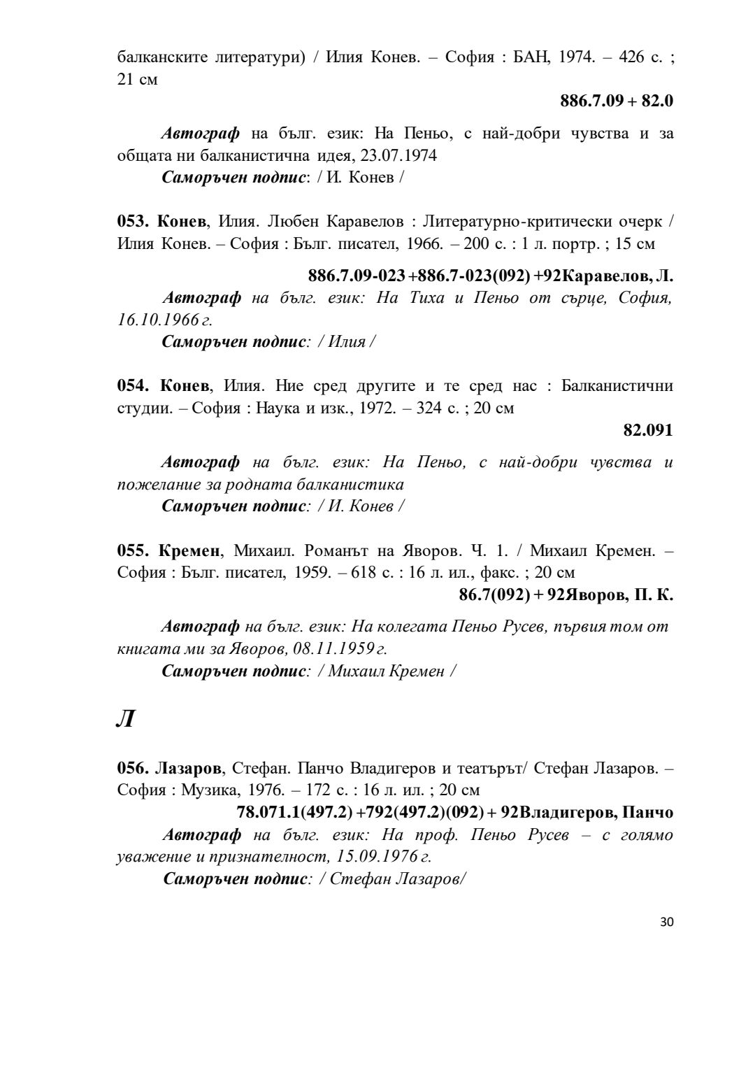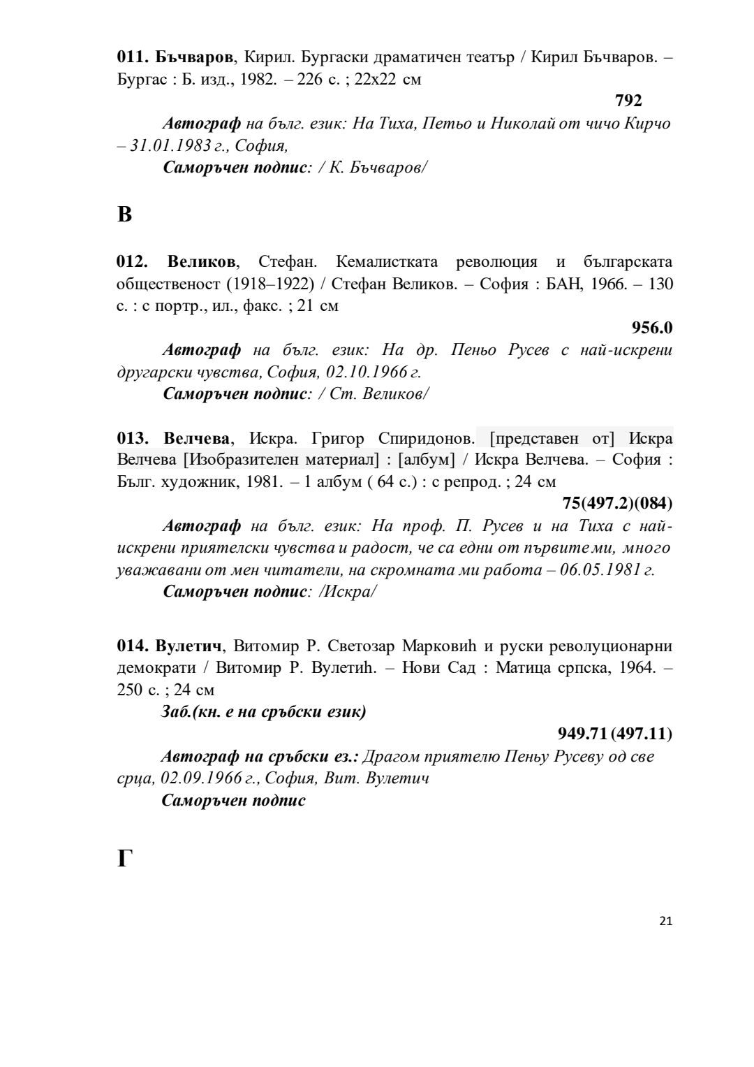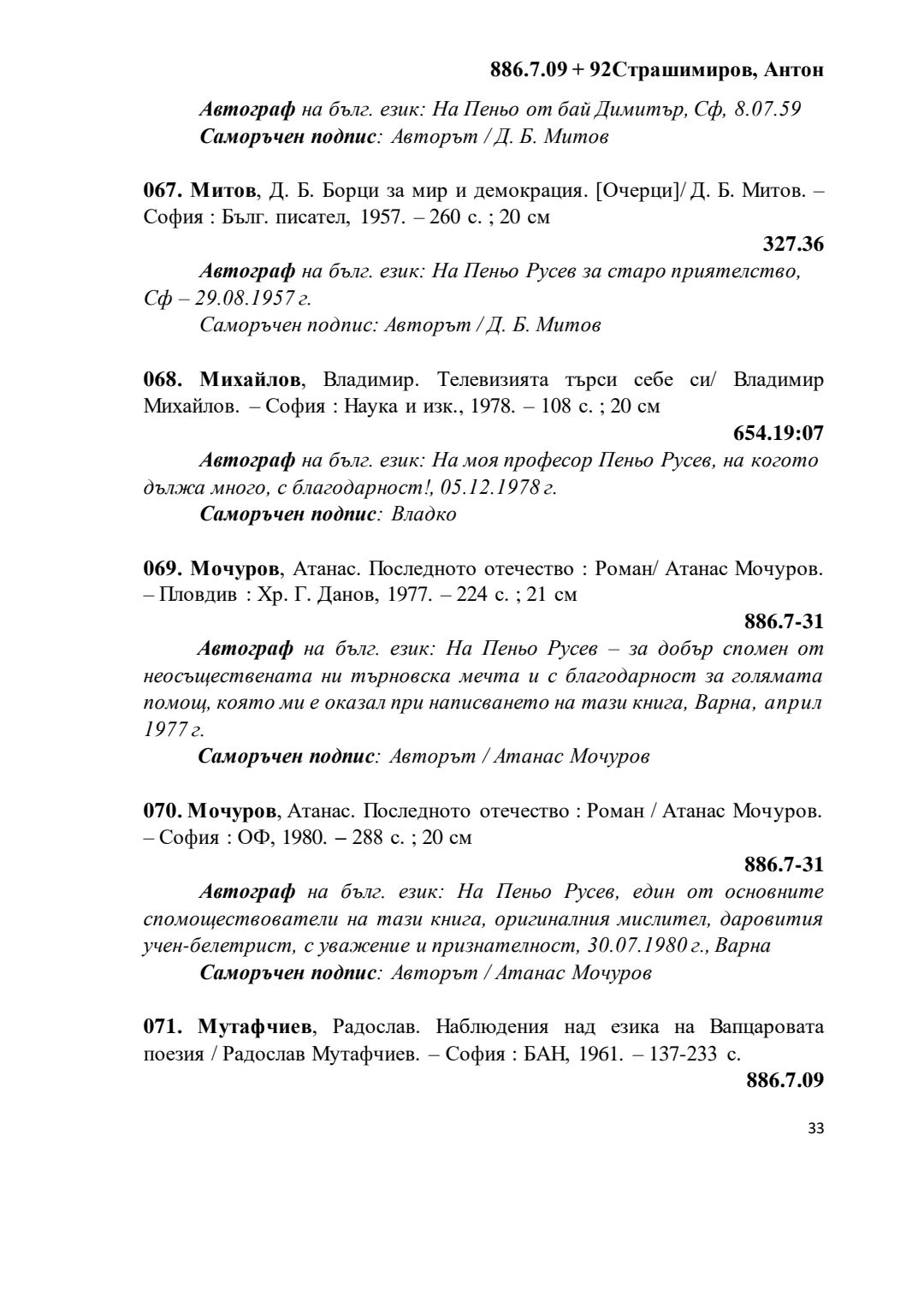 Библиографски указател „Дарствени Надписи“ от колекцията книги на проф. Пеньо Русев