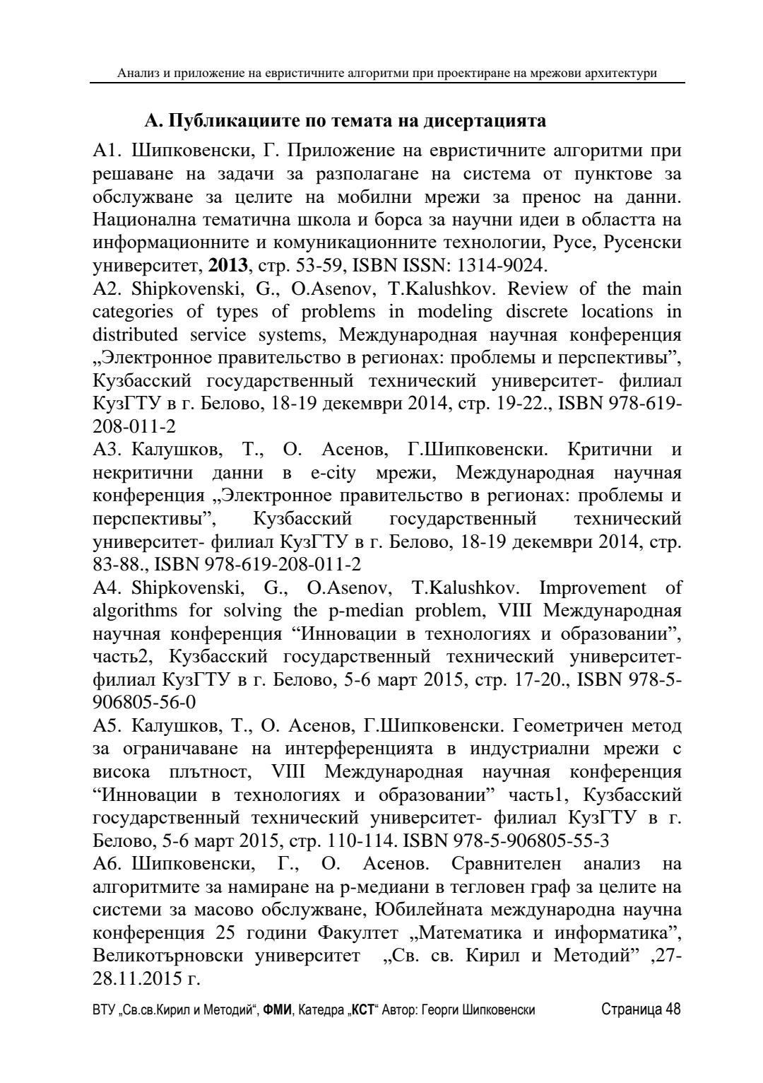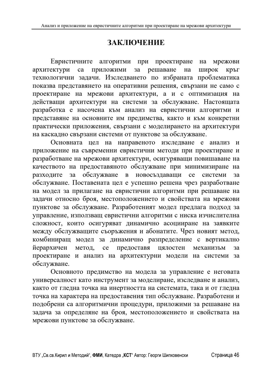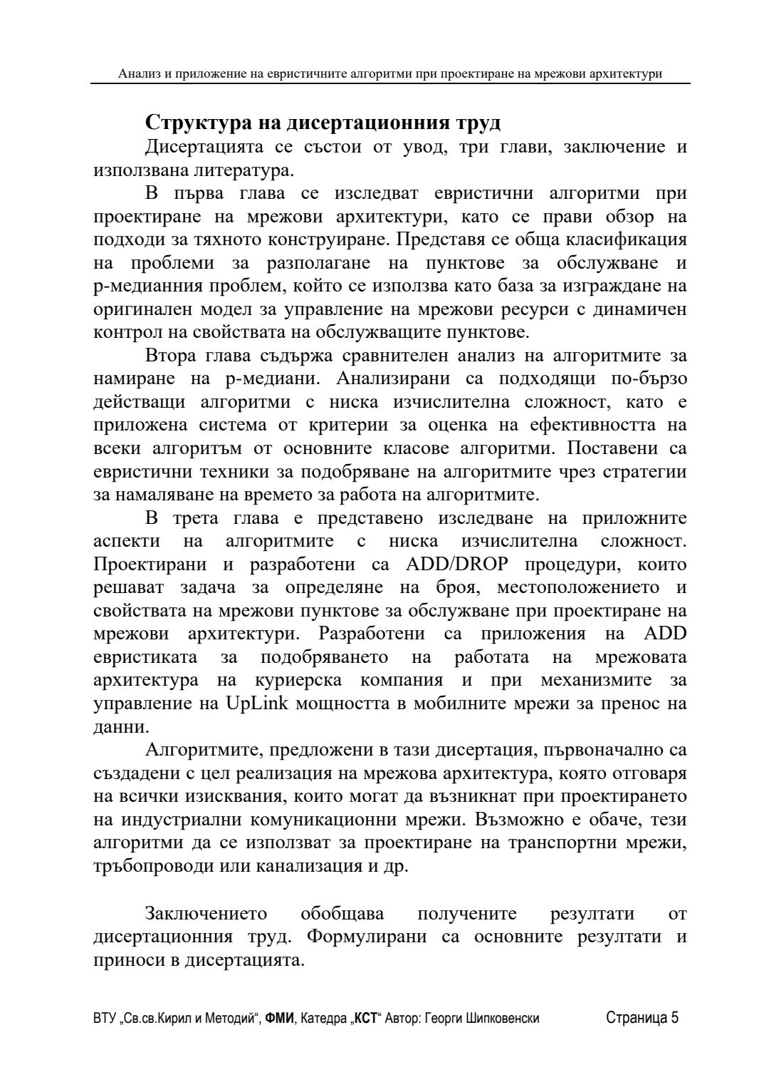Анализ и приложение на евристичните алгоритми при проектиране на мрежови архитектури : Автореферат / Георги Шипковенски ; Науч. ръководител Олег Асенов