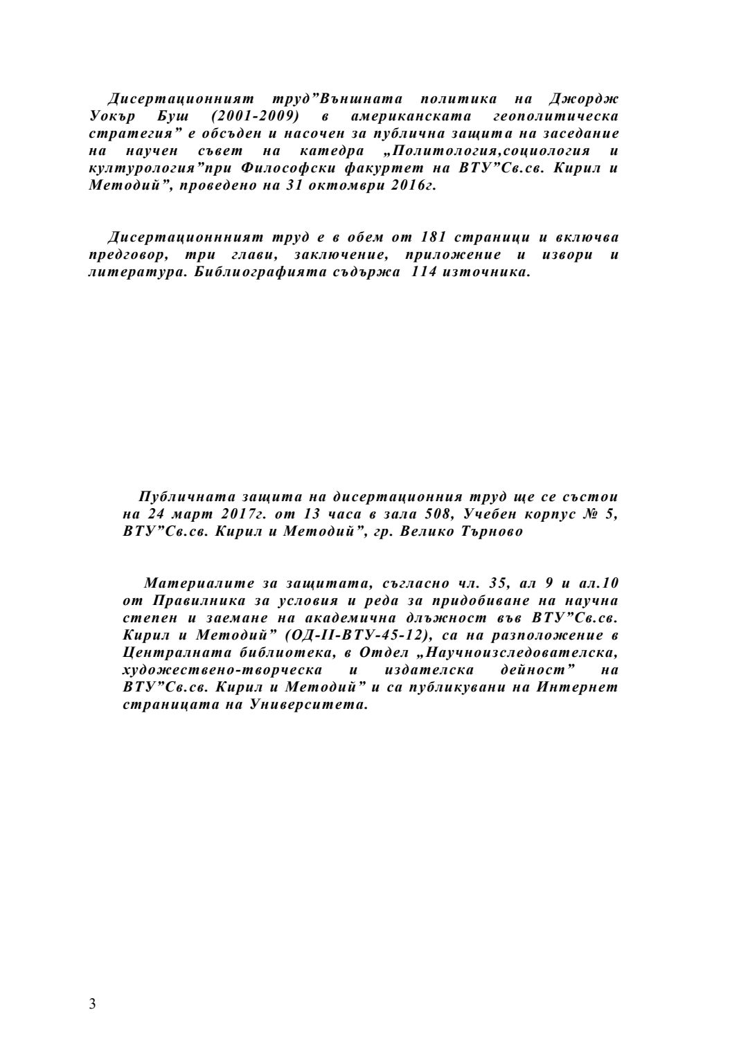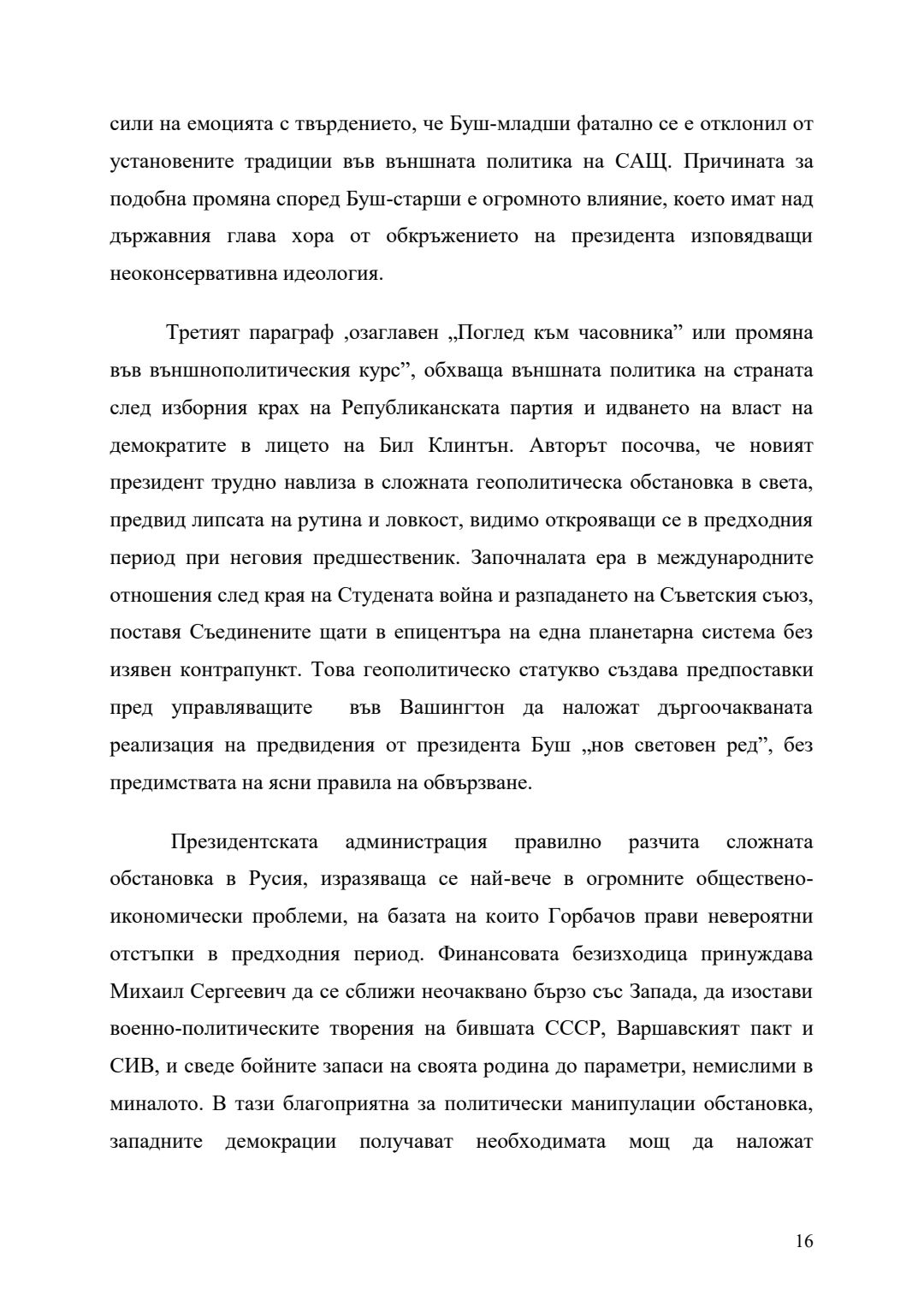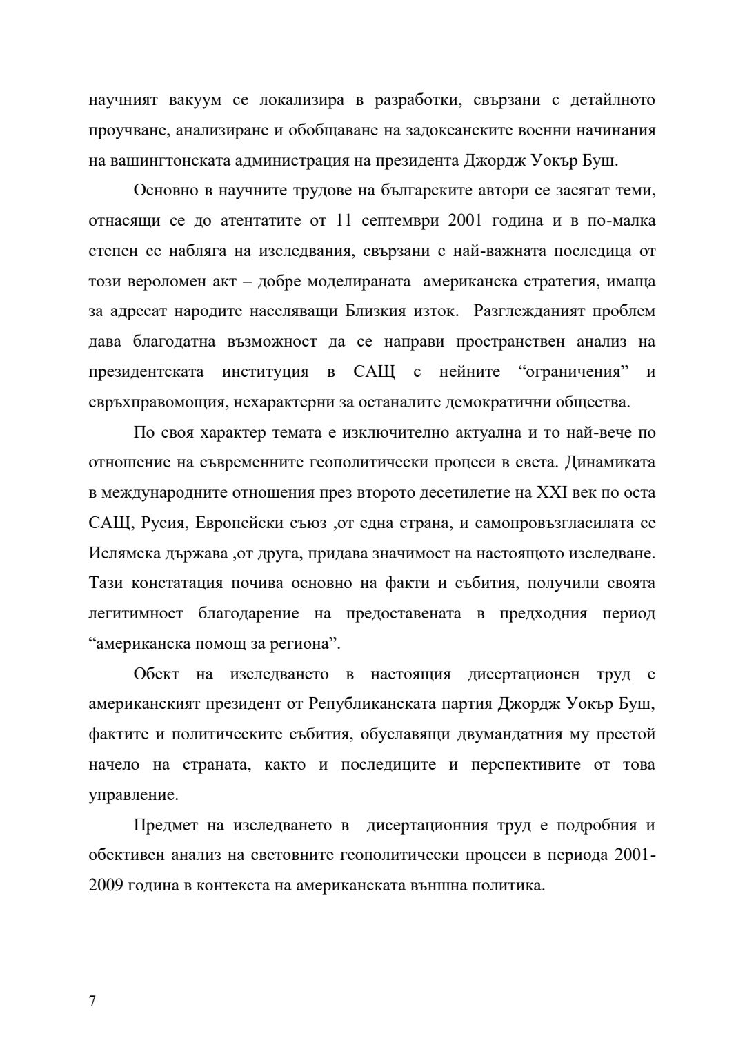 Външната политика на Джордж Уокър Буш (2001-2009) в американската геополитическа стратегия : Автореферат / Георги Йорданов Митев ; Науч. ръководител Ангелина Марковска