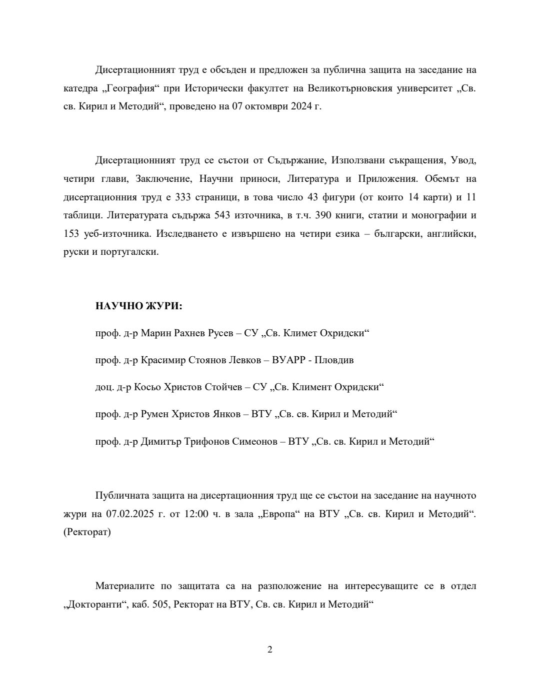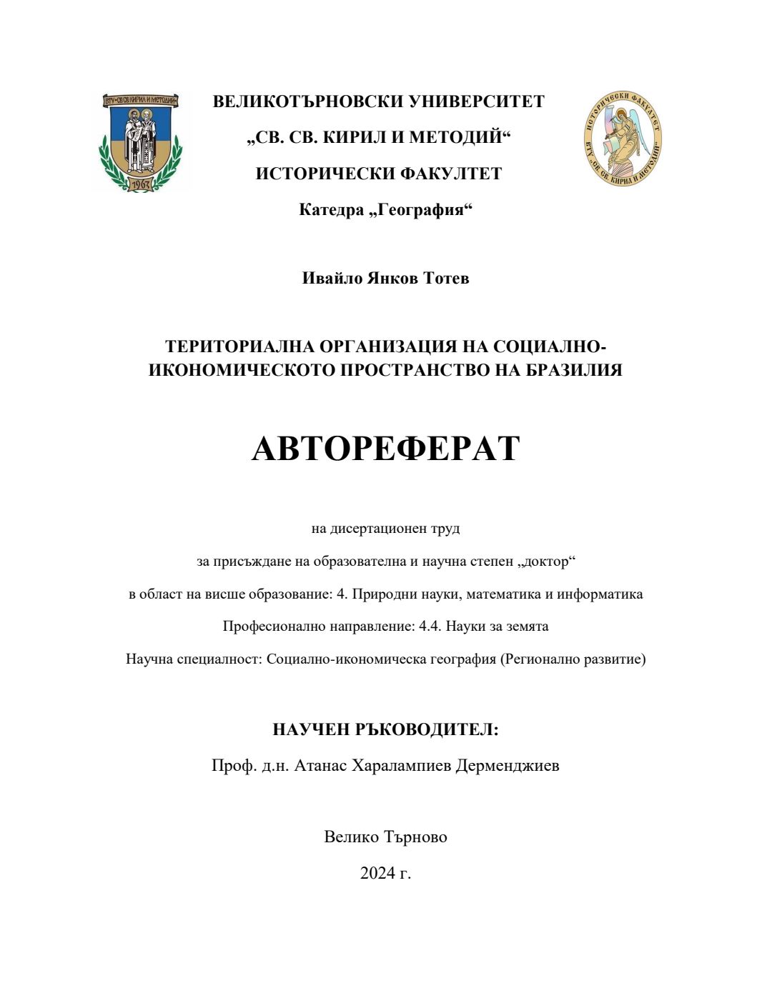 Териториална организация на социално-икономическото пространство на Бразилия : Автореферат / Ивайло Янков Тотев ; Науч. ръководител Атанас Дерменджиев
