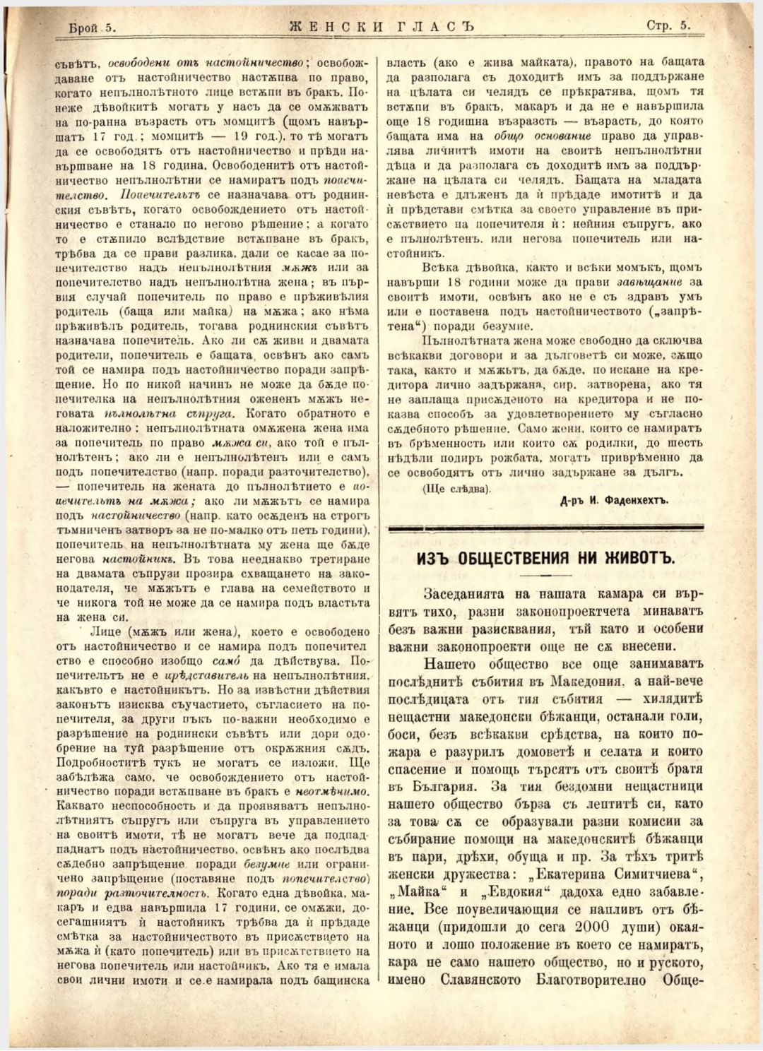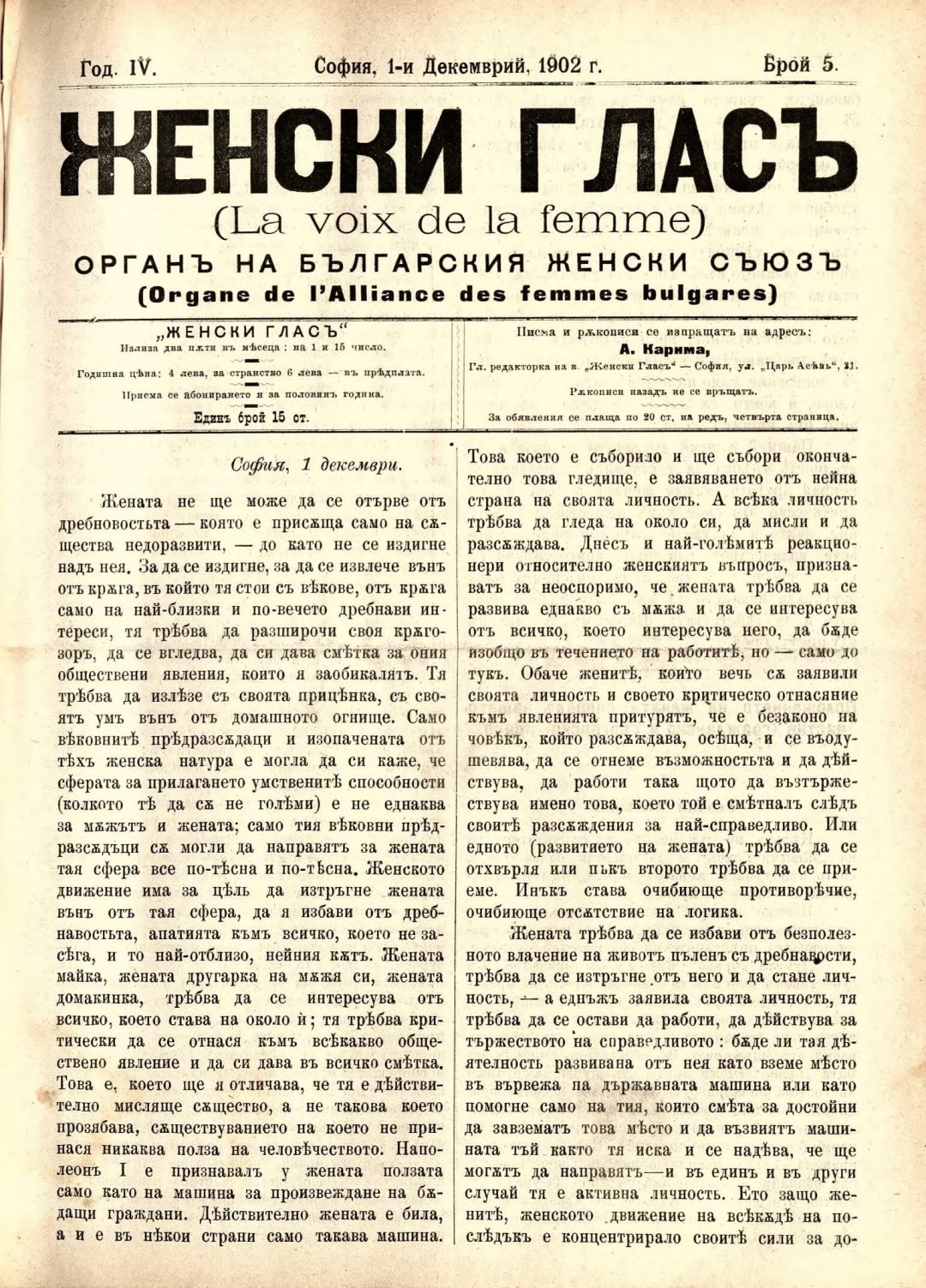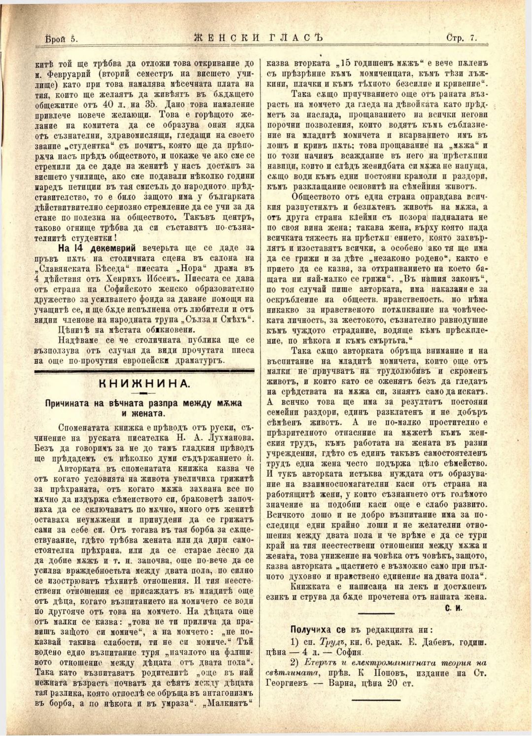Год. 4, № 5 Женски глас : Орган на българския женски съюз