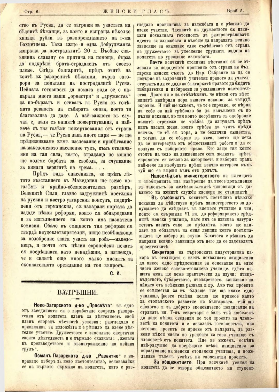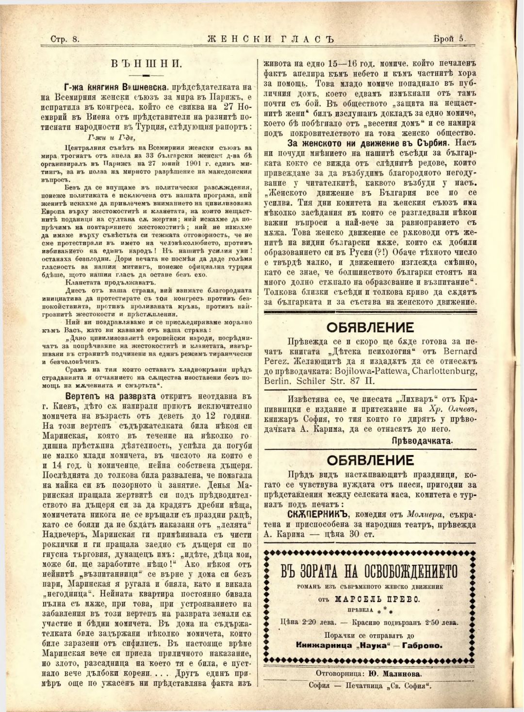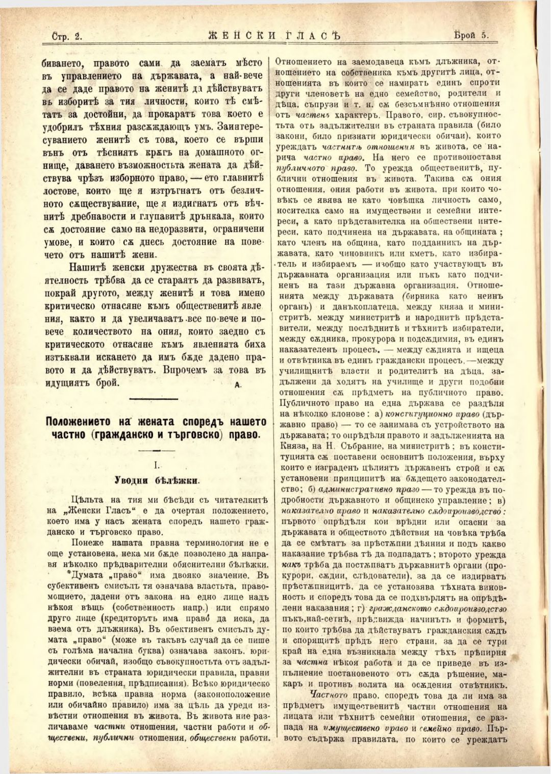Год. 4, № 5 Женски глас : Орган на българския женски съюз