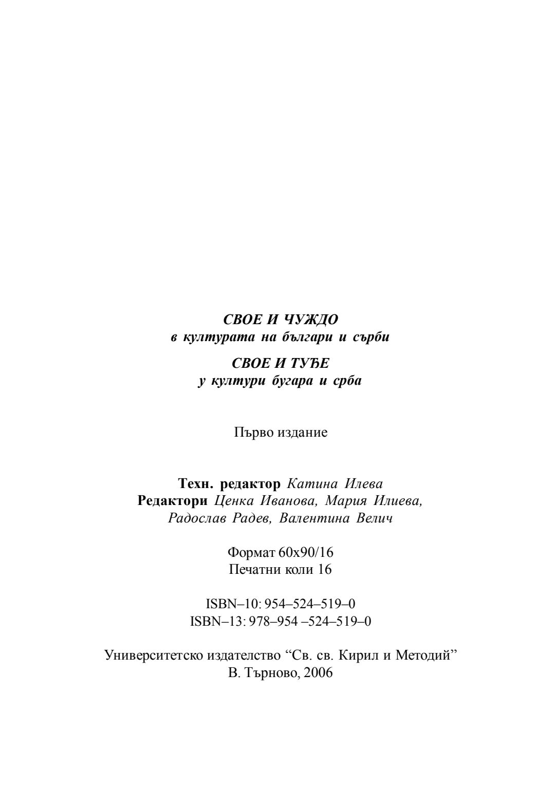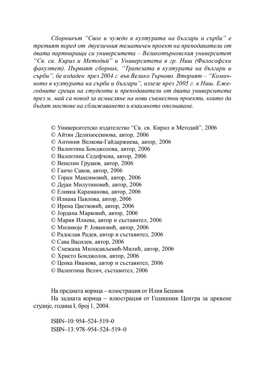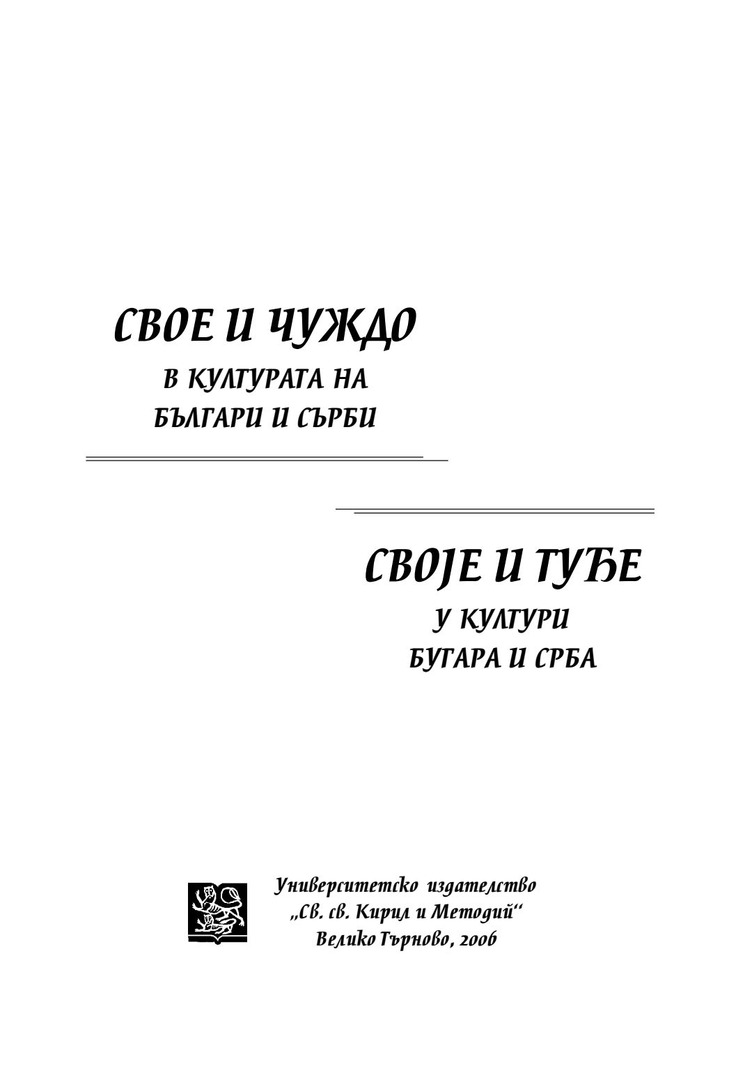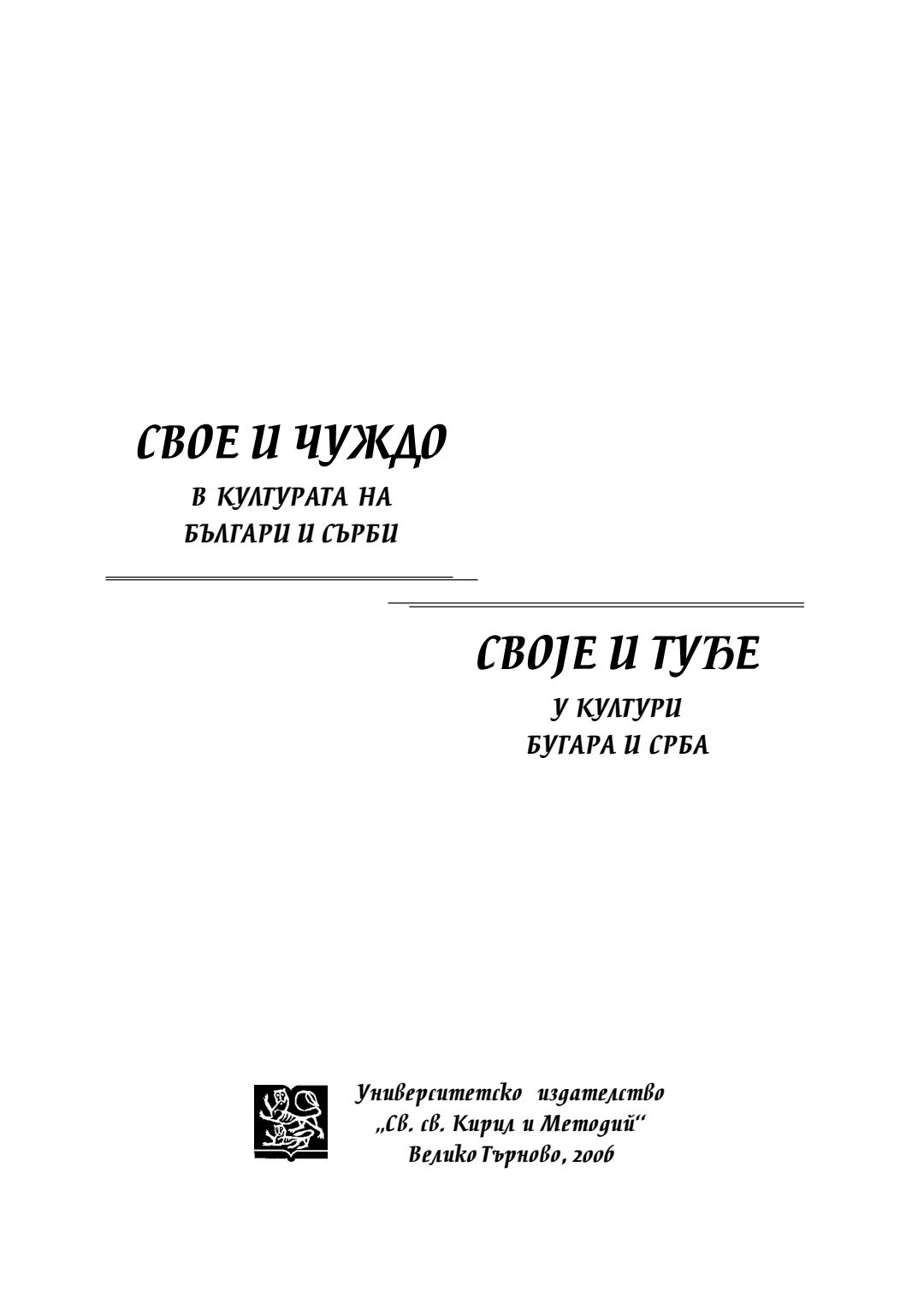 Свое и чуждо в културата на българи и сърби = Своjе и тубе у култури бугара и срба