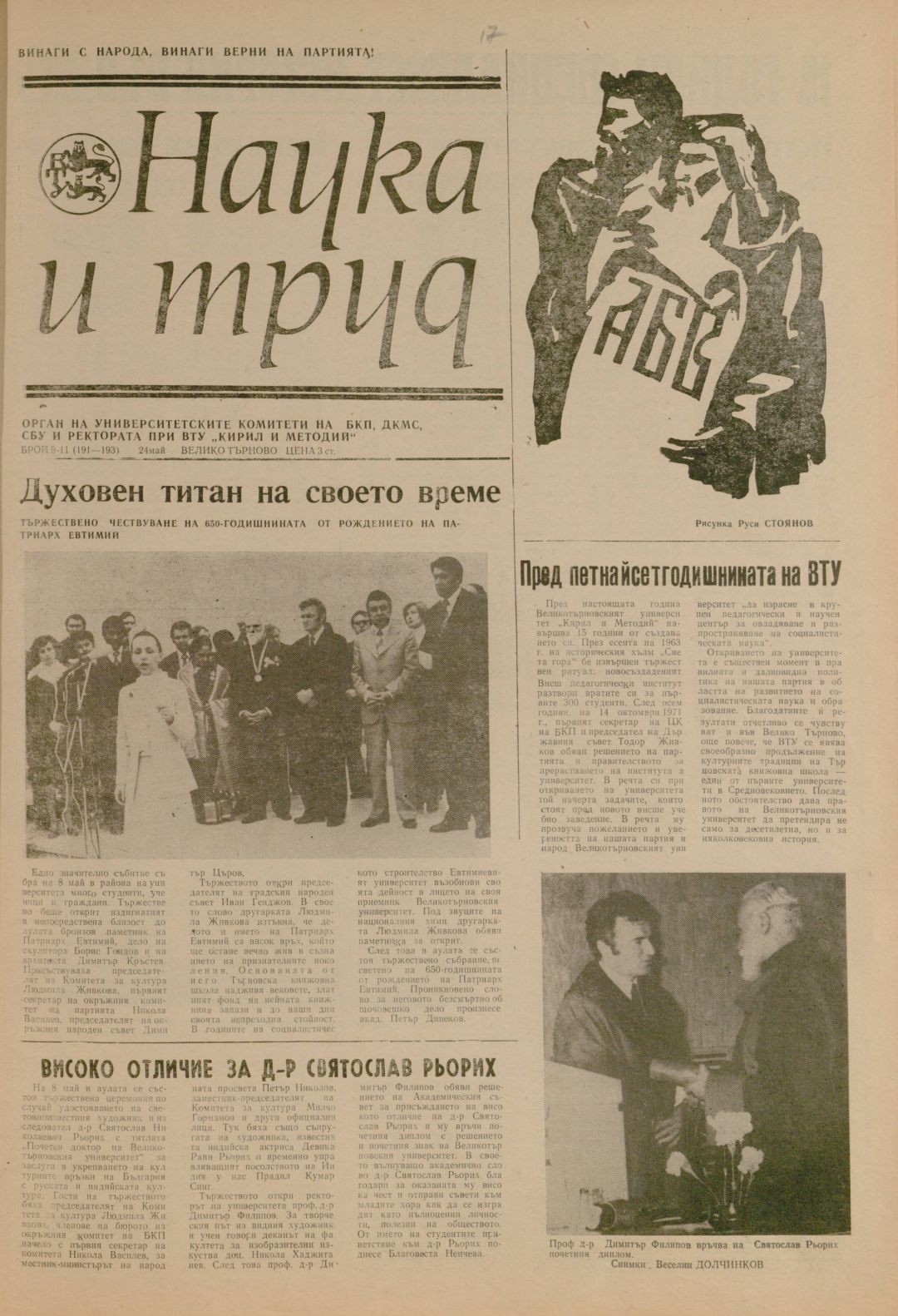Год.17, 9-10-11 (191-192-193). Наука и труд : Орган на университетските организации на БКП, ДКМС, СУ и Ректората при ВПИ "Братя Кирил и Методий"