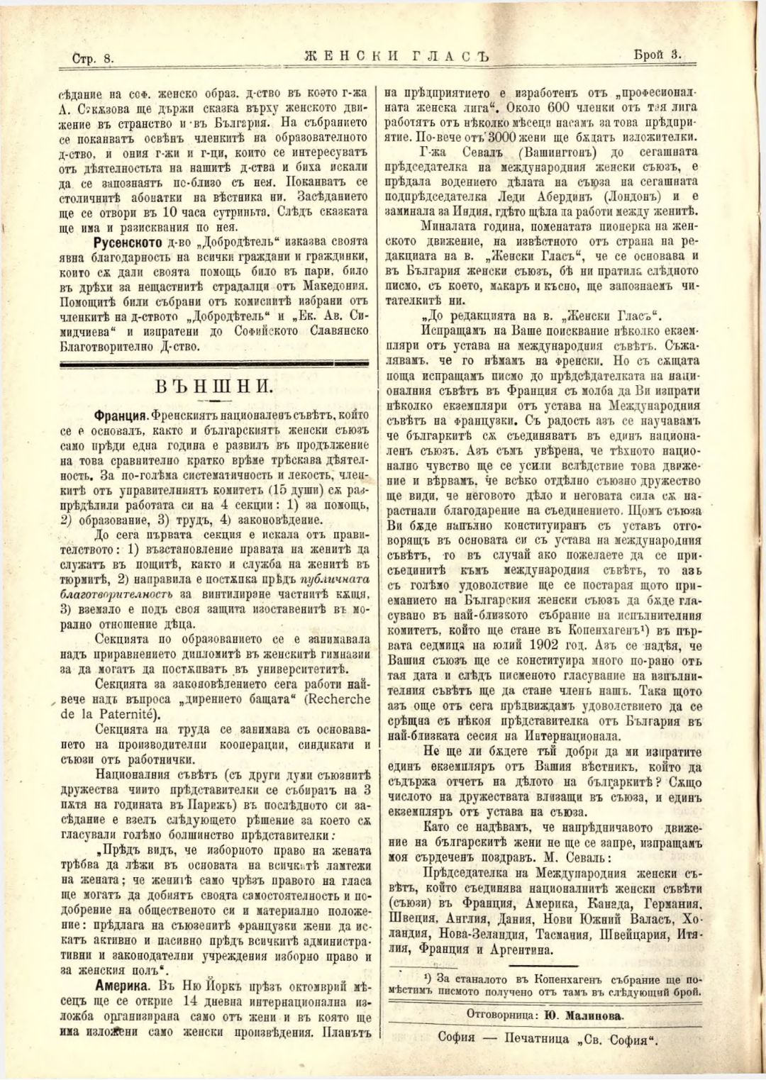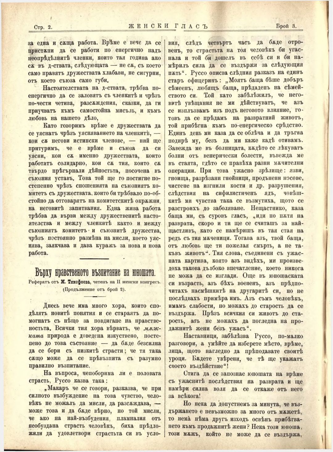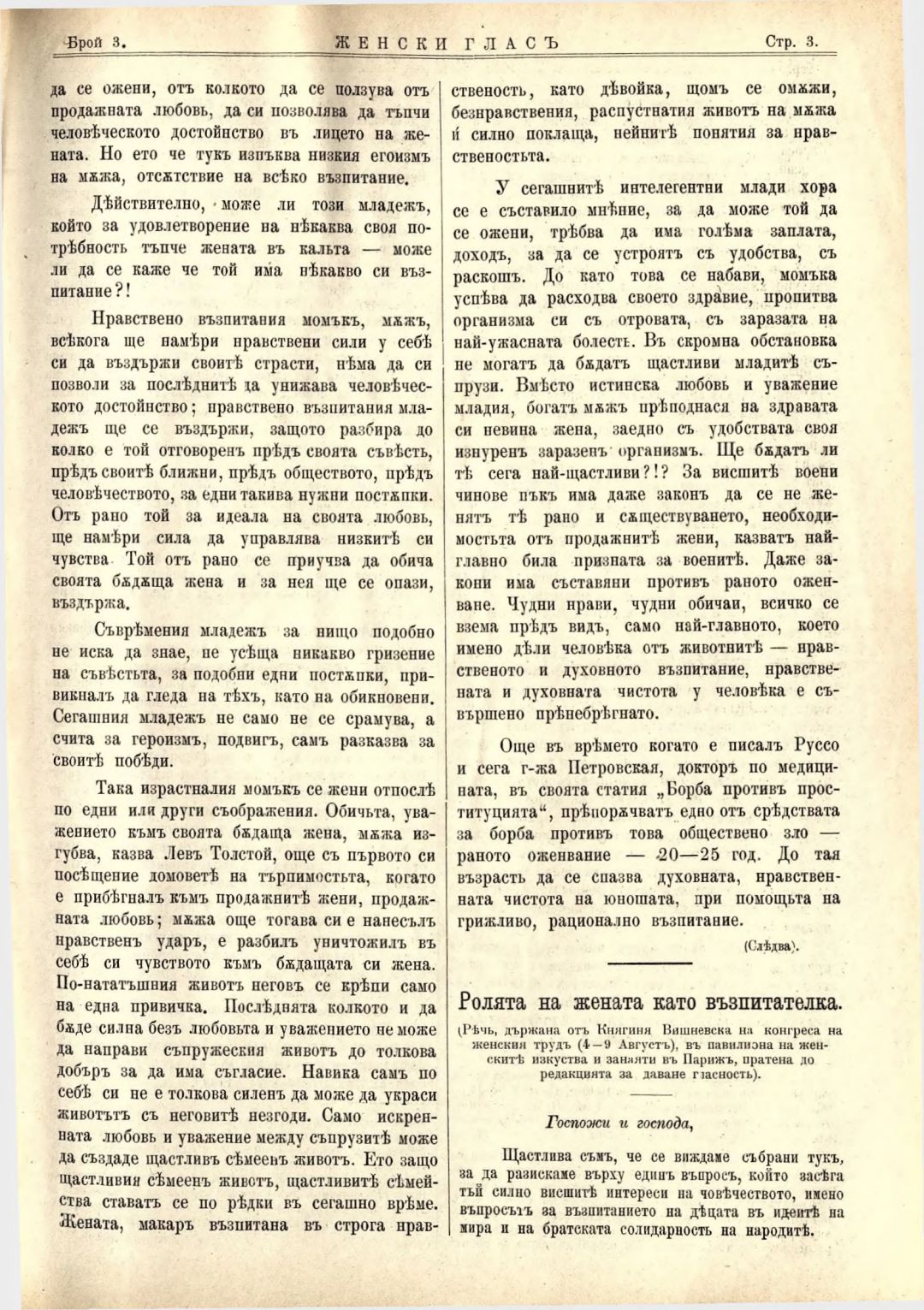 Год. 4, № 3 Женски глас : Орган на българския женски съюз