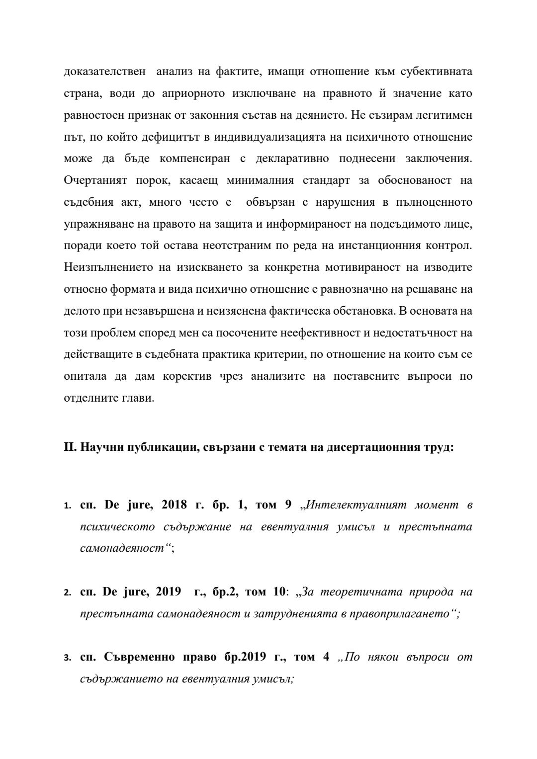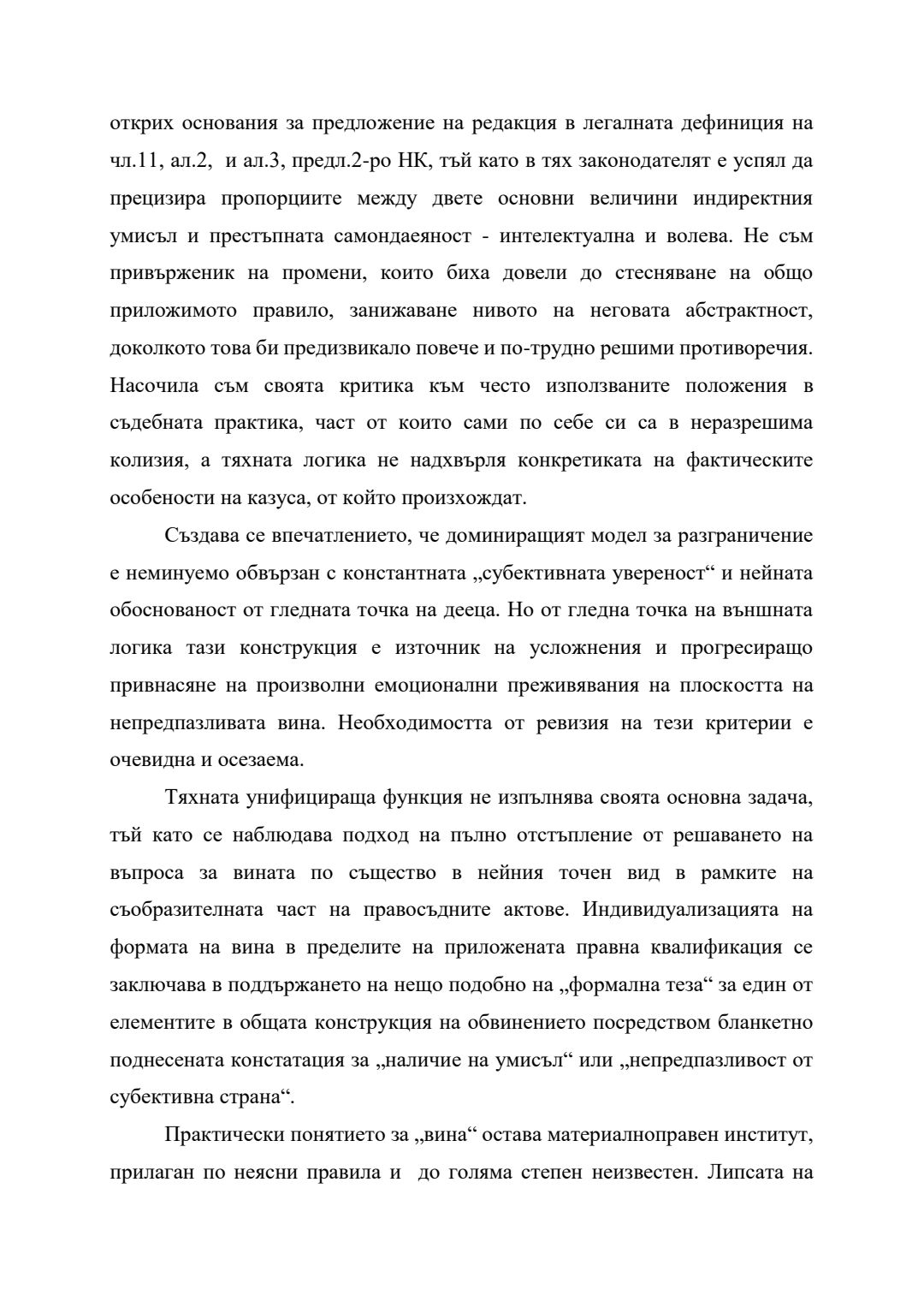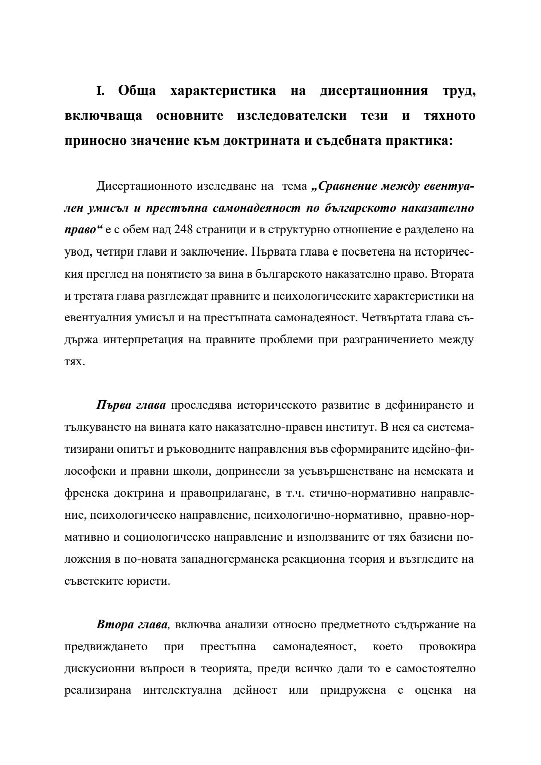 Сравнение между евентуален умисъл и престъпна самонадеяност по българското наказателно право : Автореферат / Анита Христова Велева ; Науч. ръководител Борис Велчев