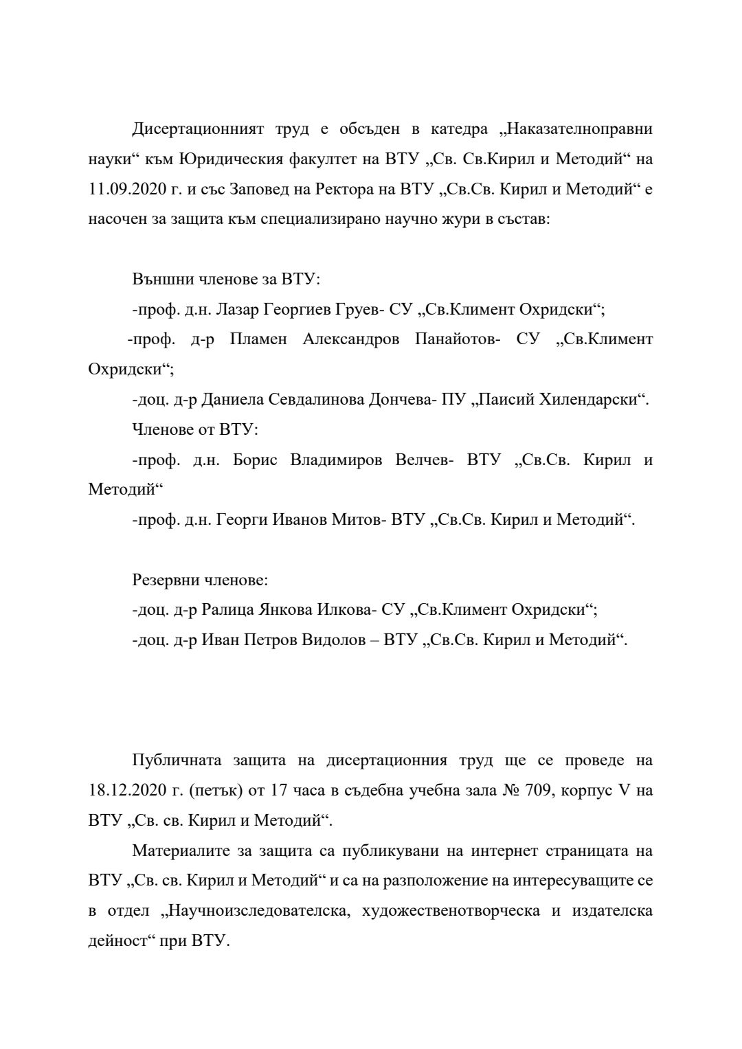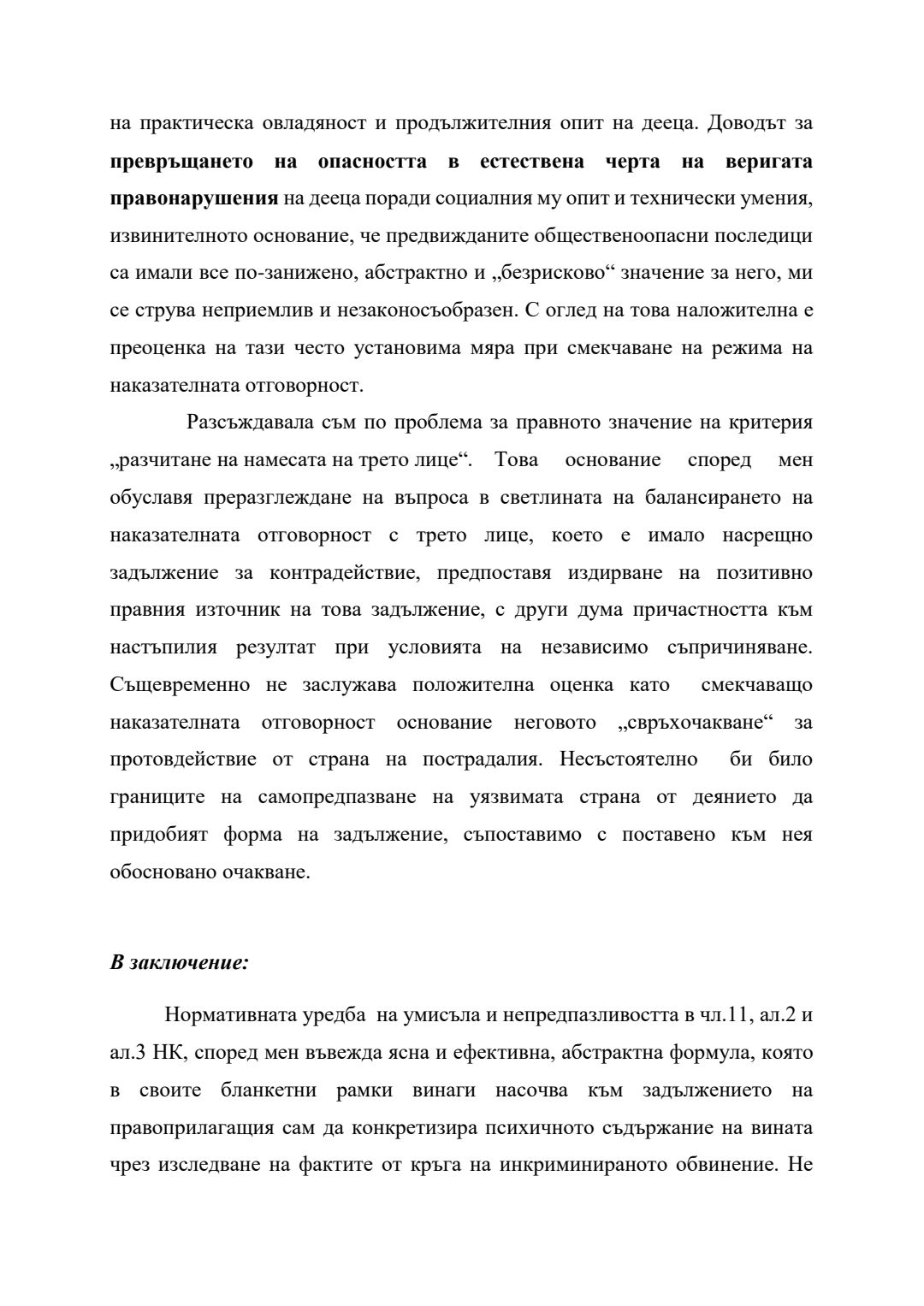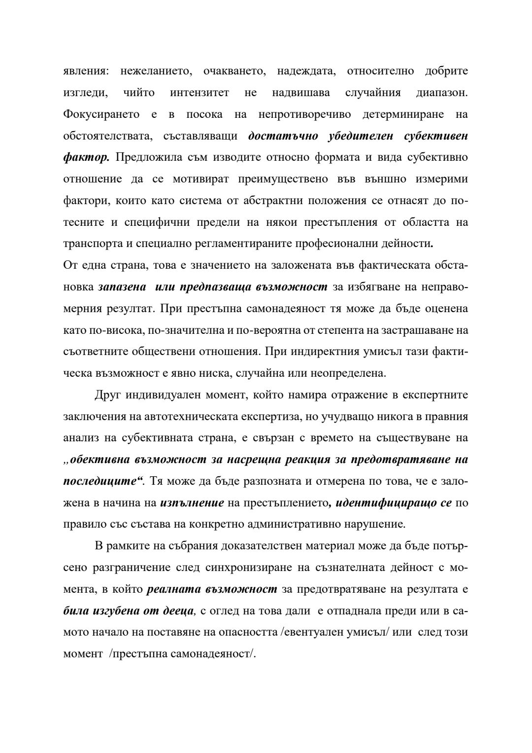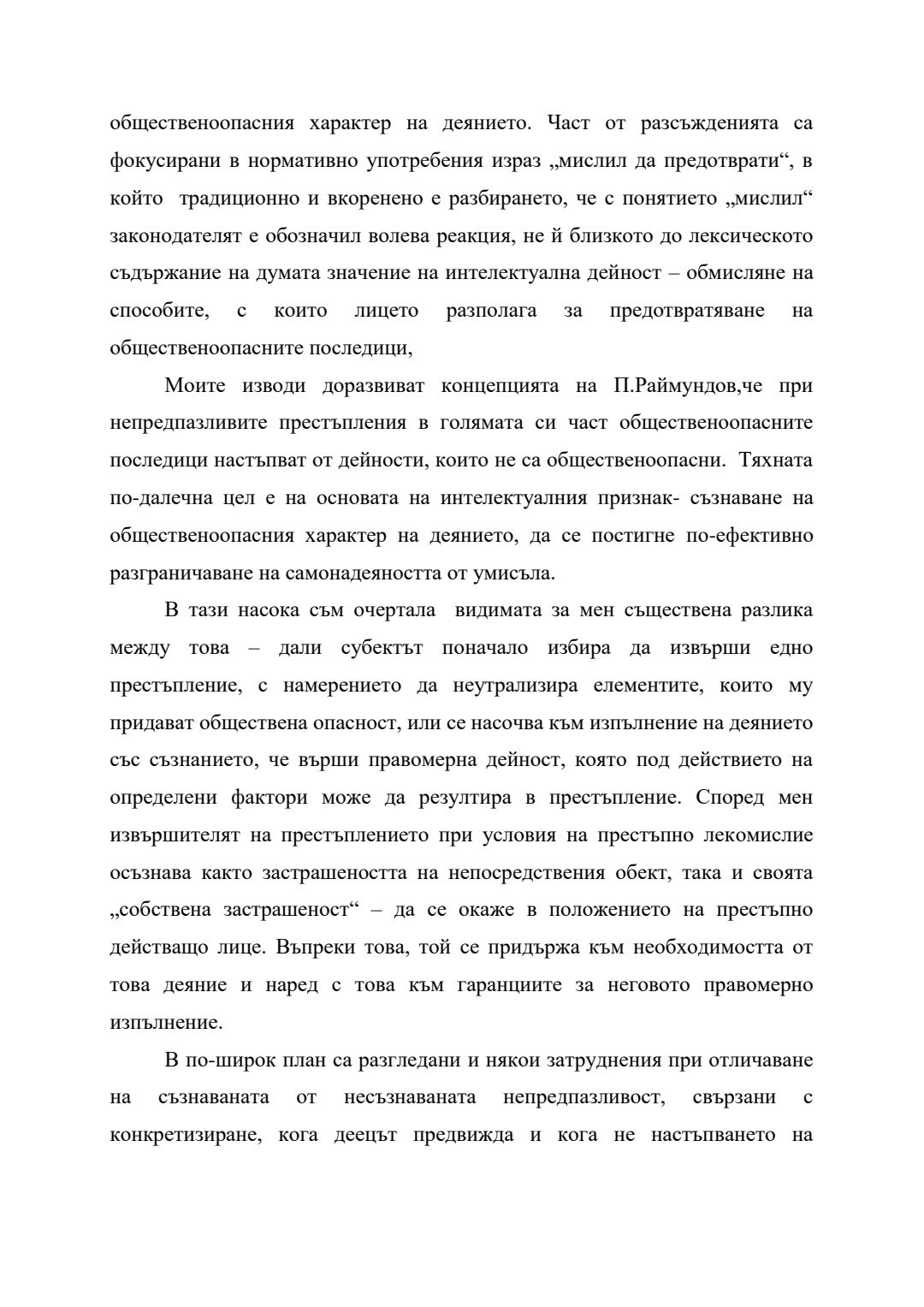 Сравнение между евентуален умисъл и престъпна самонадеяност по българското наказателно право : Автореферат / Анита Христова Велева ; Науч. ръководител Борис Велчев