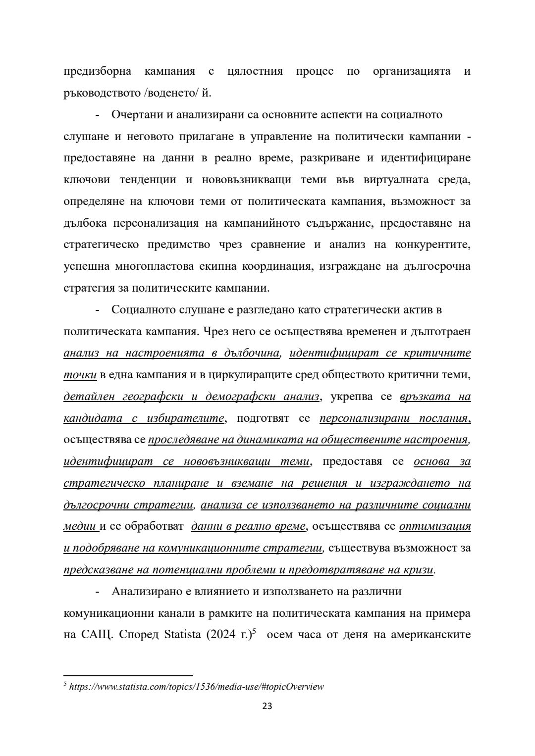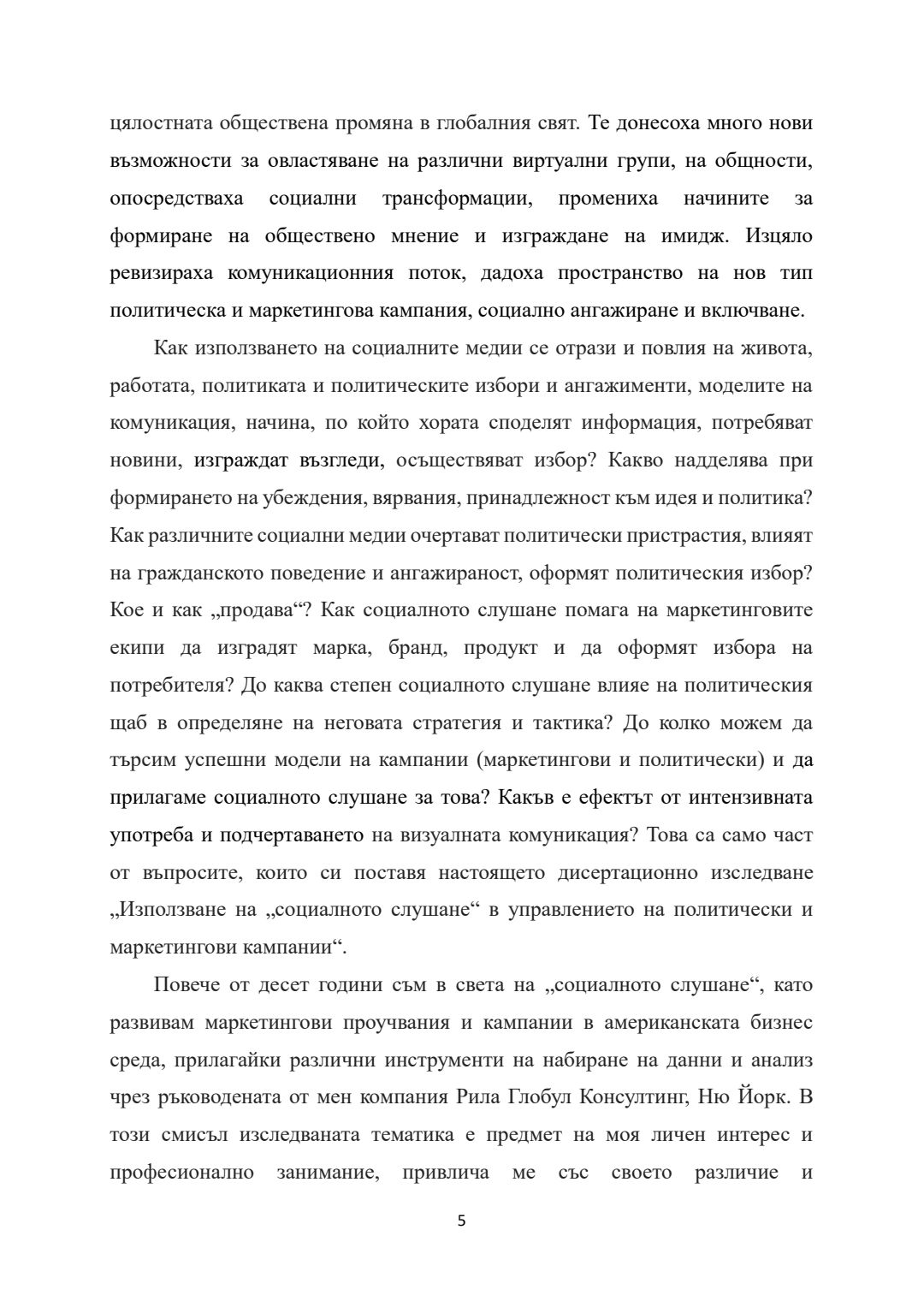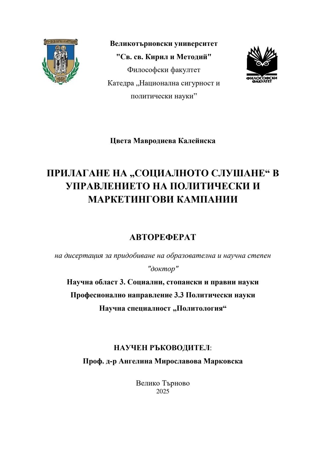 Прилагане на „социалното слушане“ в управлението на политически и маркетингови кампании : Автореферат / Цвета Мавродиева Калейнска ; Науч. ръководител Ангелина Марковска