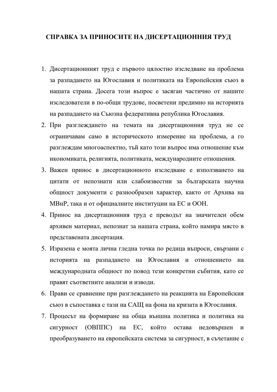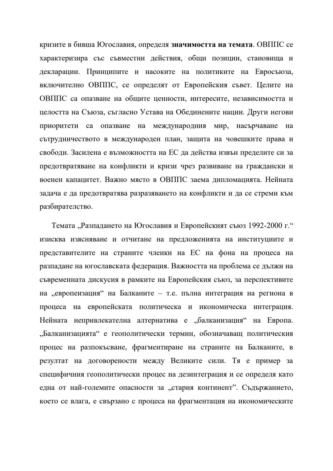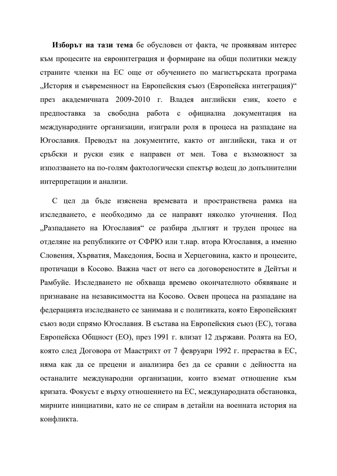 Разпадането на Югославия и Европейският съюз 1992–2000 г. : Автореферат / Катина Звезделинова Димитрова ; Науч. ръководител Стефан Иванов Анчев