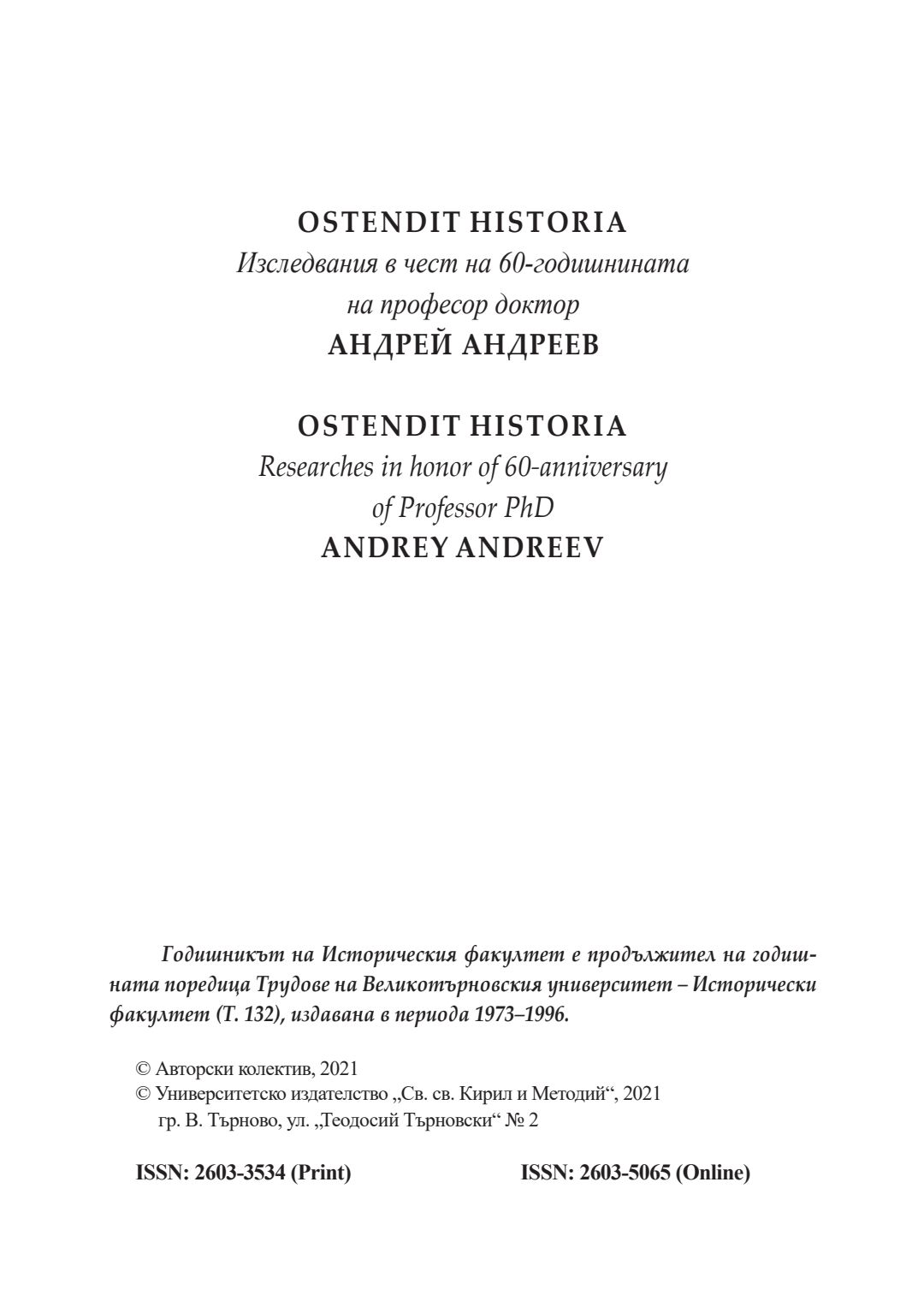 Ostendit historia. Изследвания в чест на 60-годишнината на професор доктор Андрей Андреев