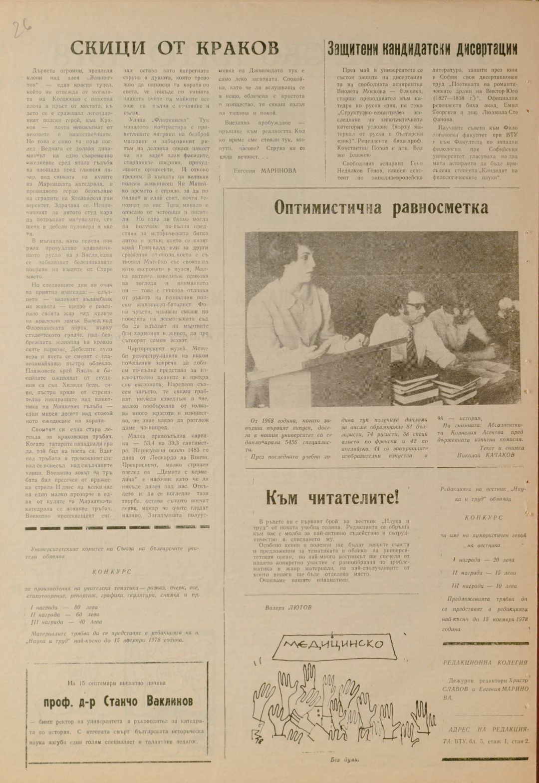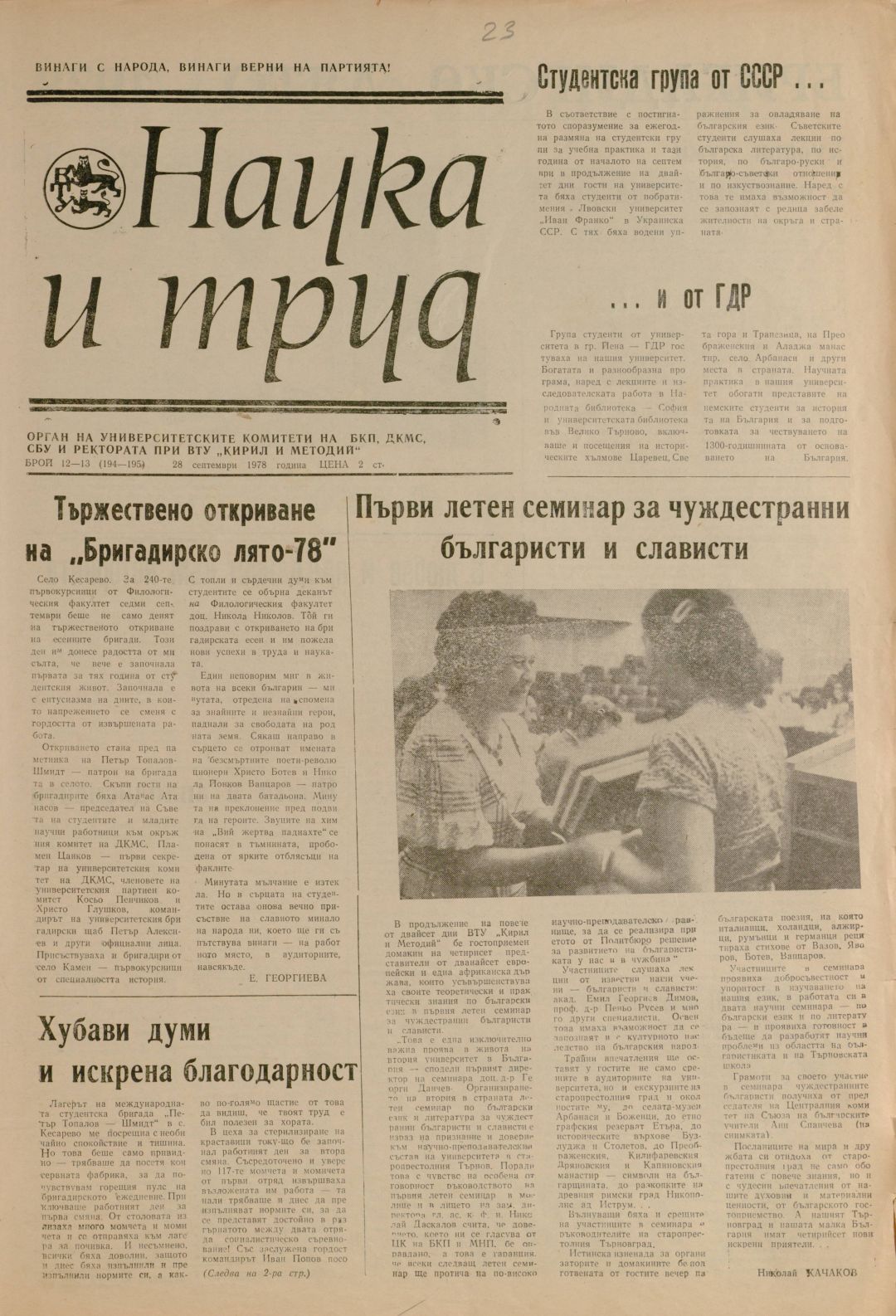 Год.17,12-13 (194-195). Наука и труд : Орган на университетските организации на БКП, ДКМС, СУ и Ректората при ВПИ "Братя Кирил и Методий"