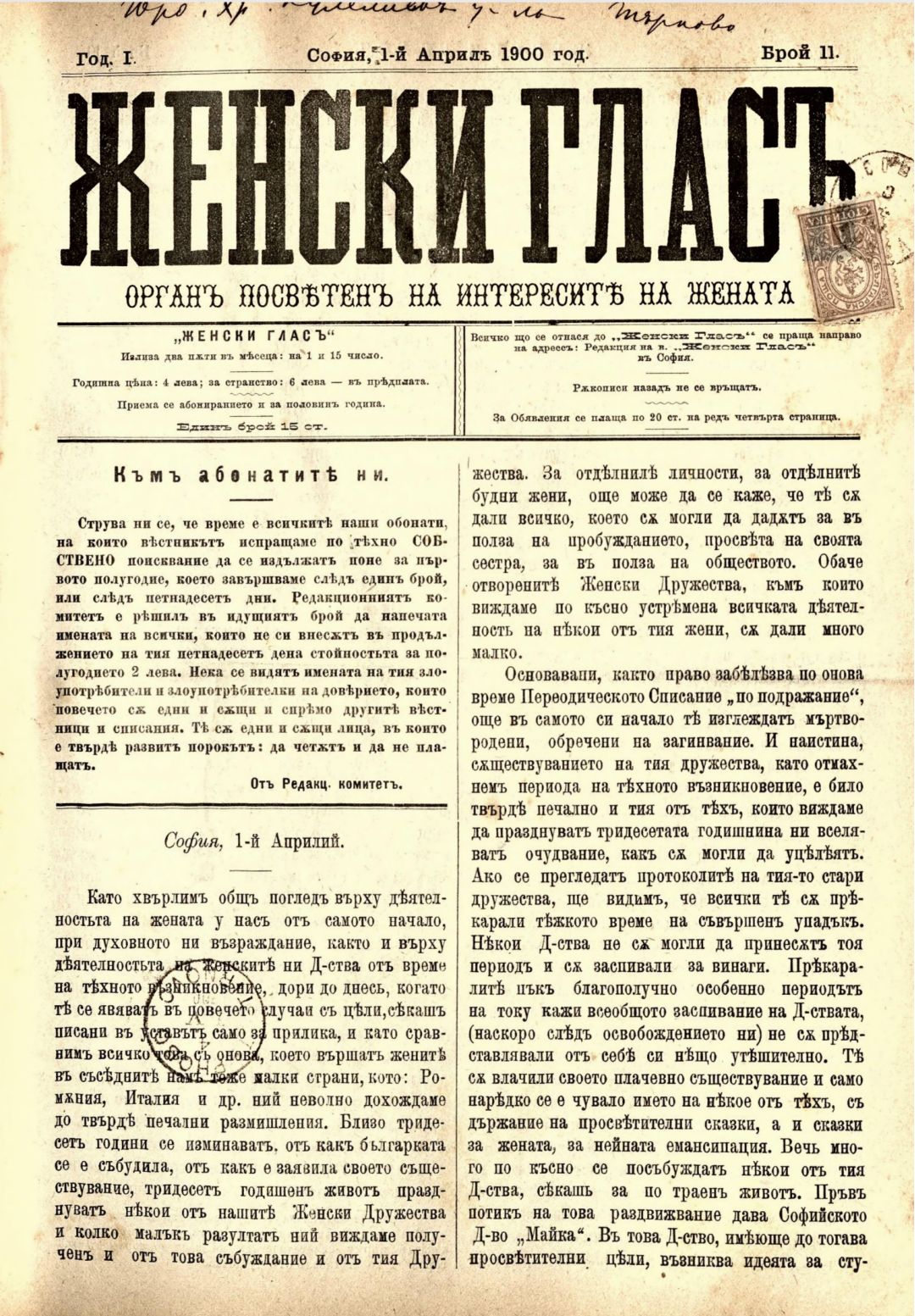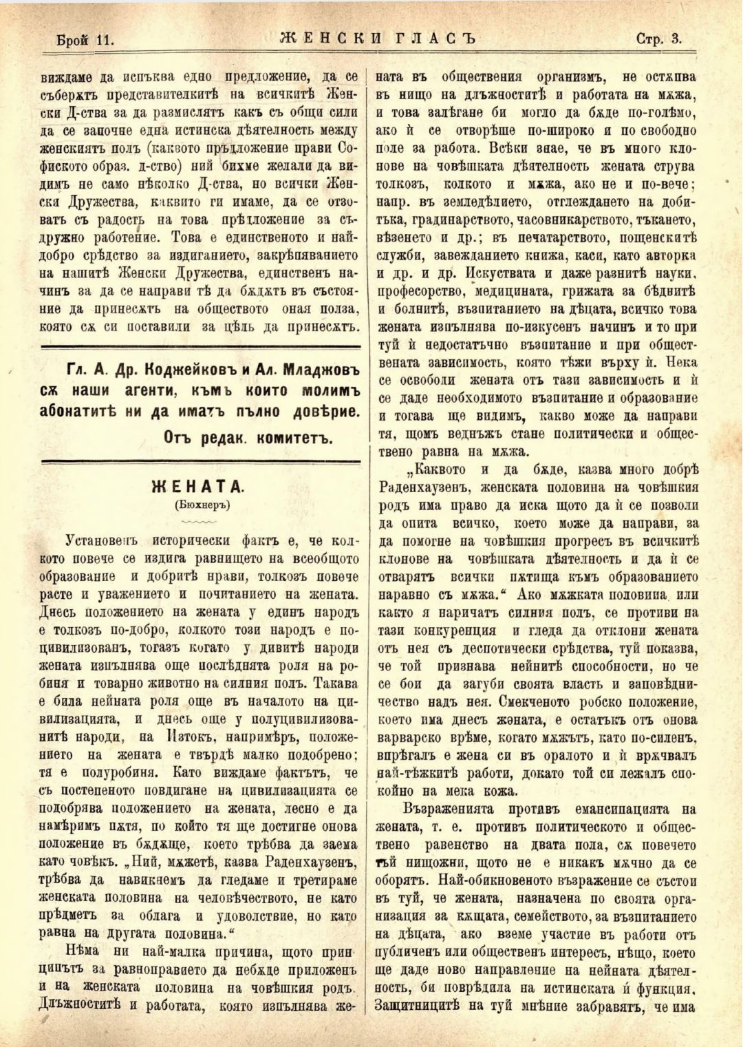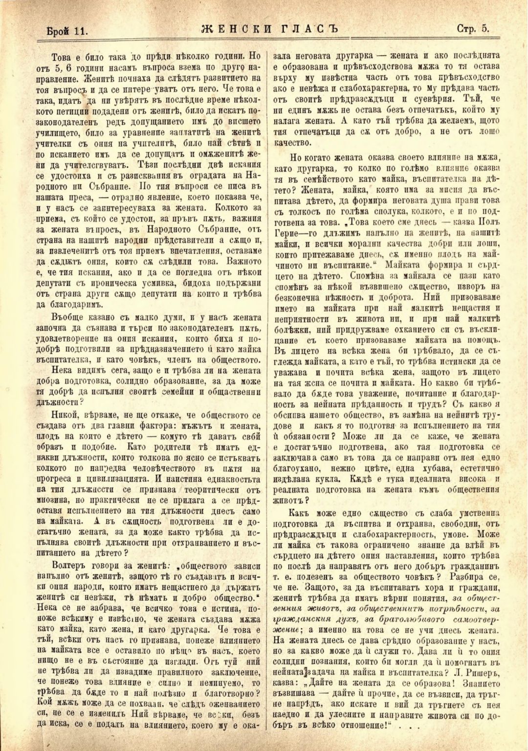 Год. 1,№ 11. Женски глас : Орган, посветен на интересите на жената