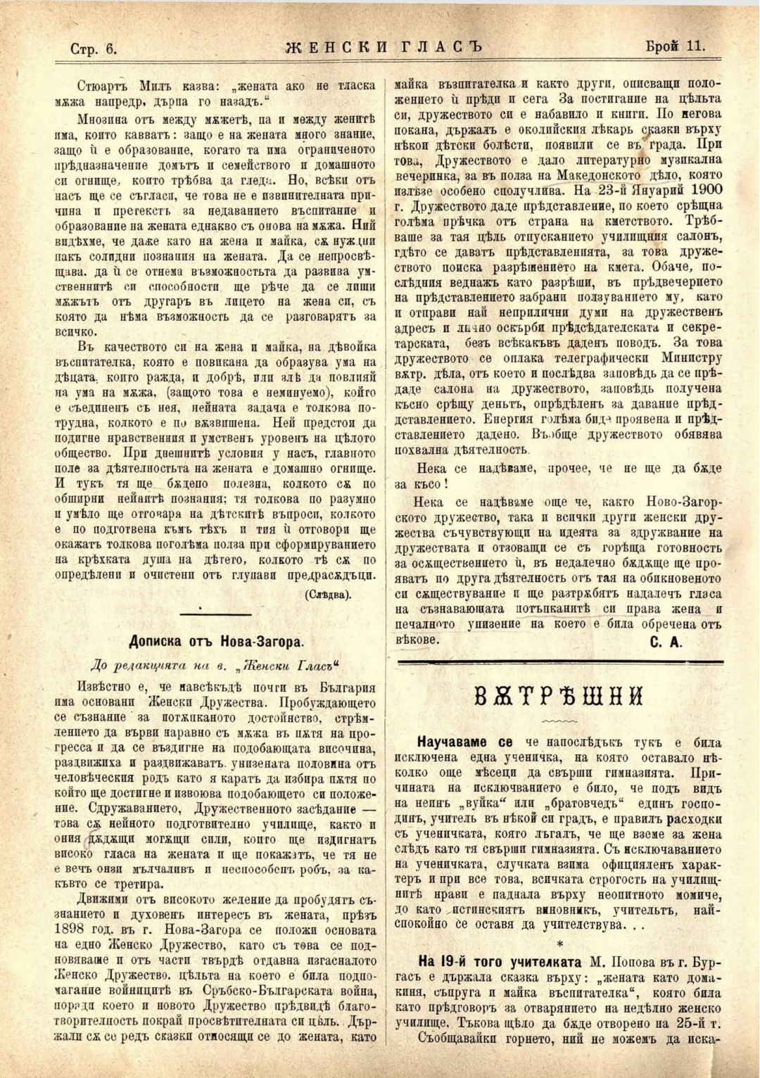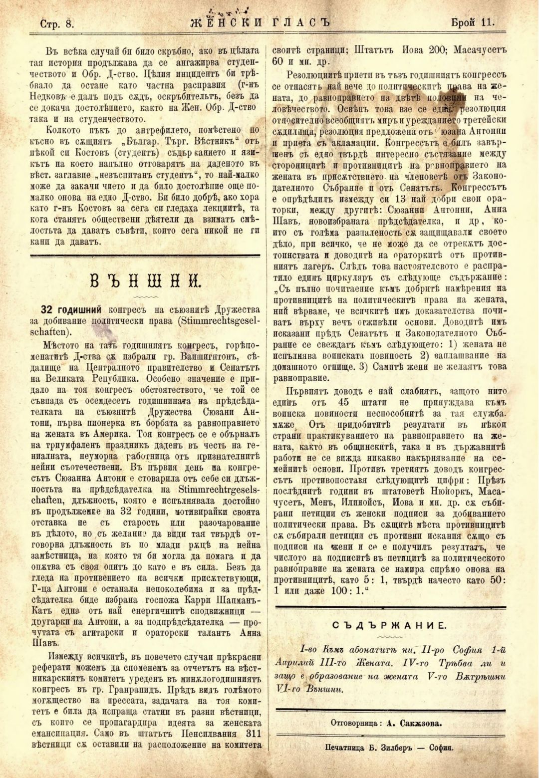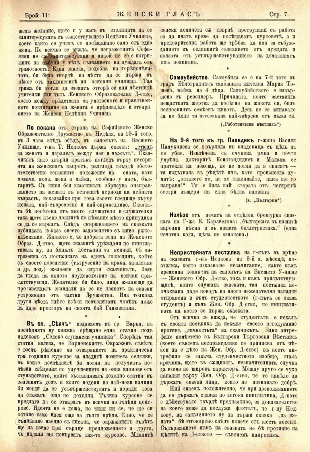 Год. 1,№ 11. Женски глас : Орган, посветен на интересите на жената