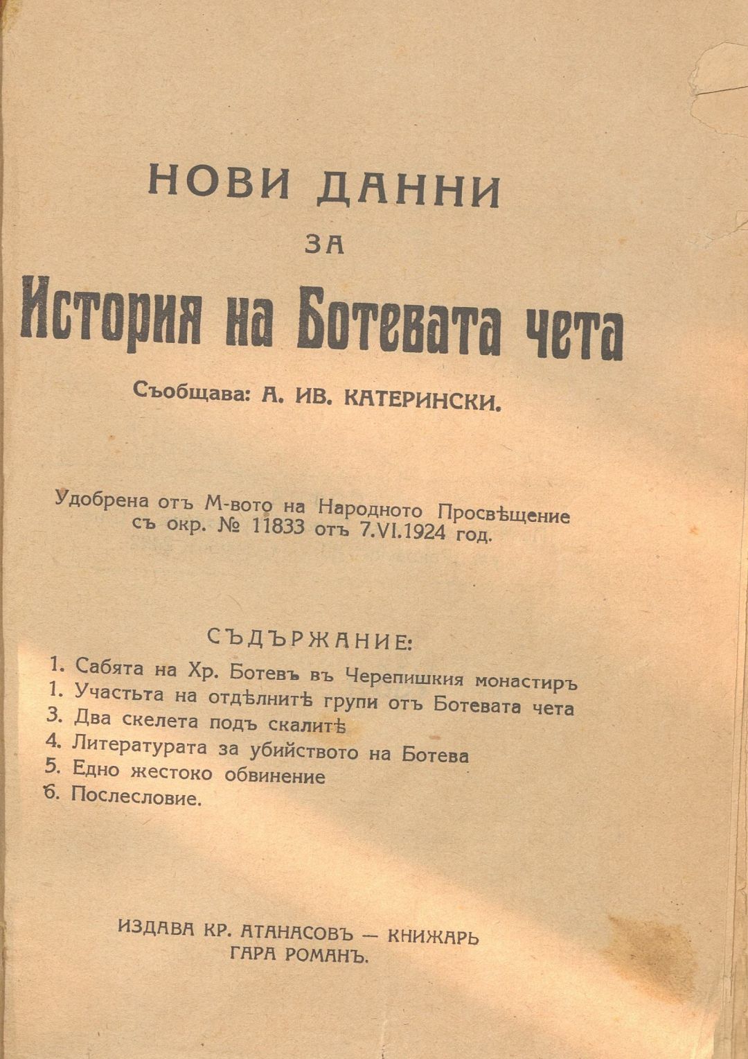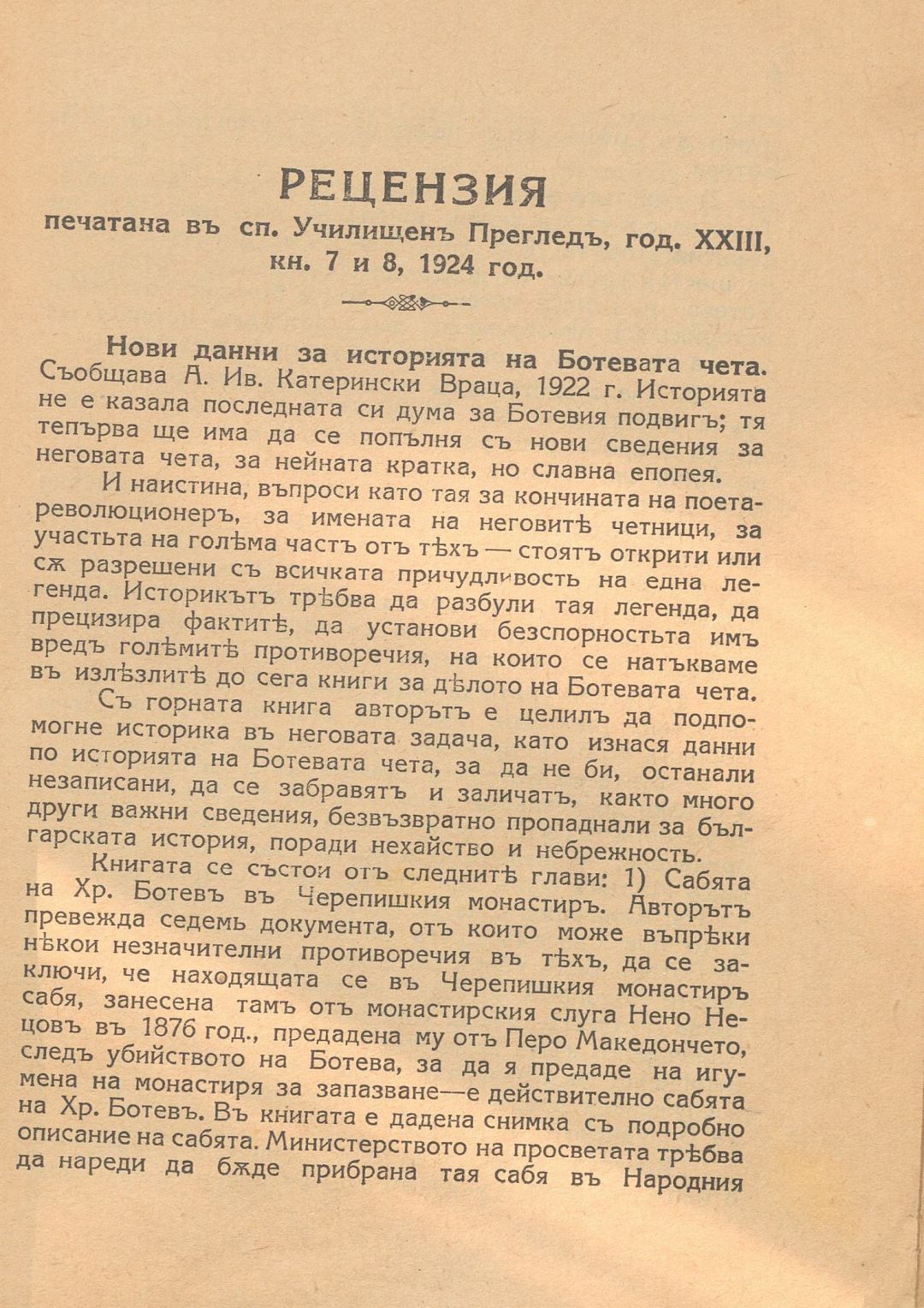 Нови данни за историята на Ботевата чета / Съобщава А. Ив. Катерински