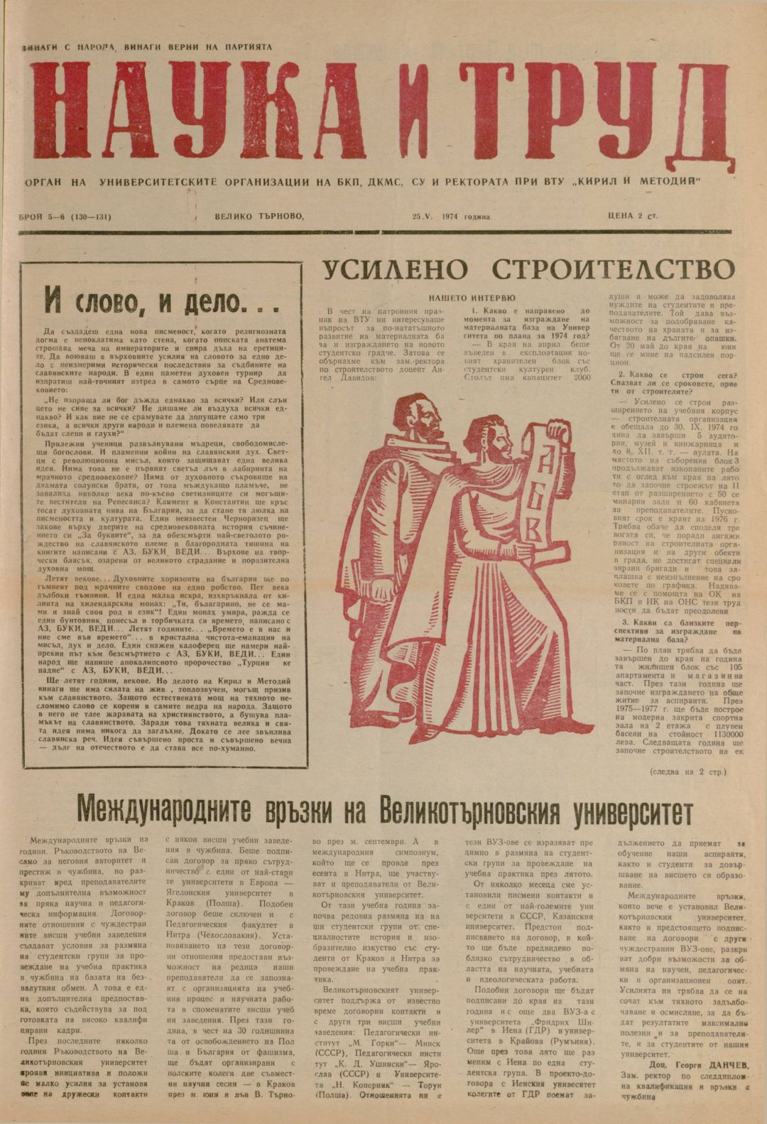 Год.13, 5-6 (129-130). Наука и труд : Орган на институтските комитети на БКП, ДКМС, СУ и Ректората при ВПИ "Братя Кирил и Методий"