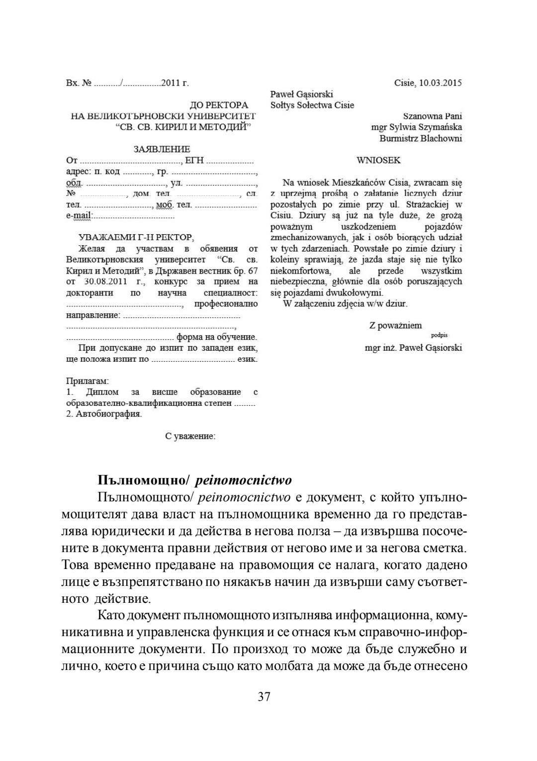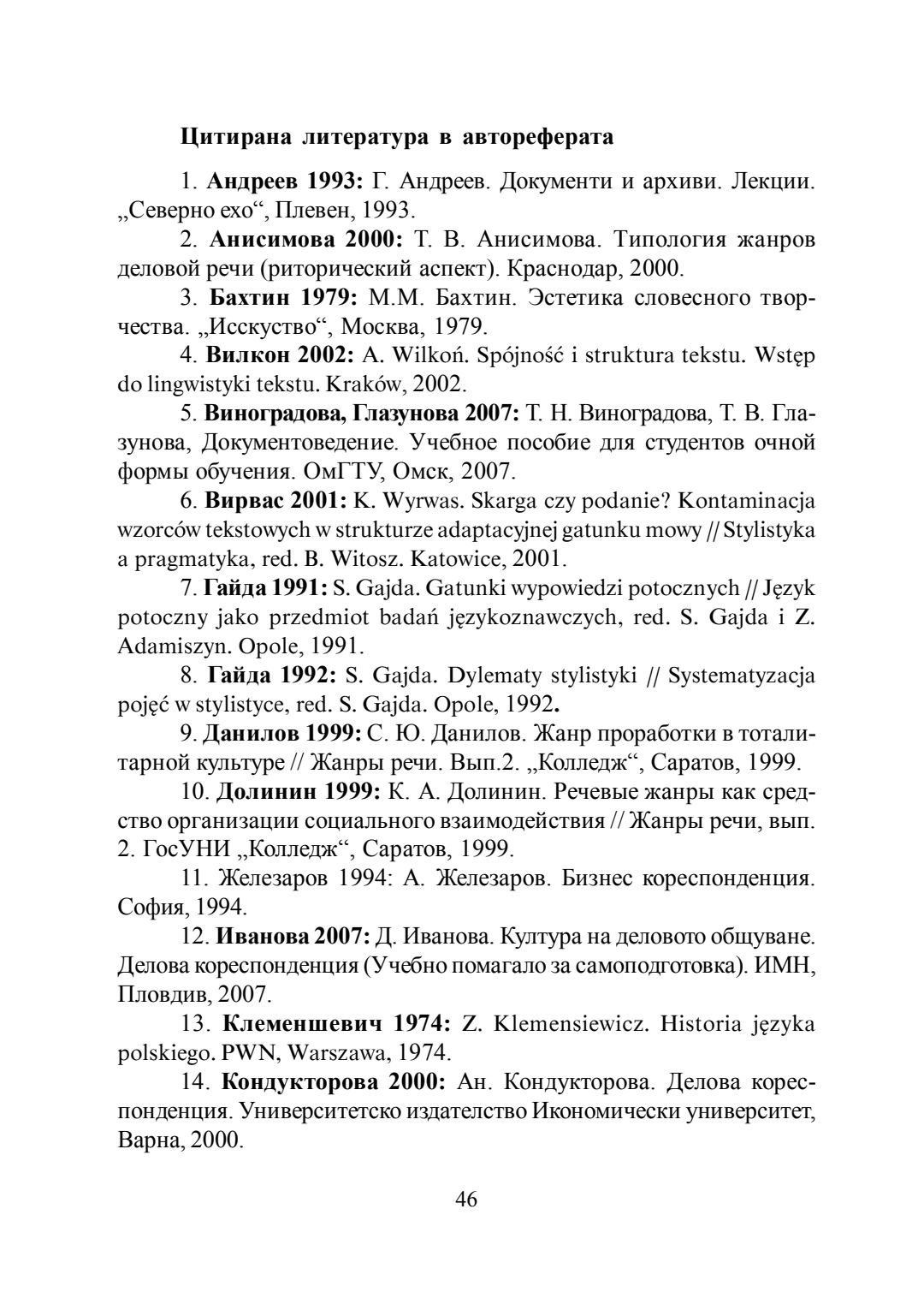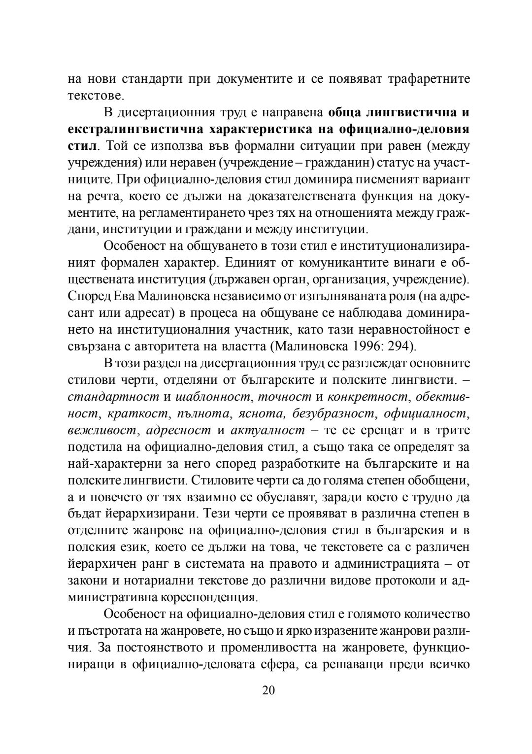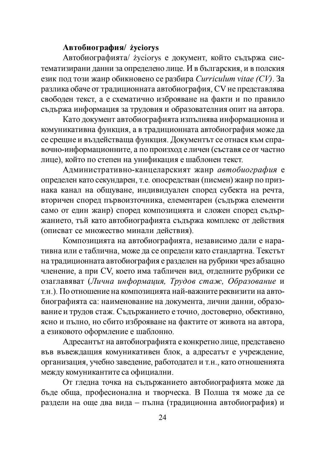 Развой на жанровете на официално-деловия стил в българския и полския език (автография, молба и пълномощно) : Автореферат / Мария Атанасова Чокани ; Науч. ръководител Мария Илиева