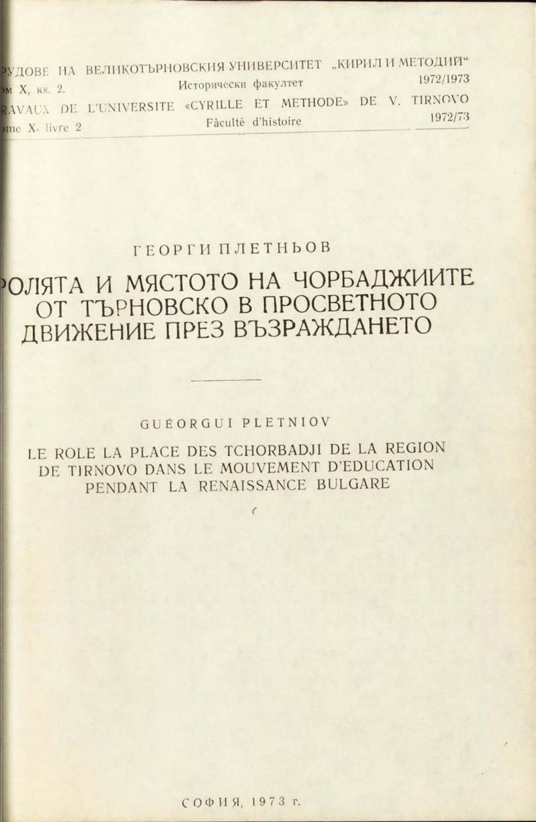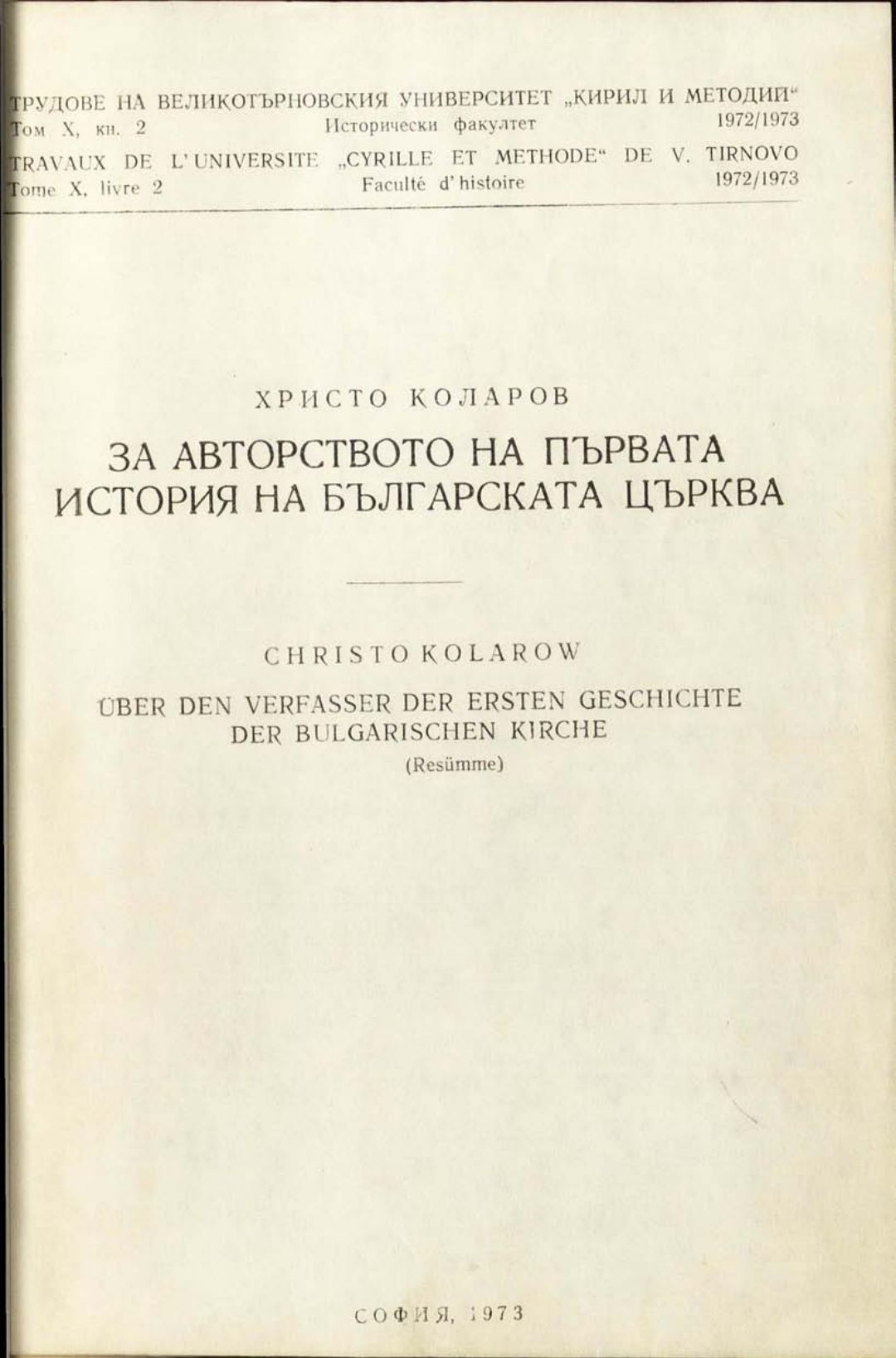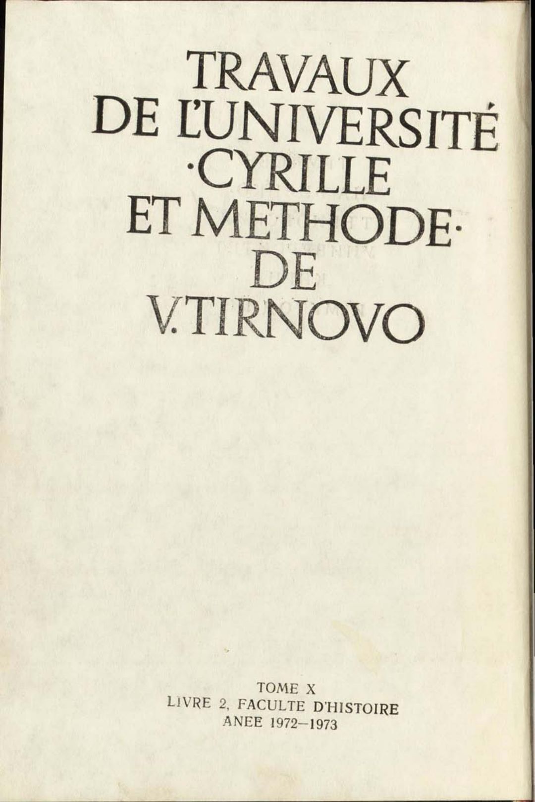 Том 10. Кн. 2. Трудове на Великотърновския университет "Св. св. Кирил и Методий". Исторически факултет = Travaux de L'universite St. St. Cyrille et Methode de V. Tirnovo. Faculte histoire