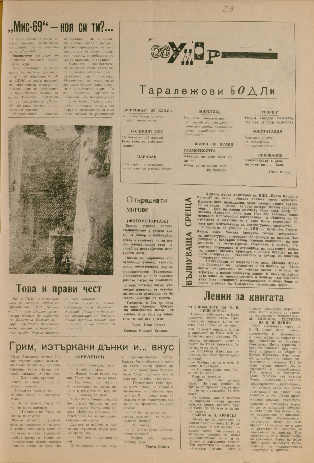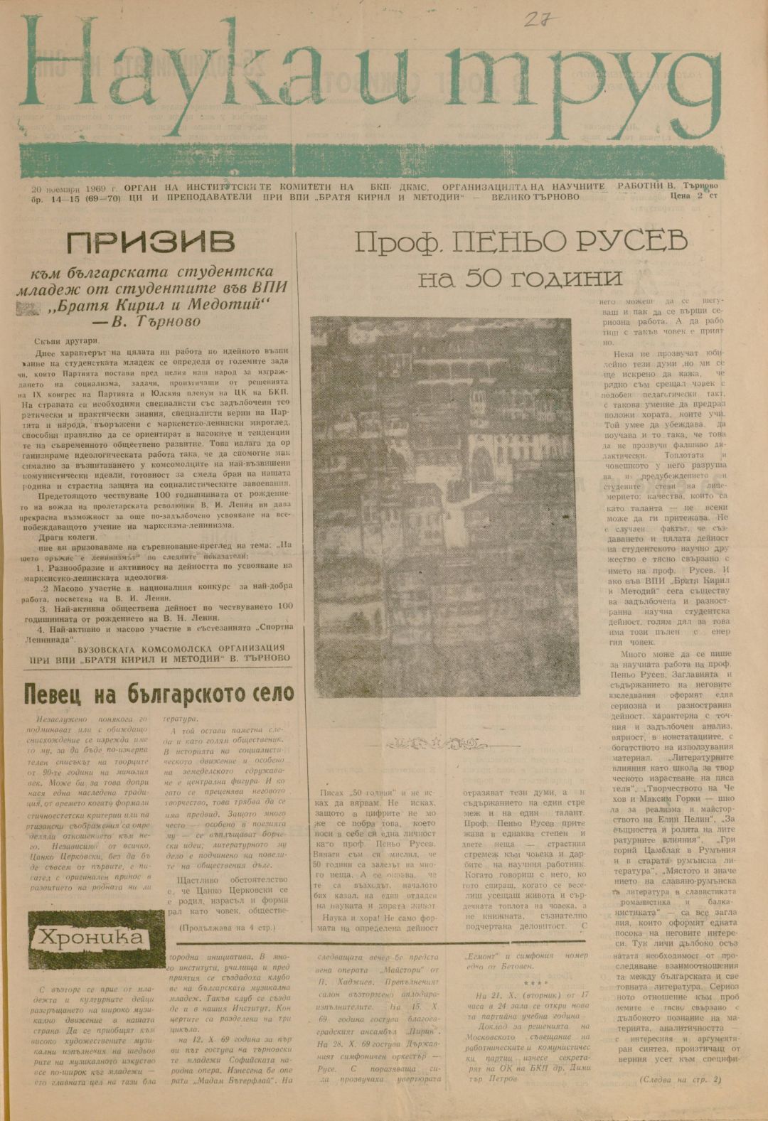 Год. 7,14-15 (68-69). Наука и труд : Орган на институтските комитети на БКП, ДКМС и Организацията на преподавателите и служителите при ВПИ "Братя Кирил и Методий"