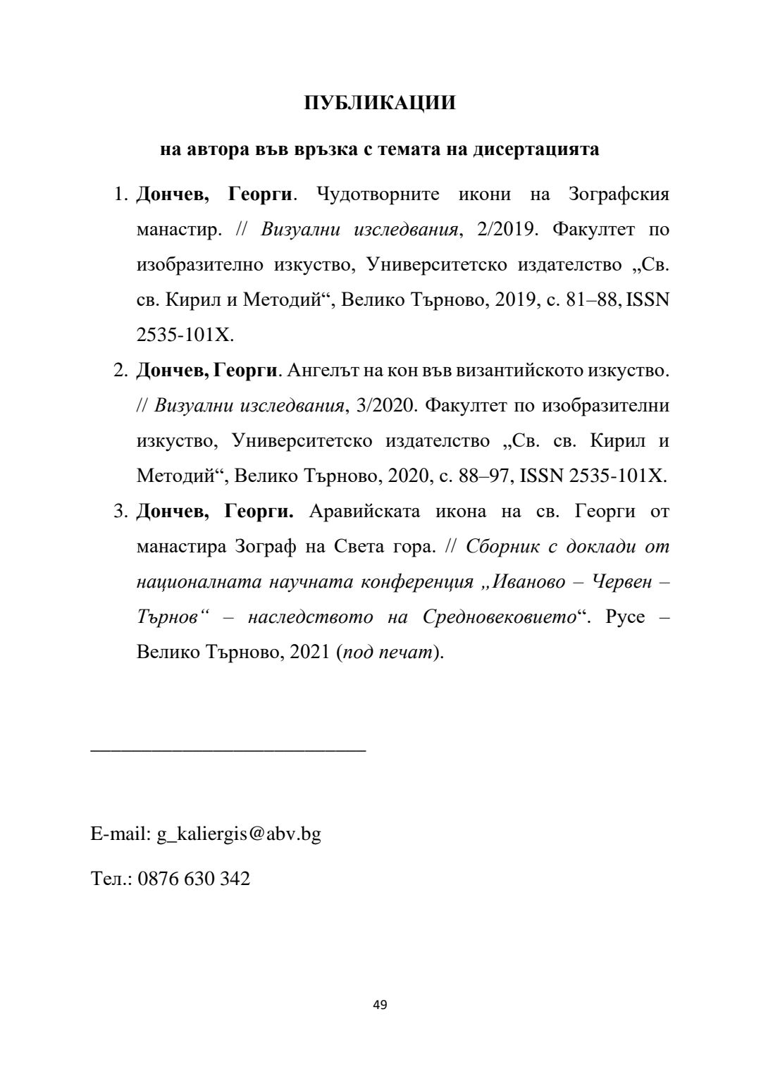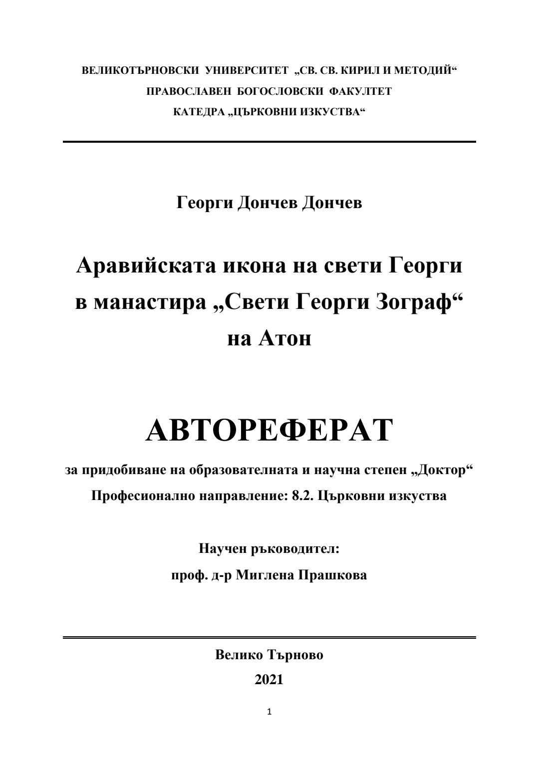 Аравийската икона на свети Георги в манастира „Свети Георги Зограф“ на Атон : Автореферат / Георги Дончев Дончев ; Науч. ръководител Миглена Прашкова