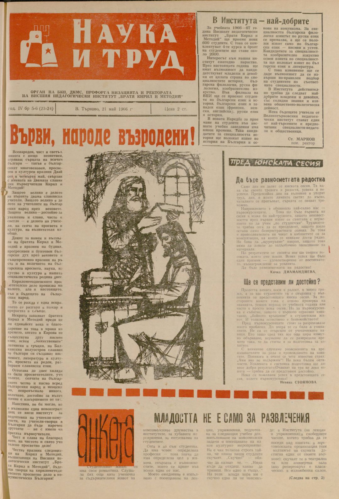 Год. 4, 5-6 (23-24). Наука и труд : Орган на БКП, ДКМС и Профорганизацията и Ректората на ВПИ "Братя Кирил и Методий"