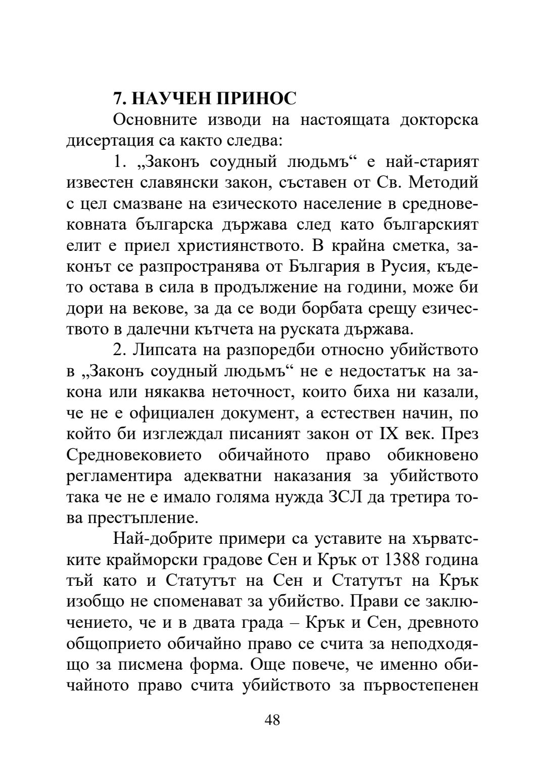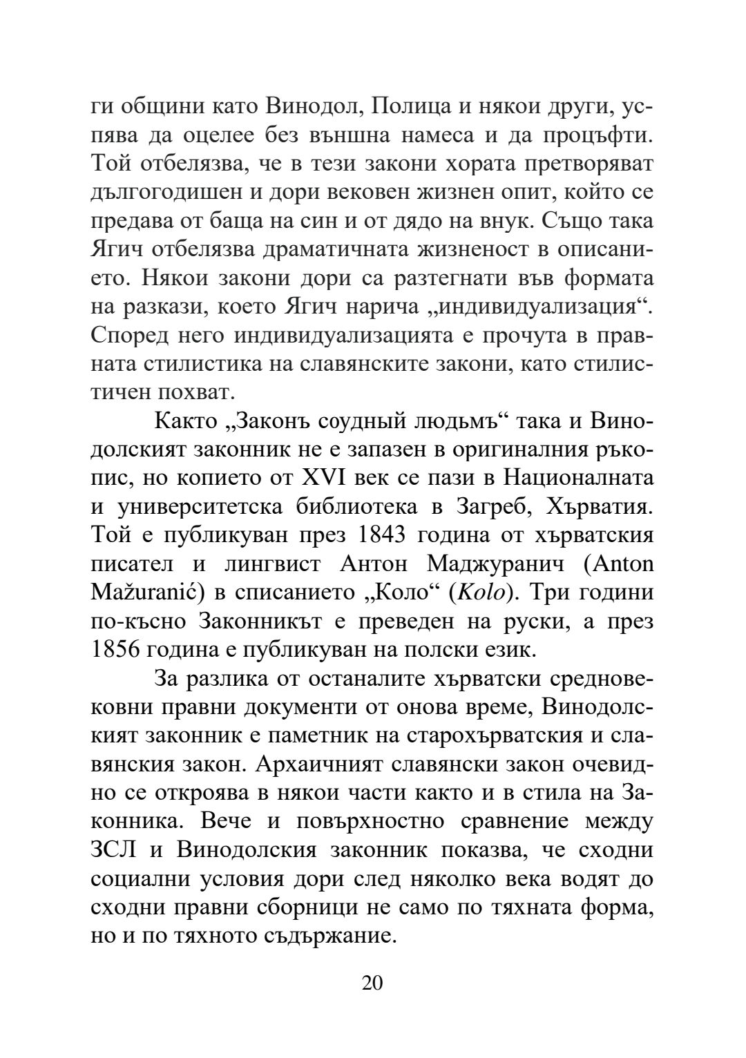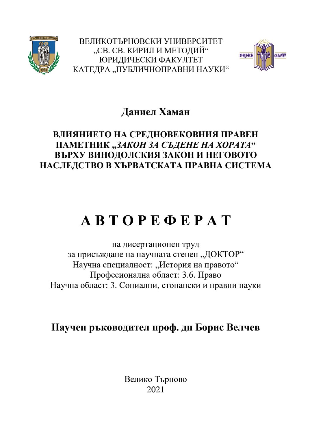 Влиянието на средновековния правен паметник "Закон за съдене на хората" върху Винодолския закон и неговото наследство в Хърватската правна система : Автореферат / Даниел Хаман ; Науч. ръководител Борис Велчев