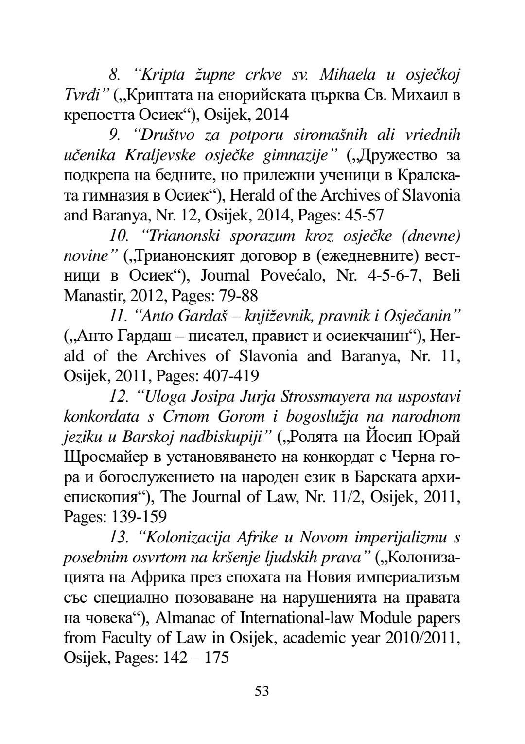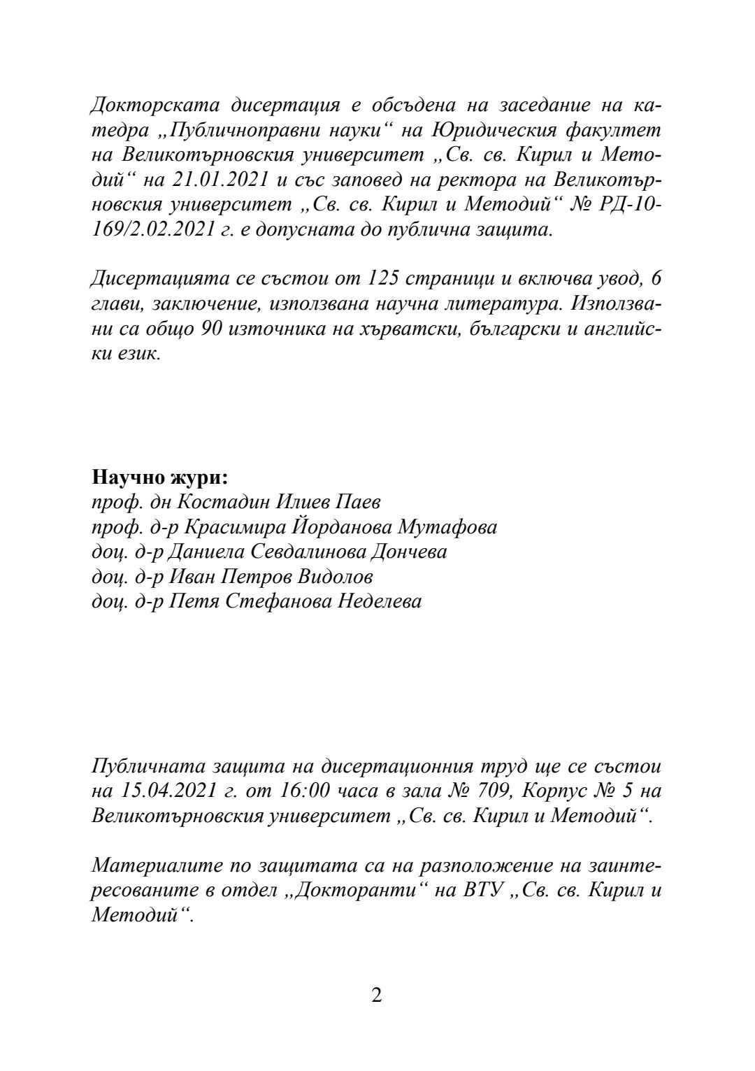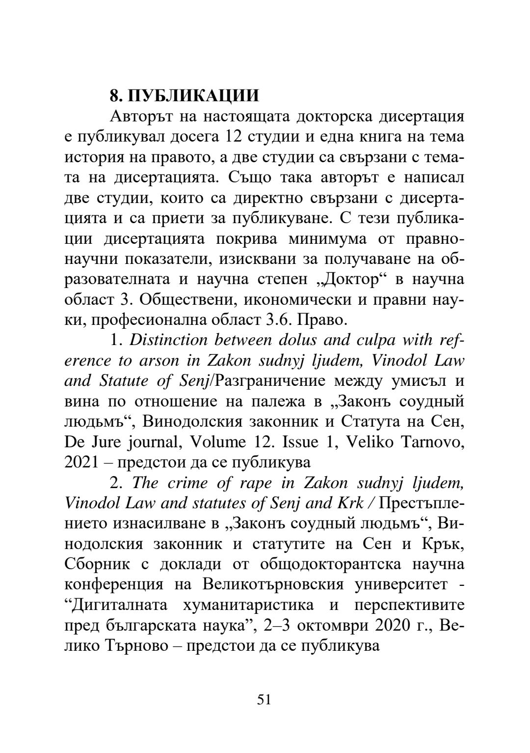 Влиянието на средновековния правен паметник "Закон за съдене на хората" върху Винодолския закон и неговото наследство в Хърватската правна система : Автореферат / Даниел Хаман ; Науч. ръководител Борис Велчев