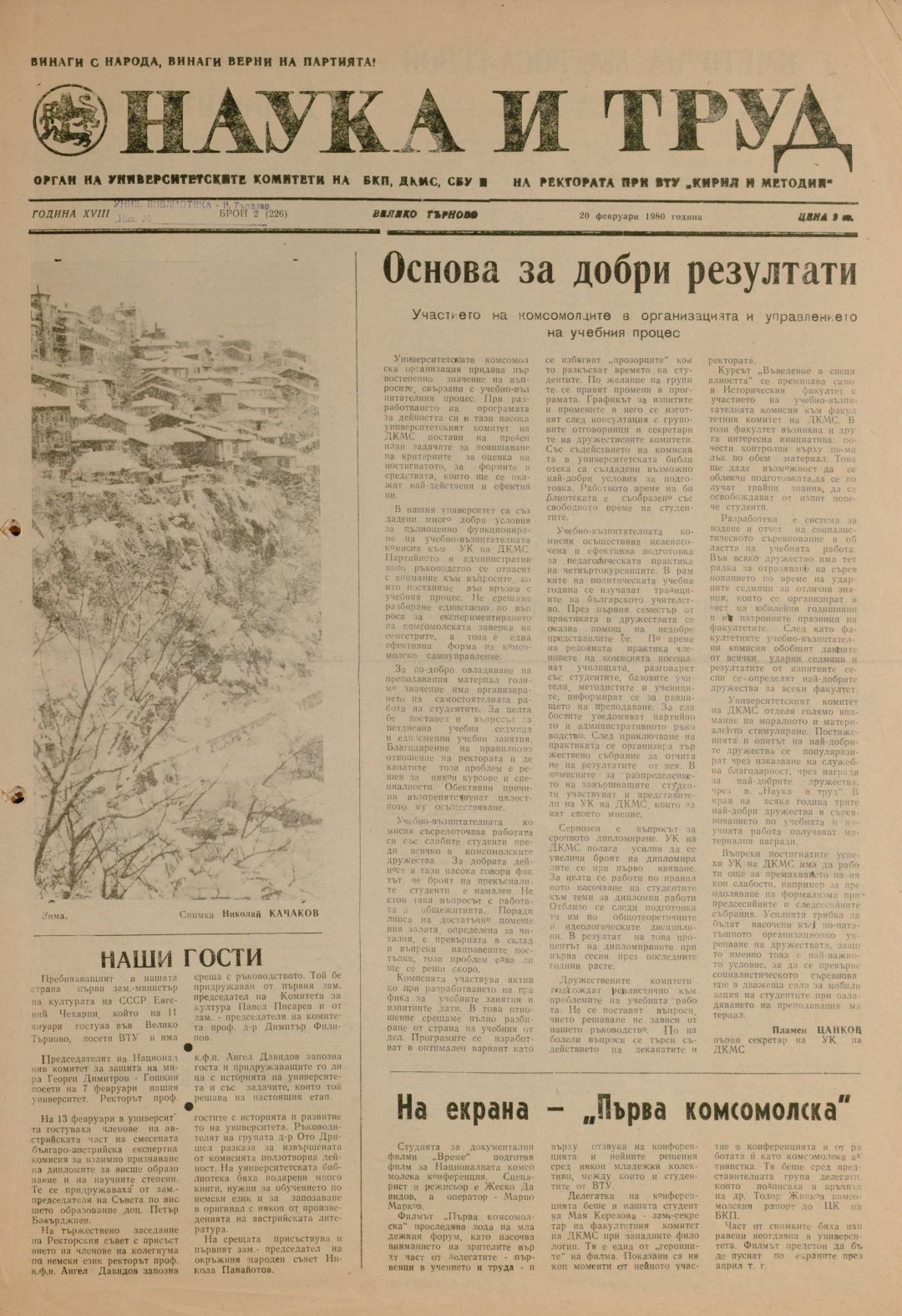 Год.19, 2 (226). Наука и труд : Наука и труд : Орган на университетските комитети на БКП, ДКМС, СБУ и на Ректората при ВТУ "Братя Кирил и Методий"