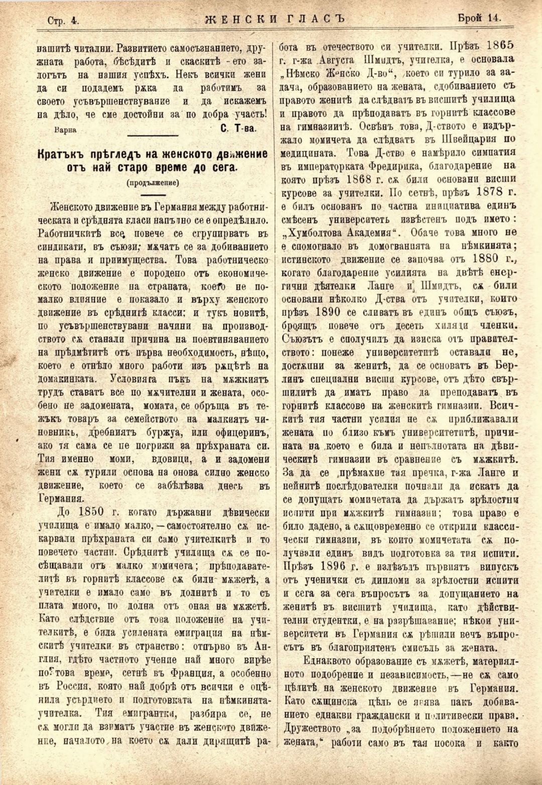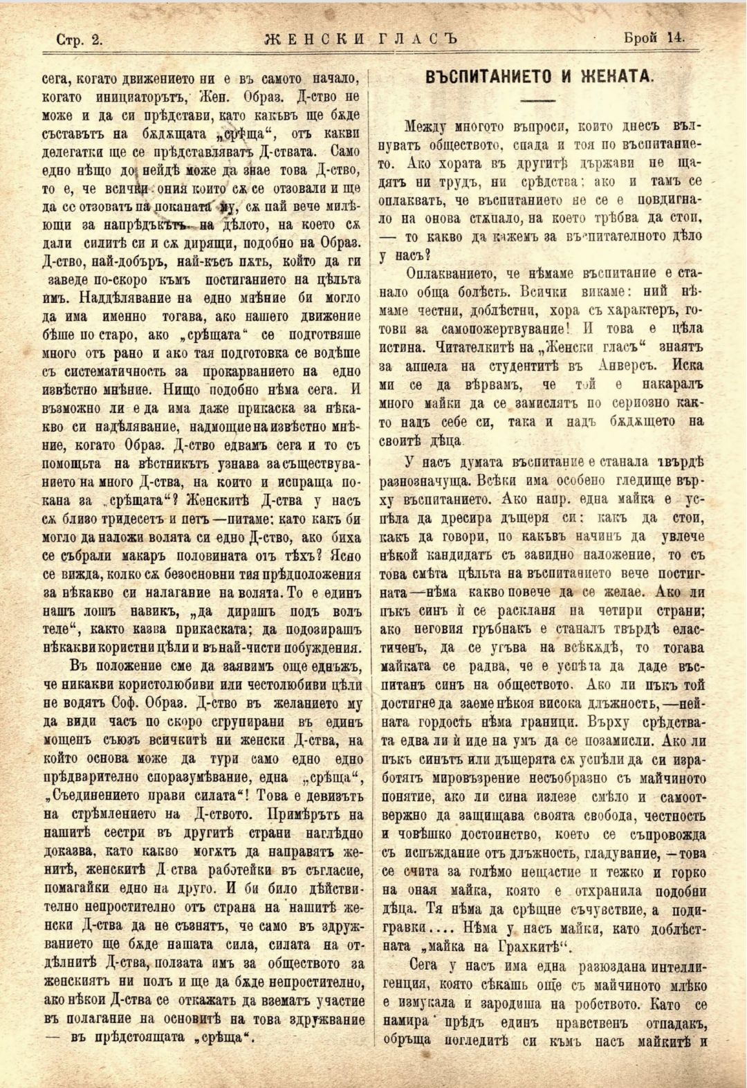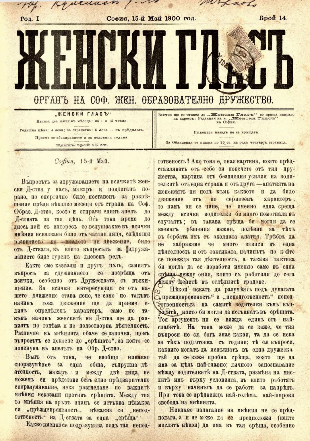 Год. 1,№ 14. Женски глас : Орган, посветен на интересите на жената