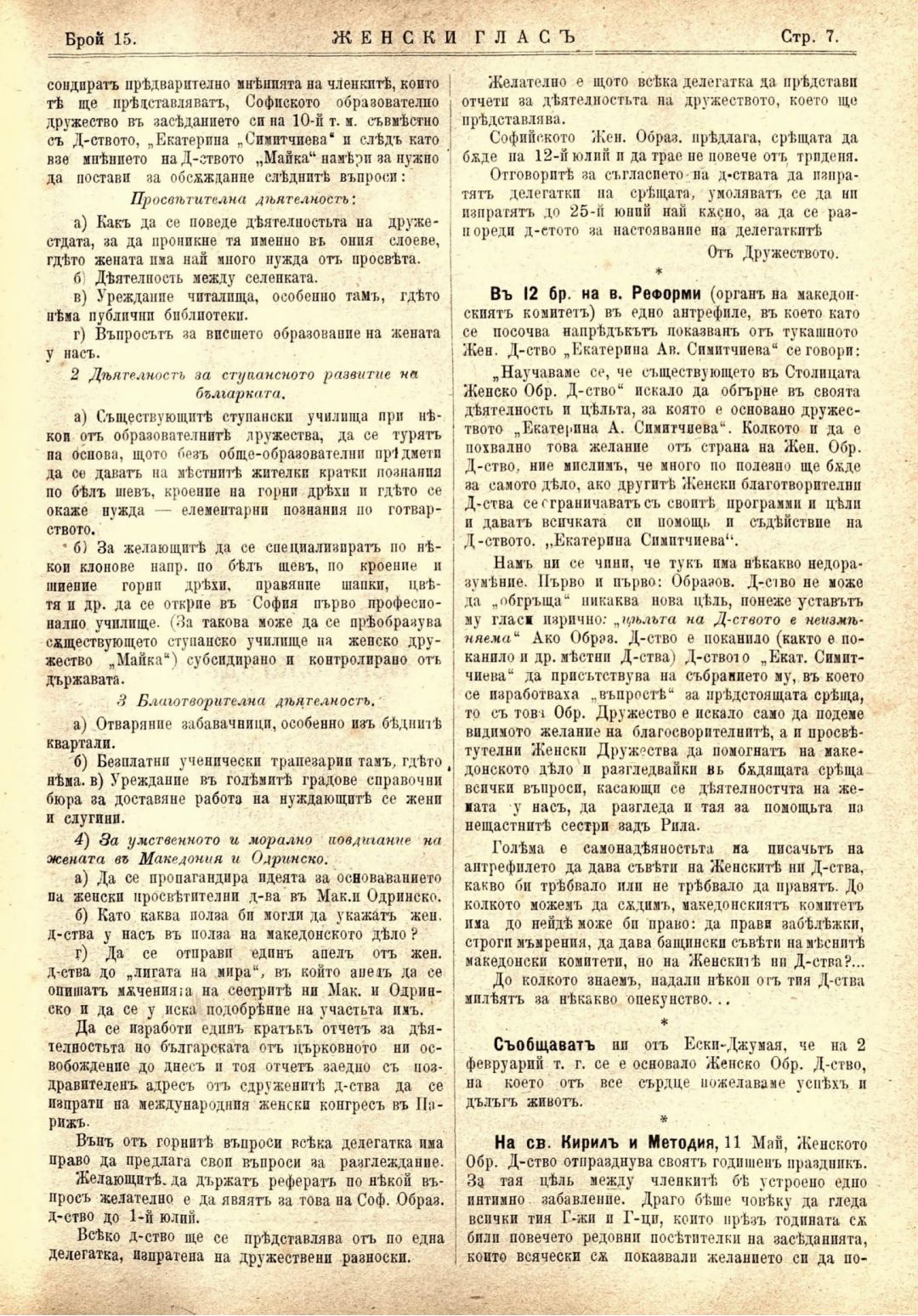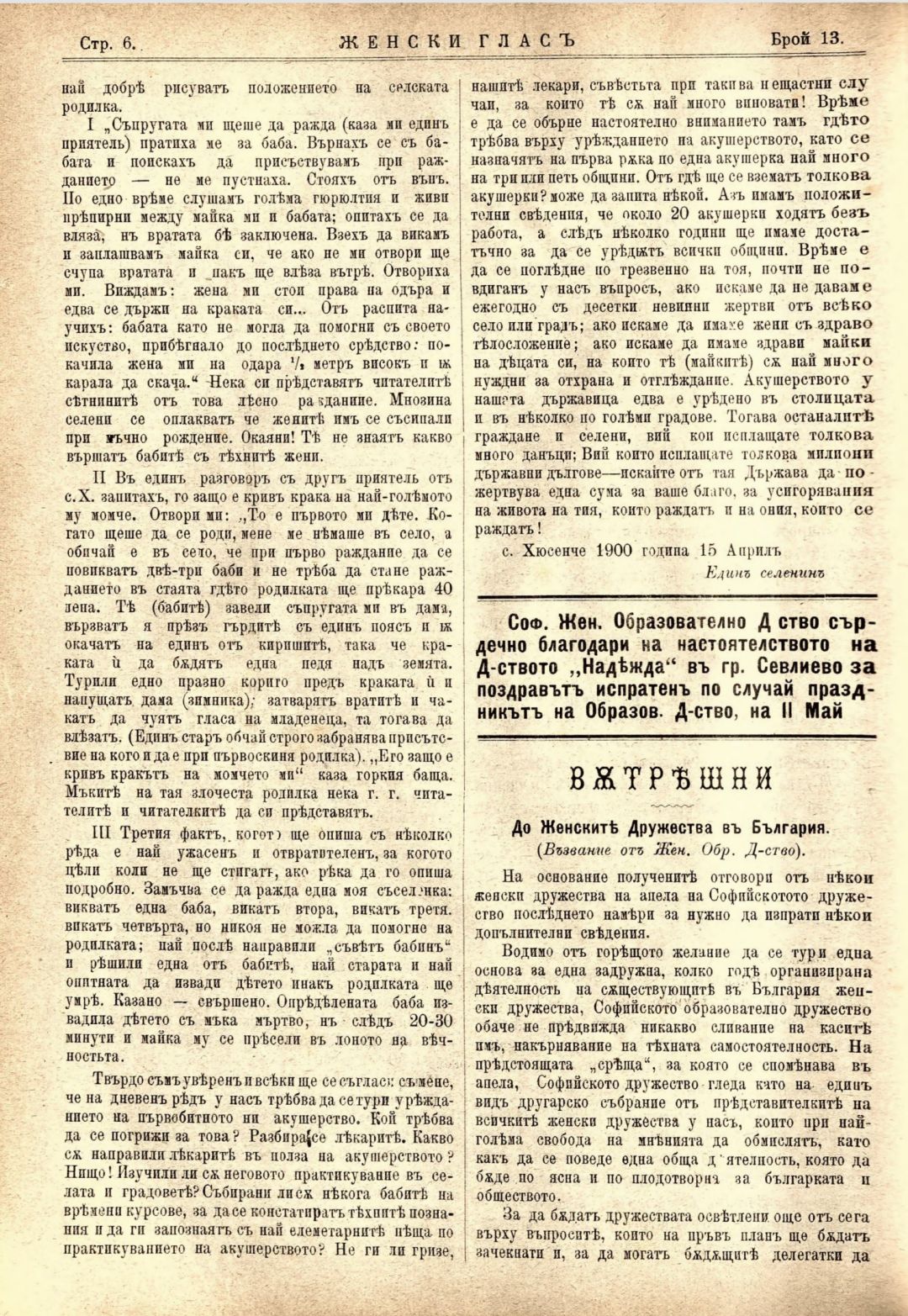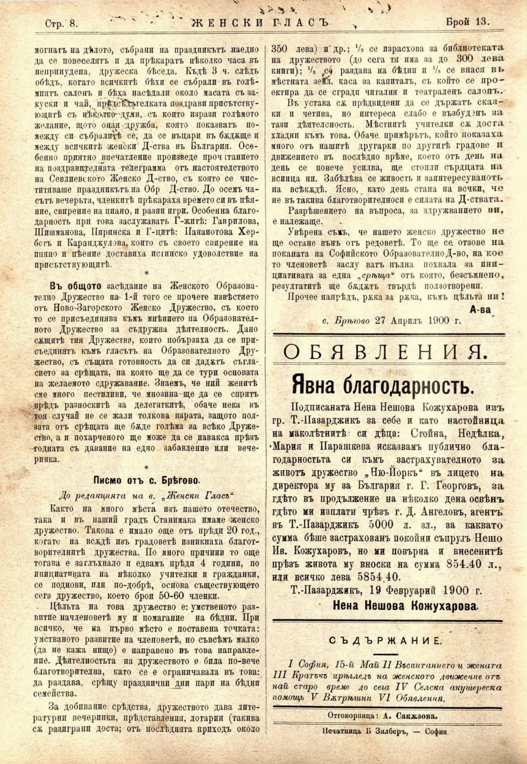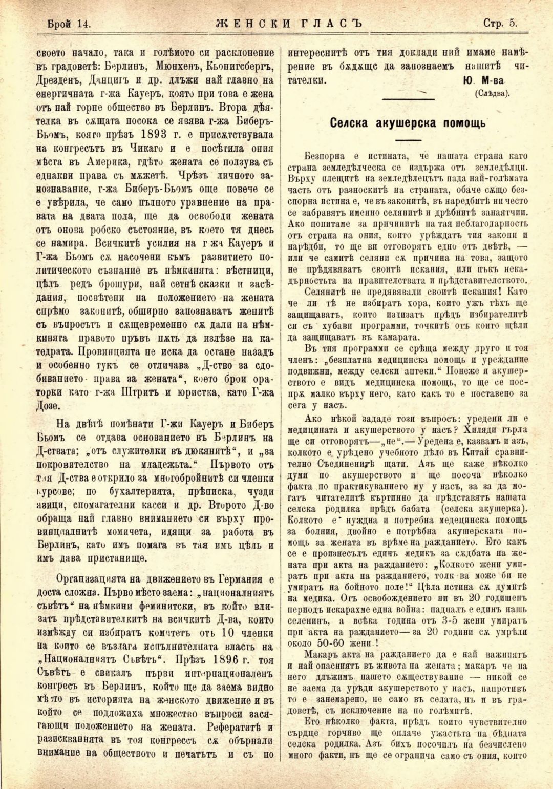 Год. 1,№ 14. Женски глас : Орган, посветен на интересите на жената