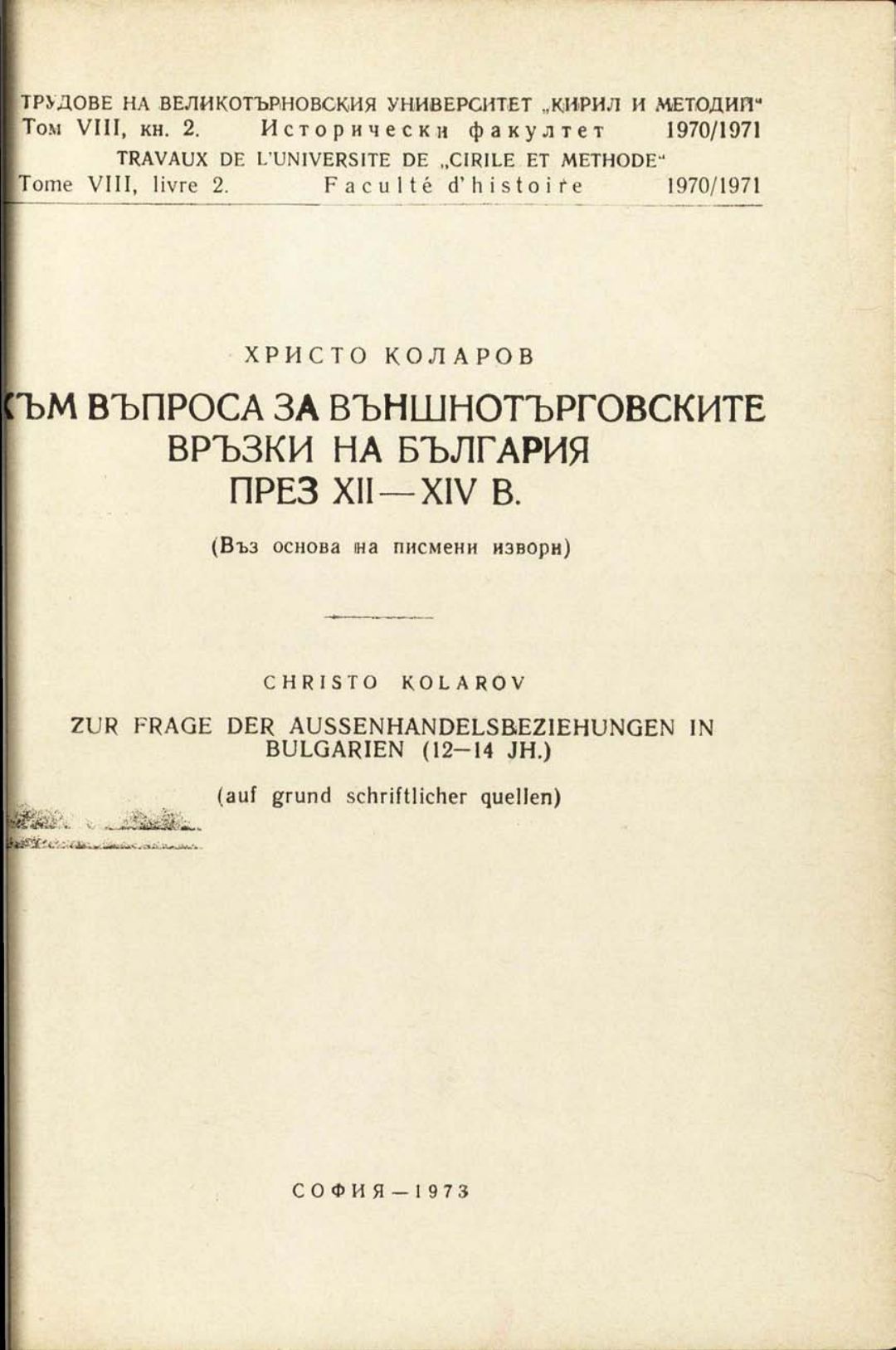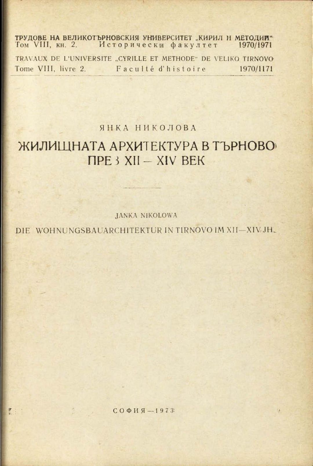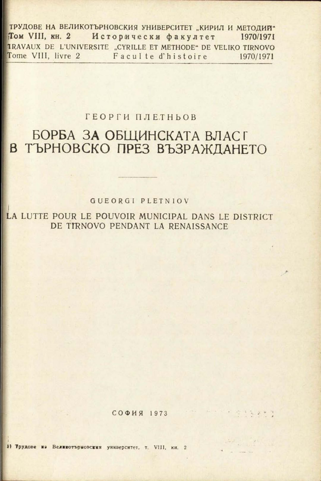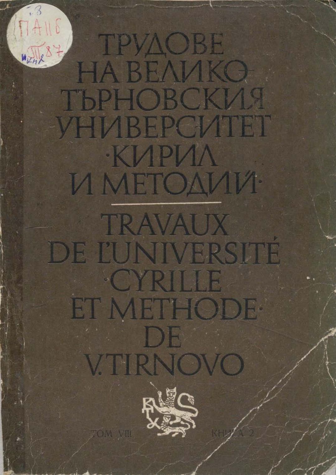 Том 8. Кн. 2. Трудове на Великотърновския университет "Св. св. Кирил и Методий". Исторически факултет = Travaux de L'universite St. St. Cyrille et Methode de V. Tirnovo. Faculte histoire