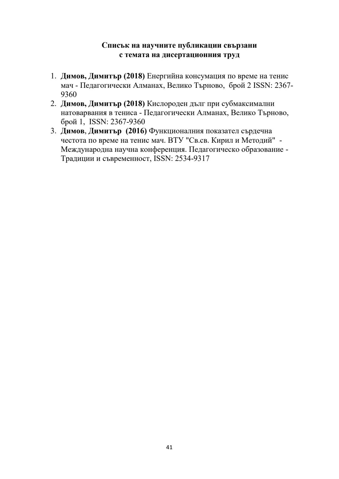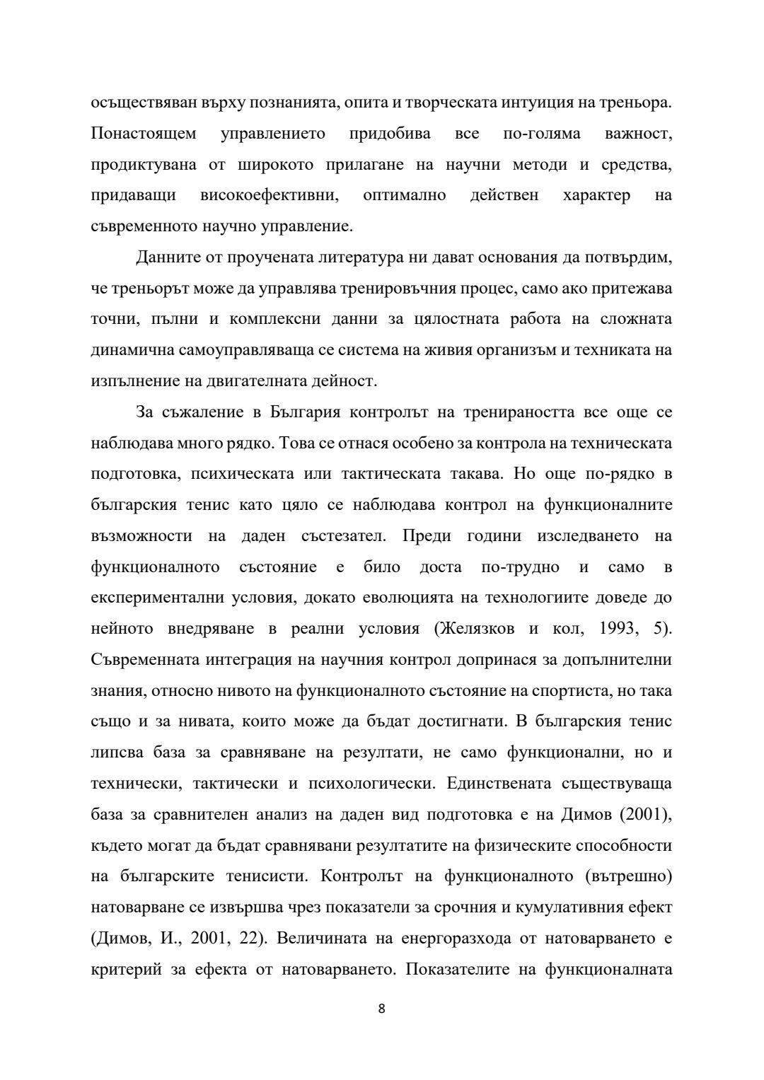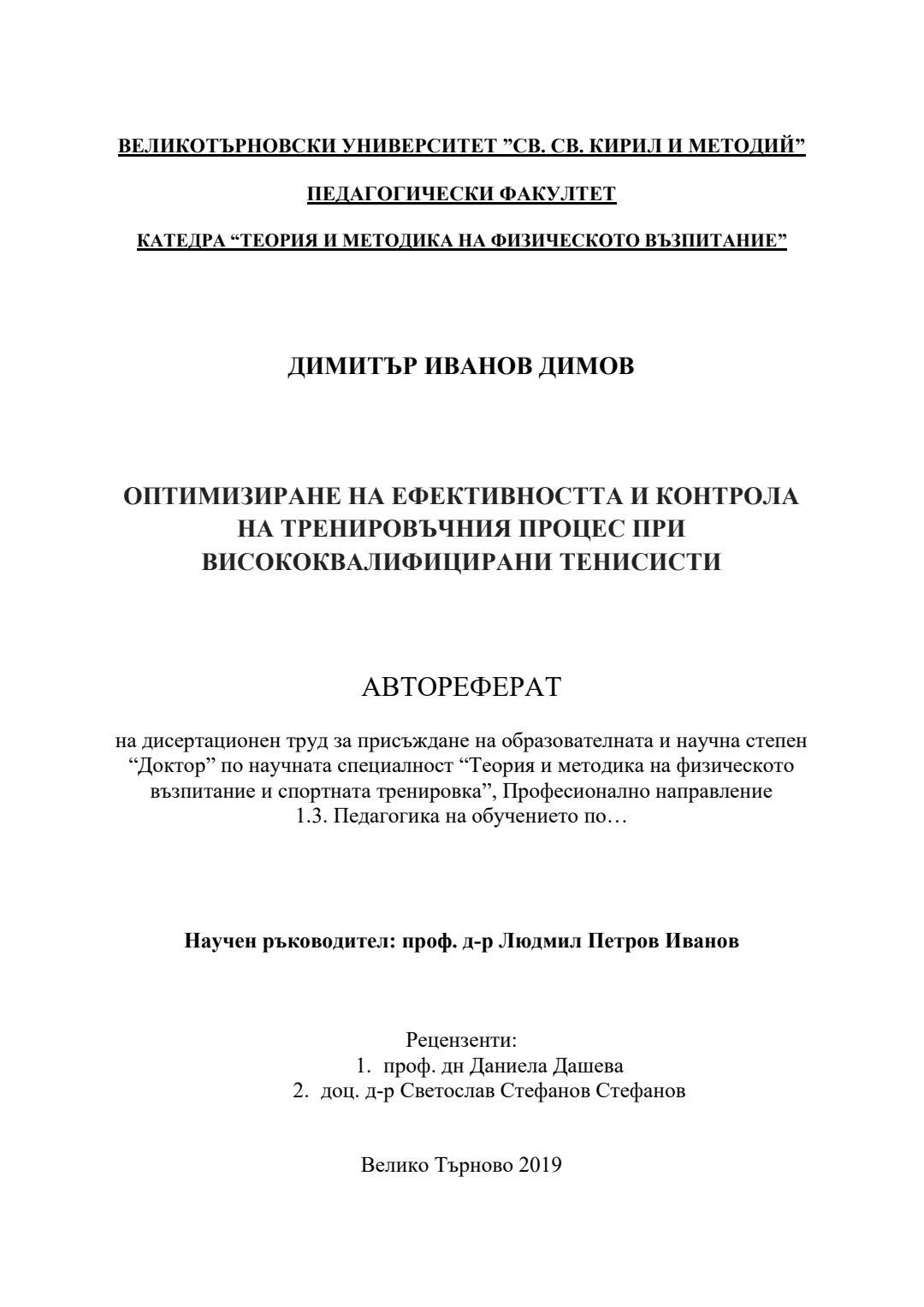 Оптимизиране на ефективността и контрола на тренировъчния процес при висококвалифицирани тенисисти : Автореферат / Димитър Иванов Димов ; Науч. ръководител Людмил Петров