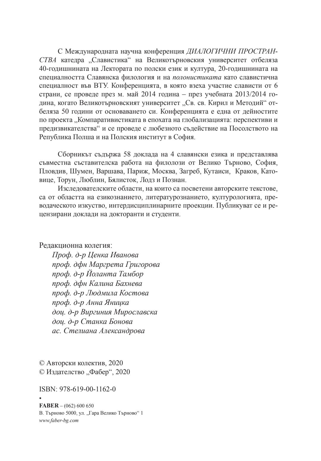 Диалогични пространства : Сборник с доклади от Юбилейна славистична международна конференция, Велико Търново, 13-14 май 2014 г.